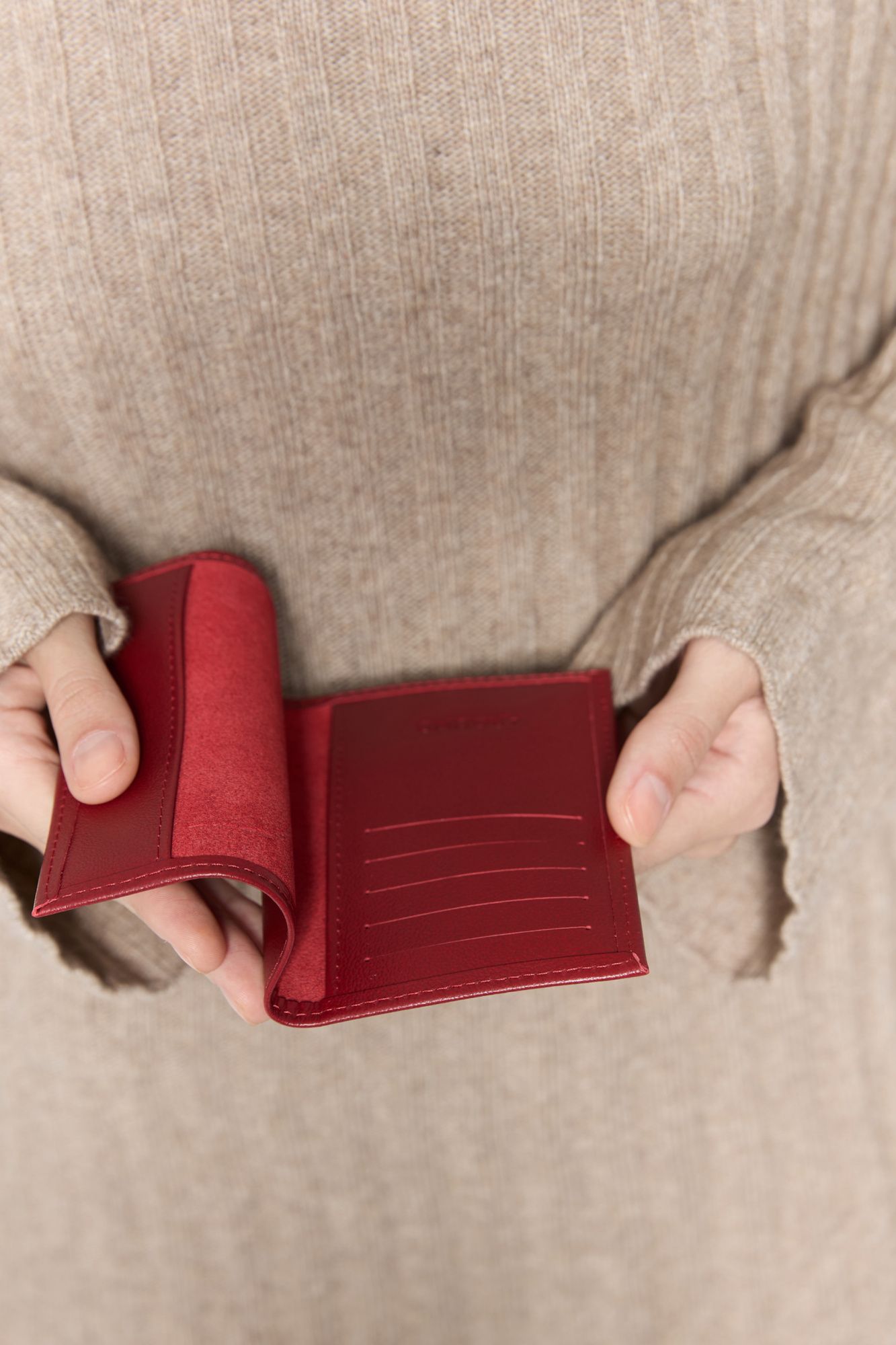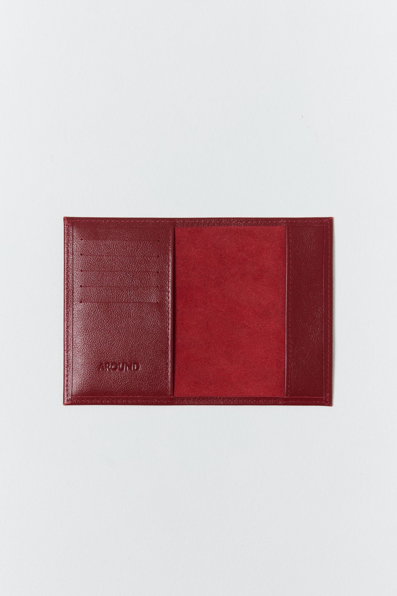 Есть пять отделений для пластиковых карт. Изделие дополнено брендированным тиснением логотипа Around с внутренней стороны.
