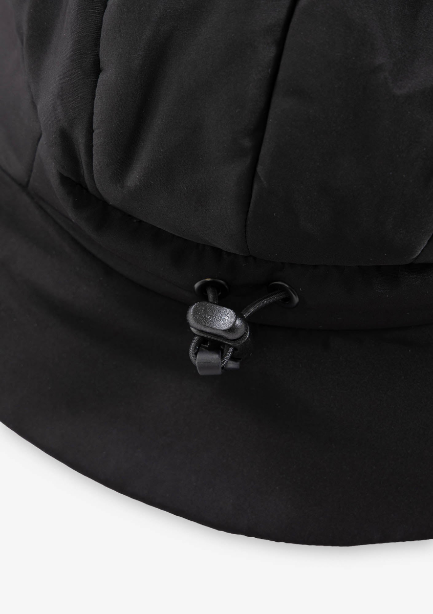 Утеплённая пятипанельная панама с дополнительной защитой ушей от ветра и регулировкой объёма. Сделана из экологичного утеплителя из 100 % переработанного пластика.