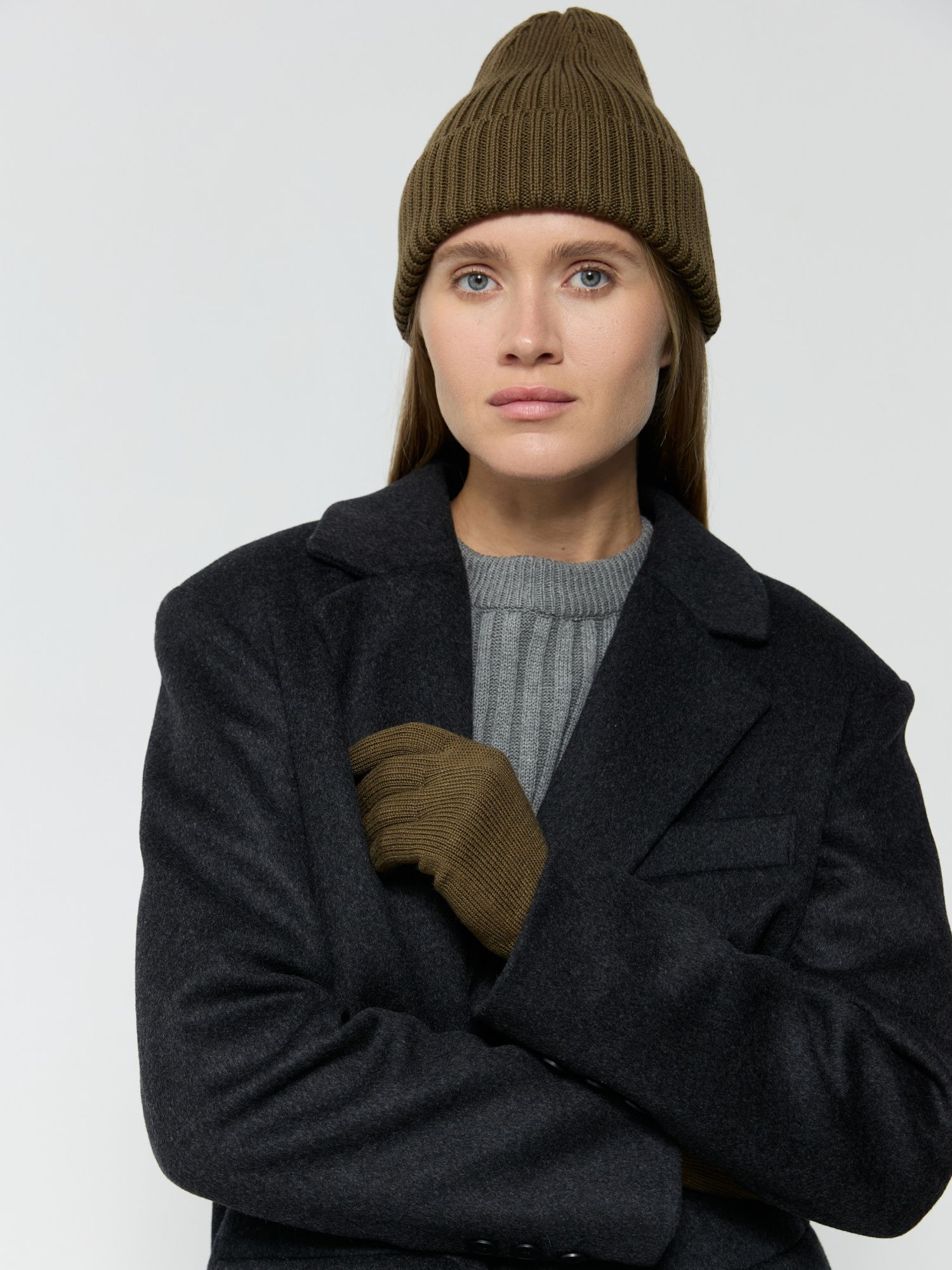 Более плотная, в сравнении с базовой, эта модель шапки связана также из 100% шерсти мериноса, сделанной в Италии.