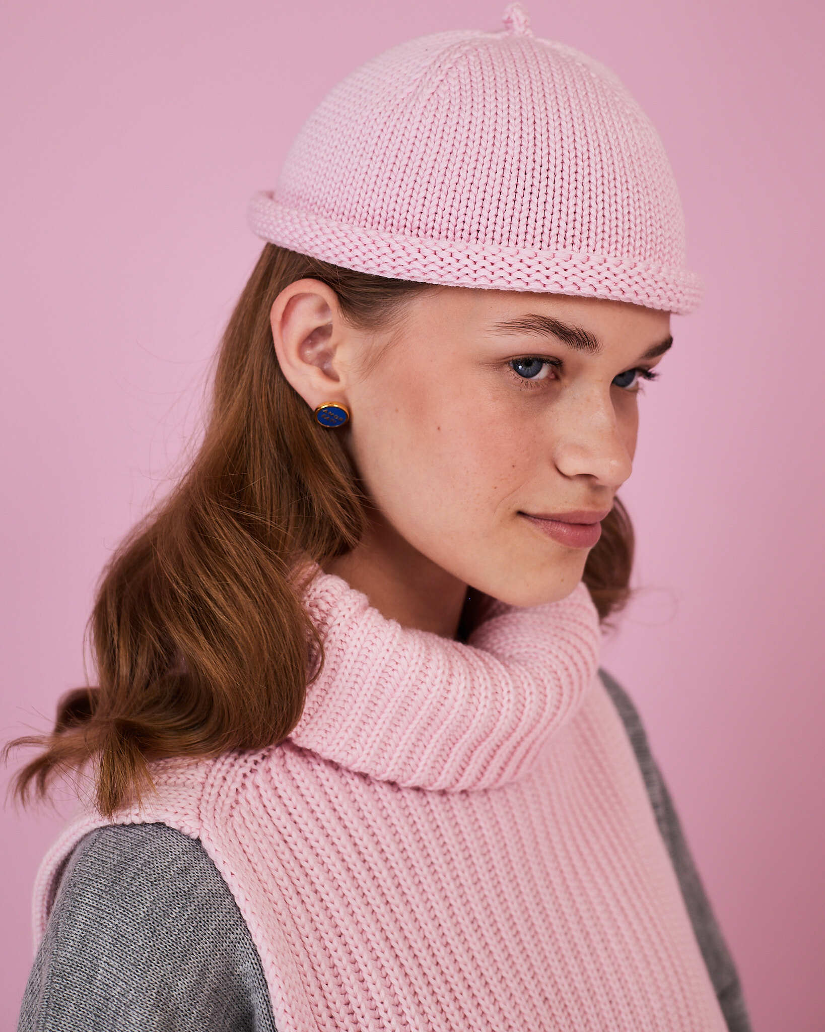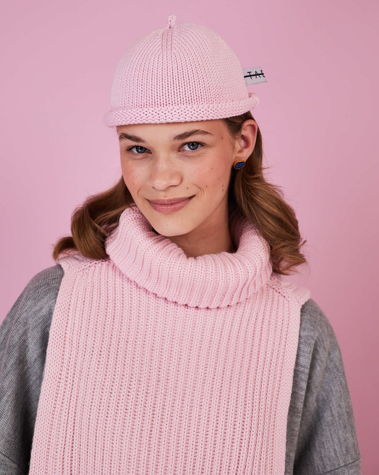 Шапка тыковка из хлопка предполагает высокую посадку на голове. Будет отличным дополнением образа.