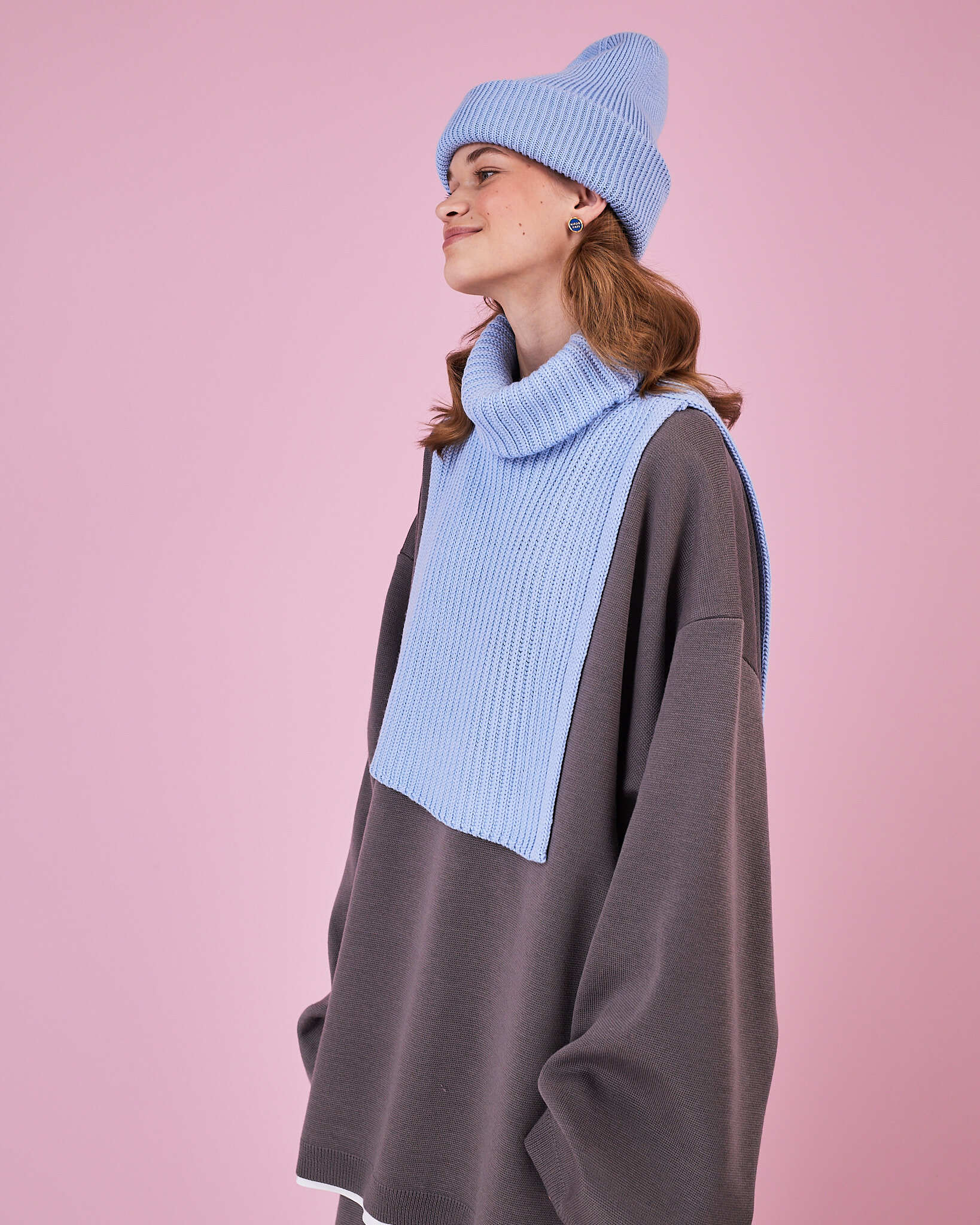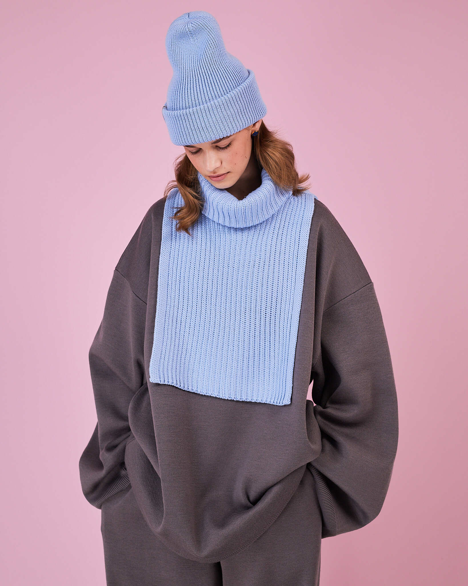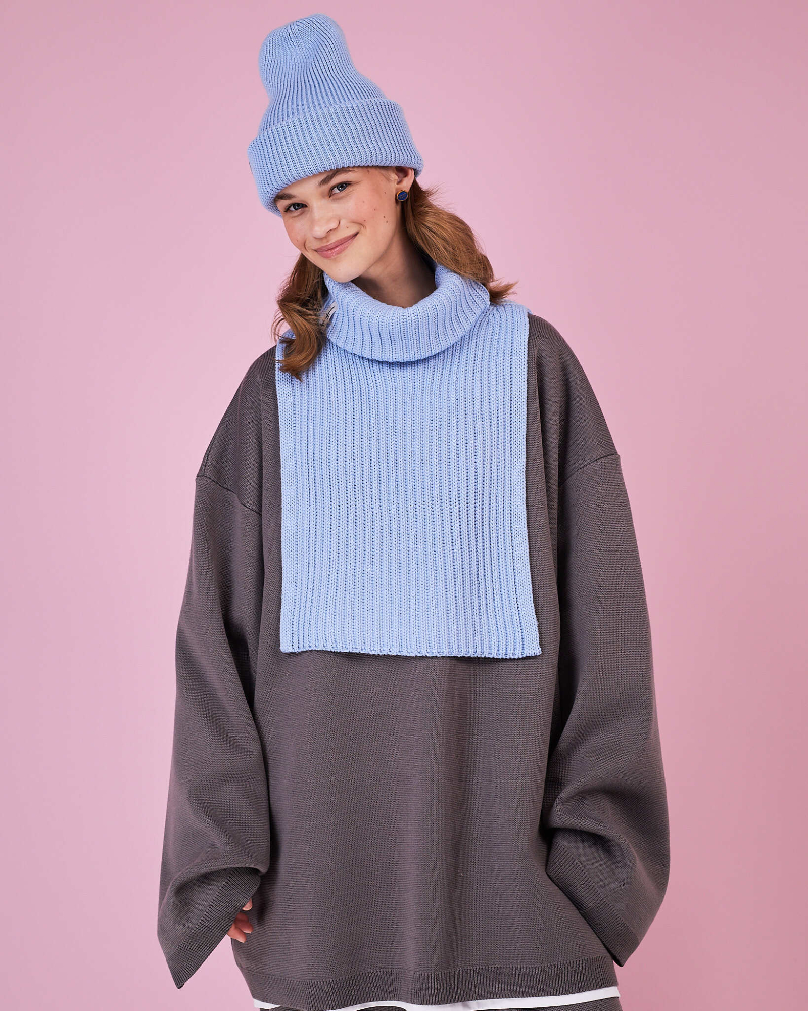Смесь мериносовой шерсти и акрила делает манишку не только теплой, но и легкой, что позволяет носить ее на протяжении длительного времени без дискомфорта.