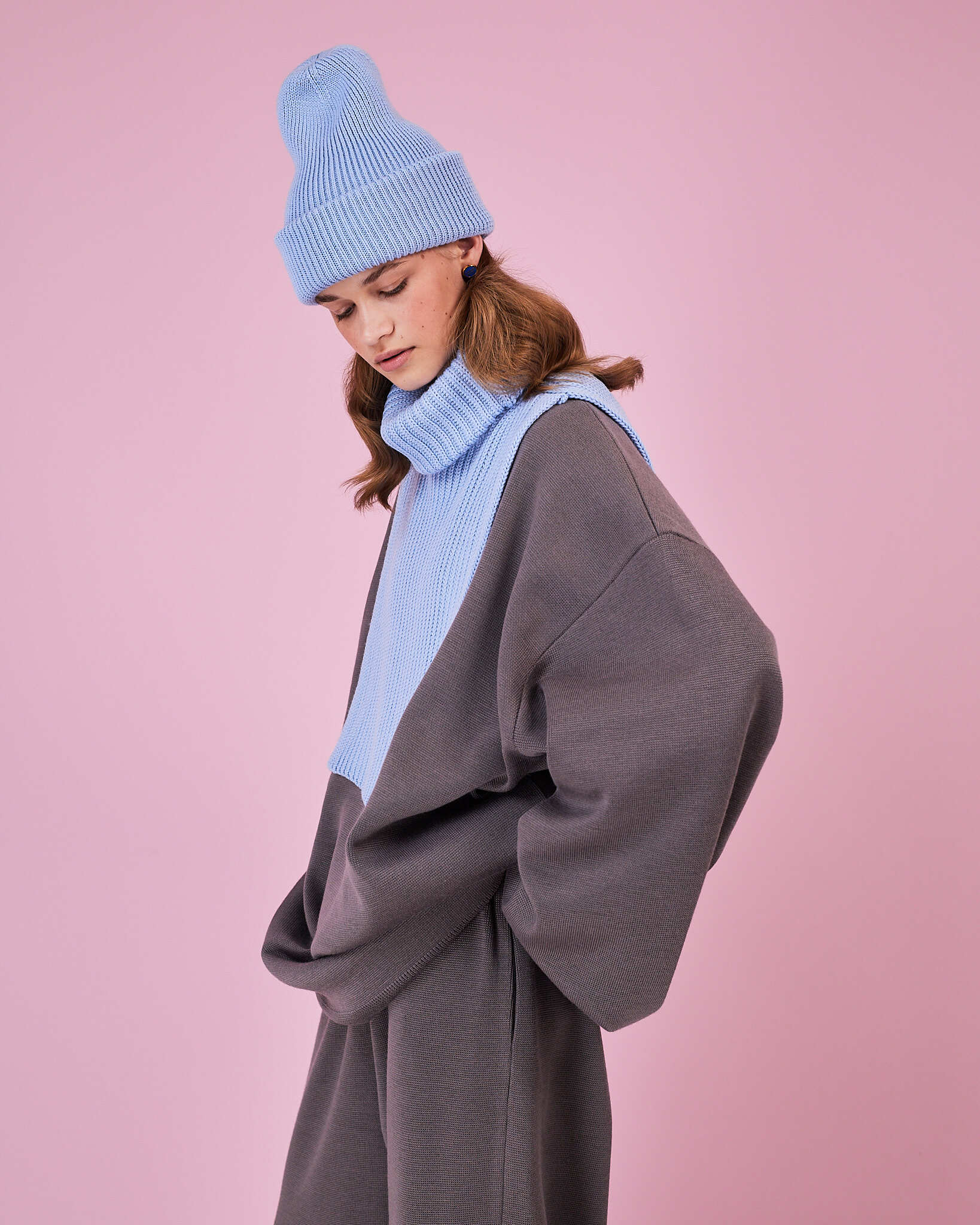 Вверху манишки расположена мягкая горловина, которая не только добавляет стильный акцент, но и защищает от холодного ветра.