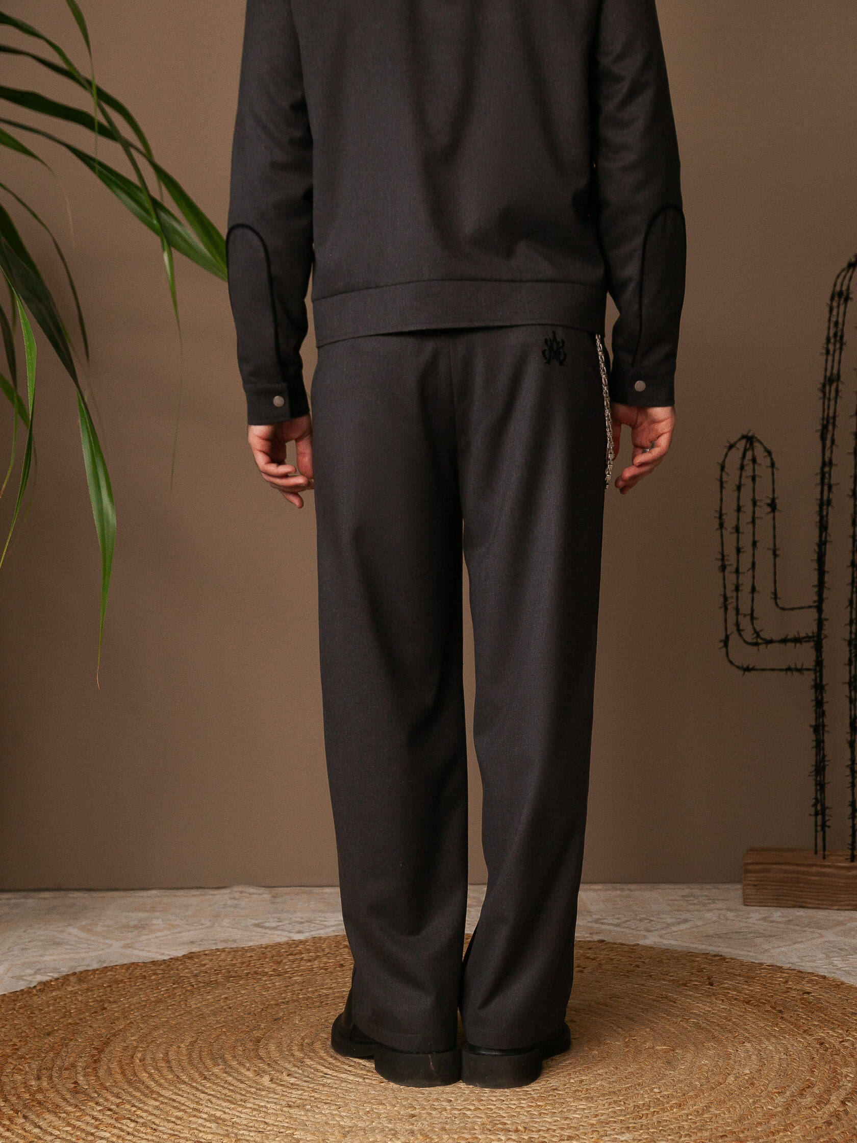Костюм из мягкой фактурной ткани; Ключевая деталь - в брюках окантовка выполнена в качестве лампаса по боковому шву. Акцентная вышивка.