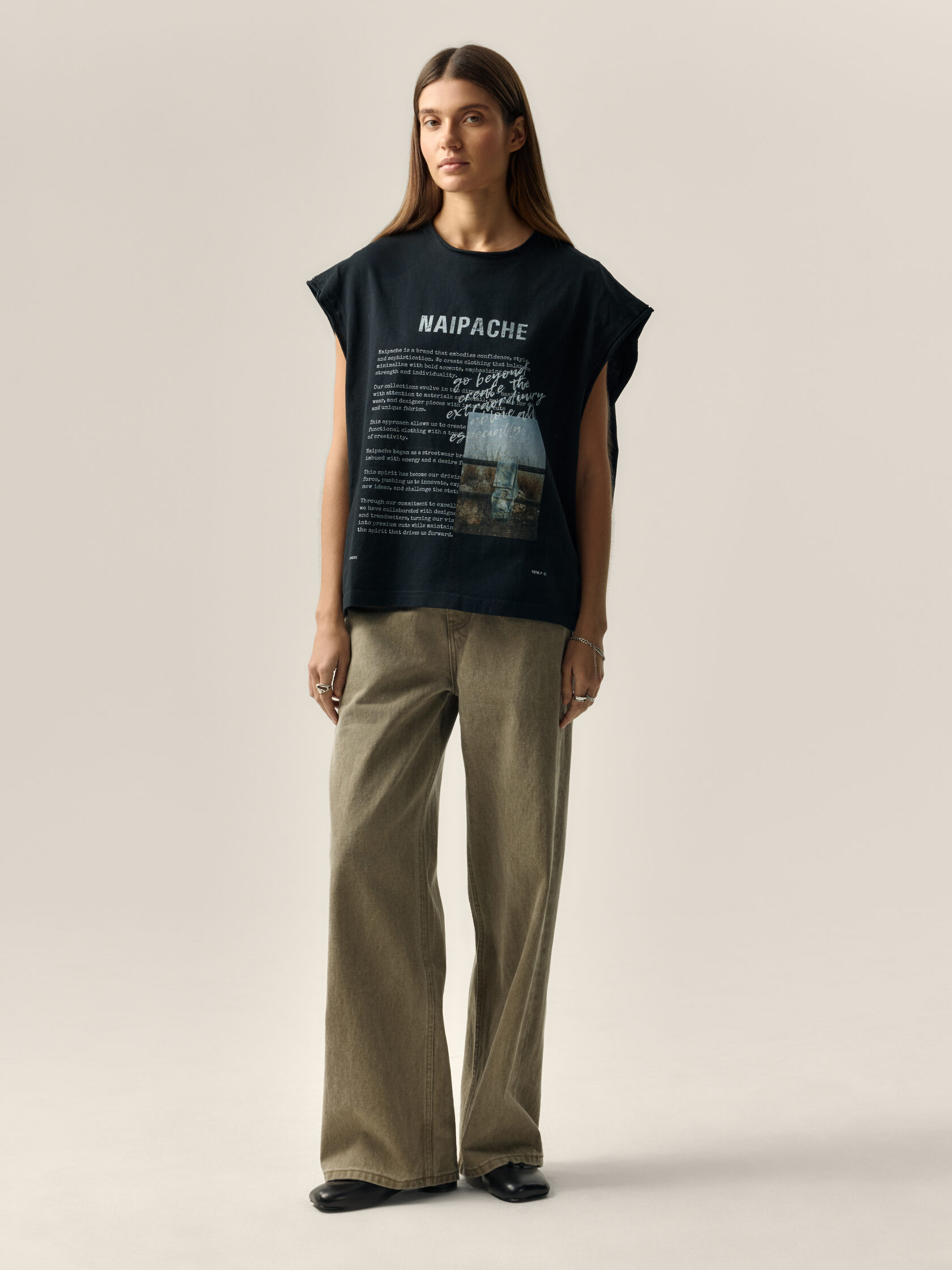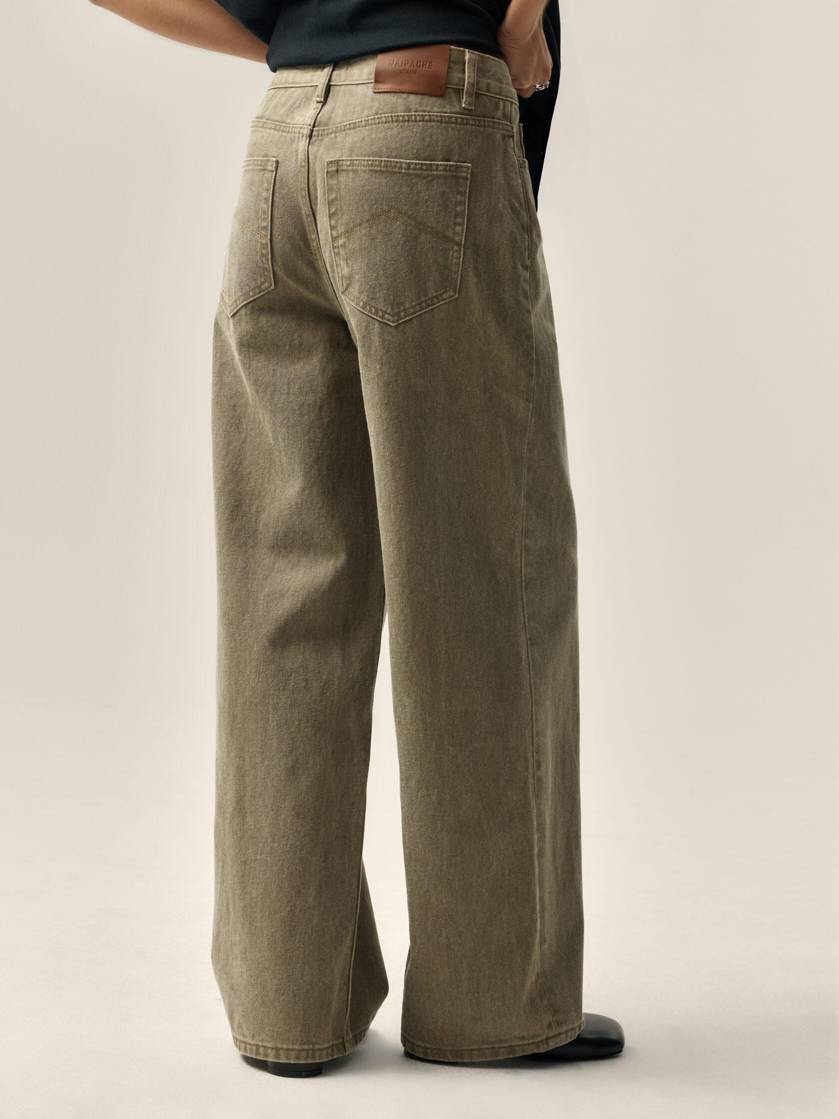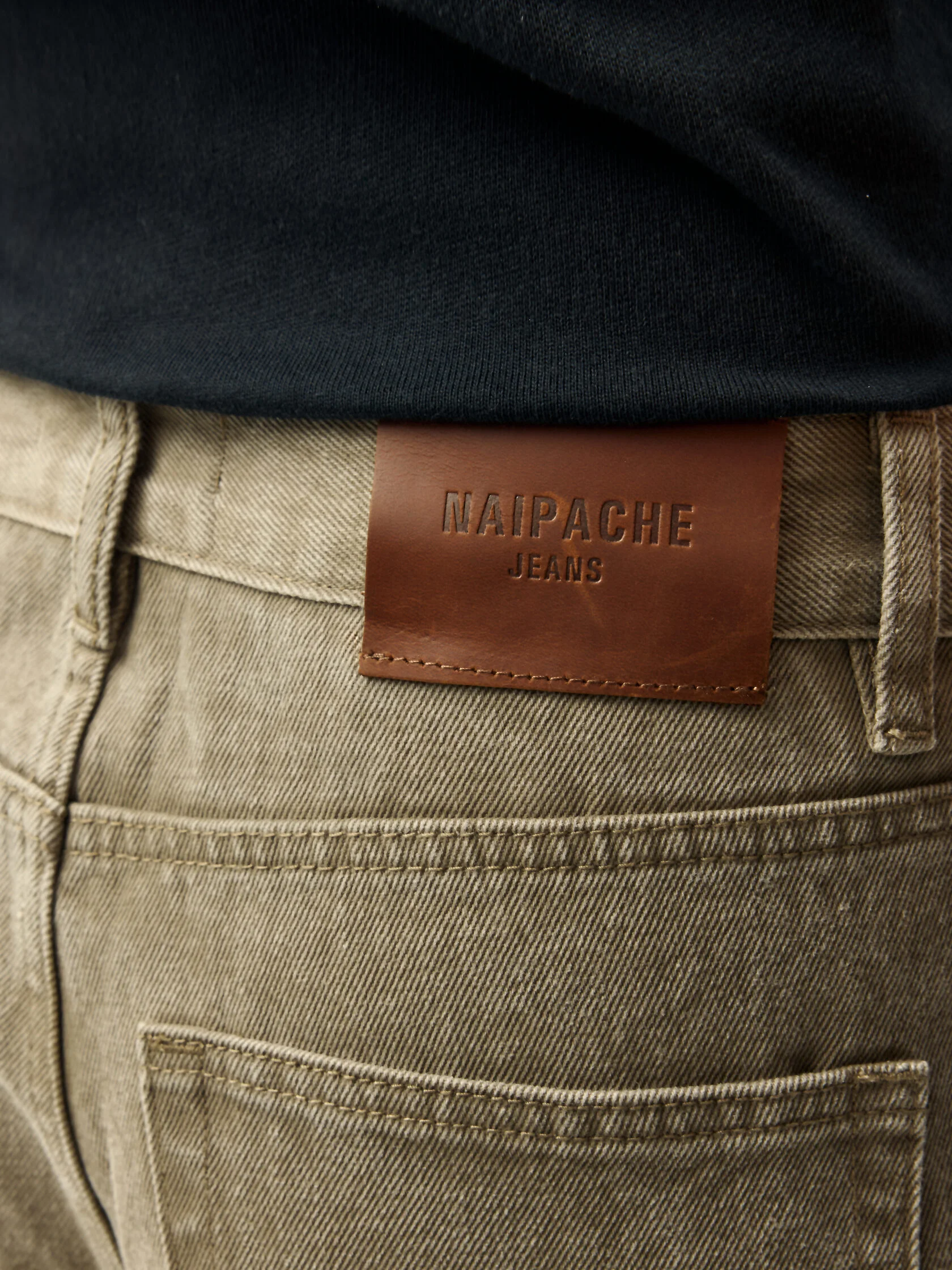 Джинсы высокой плотности (410 г/м²) с энзимной мойкой для мягкого осветления без повреждения структуры. Ручная обработка краев подчеркивает конструктивные швы. Целенаправленное легкое шлифование низа штанин имитирует естественное истирание. Обработка завершена для гарантии комфортной носки.