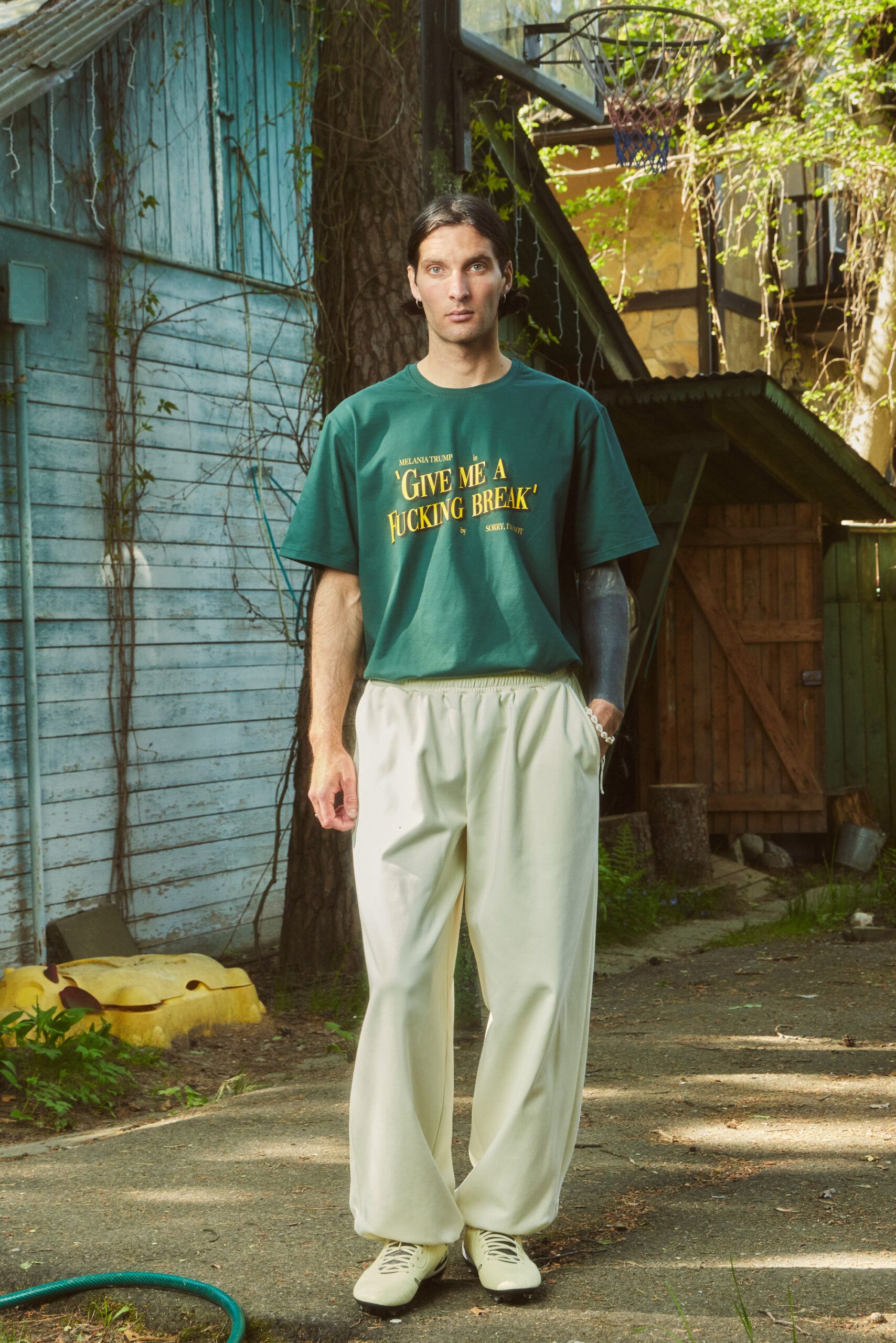Футболка мужского кроя из хлопка, в темно-зеленом цвете, с авторским принтом.