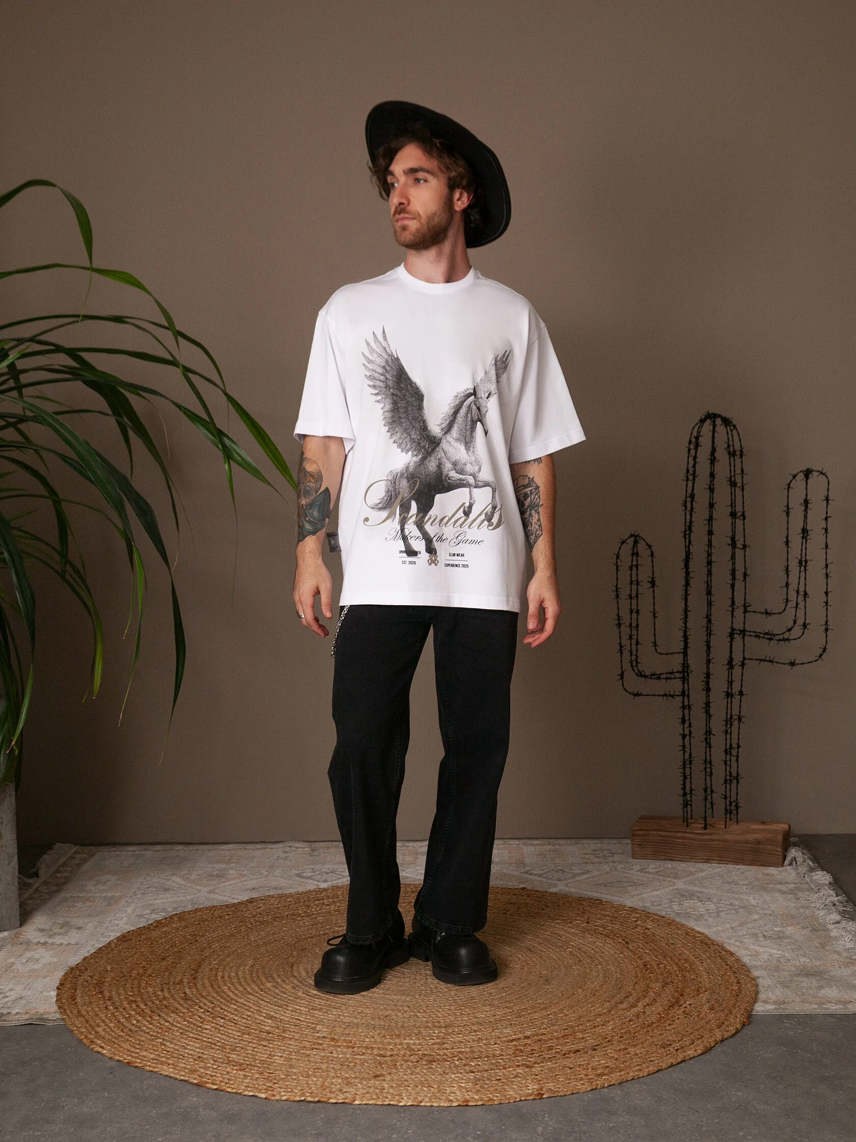 Сюжет илюстрирует мифическое создание «крылатого коня», который «вздымается на дыбы» и демонстрирует дикий и неукротимый дух. Пегас служит символом преодоления и выходом за рамки возможного. Это существо уже многие поколения вдохновляет поэтов, художников и драматургов.