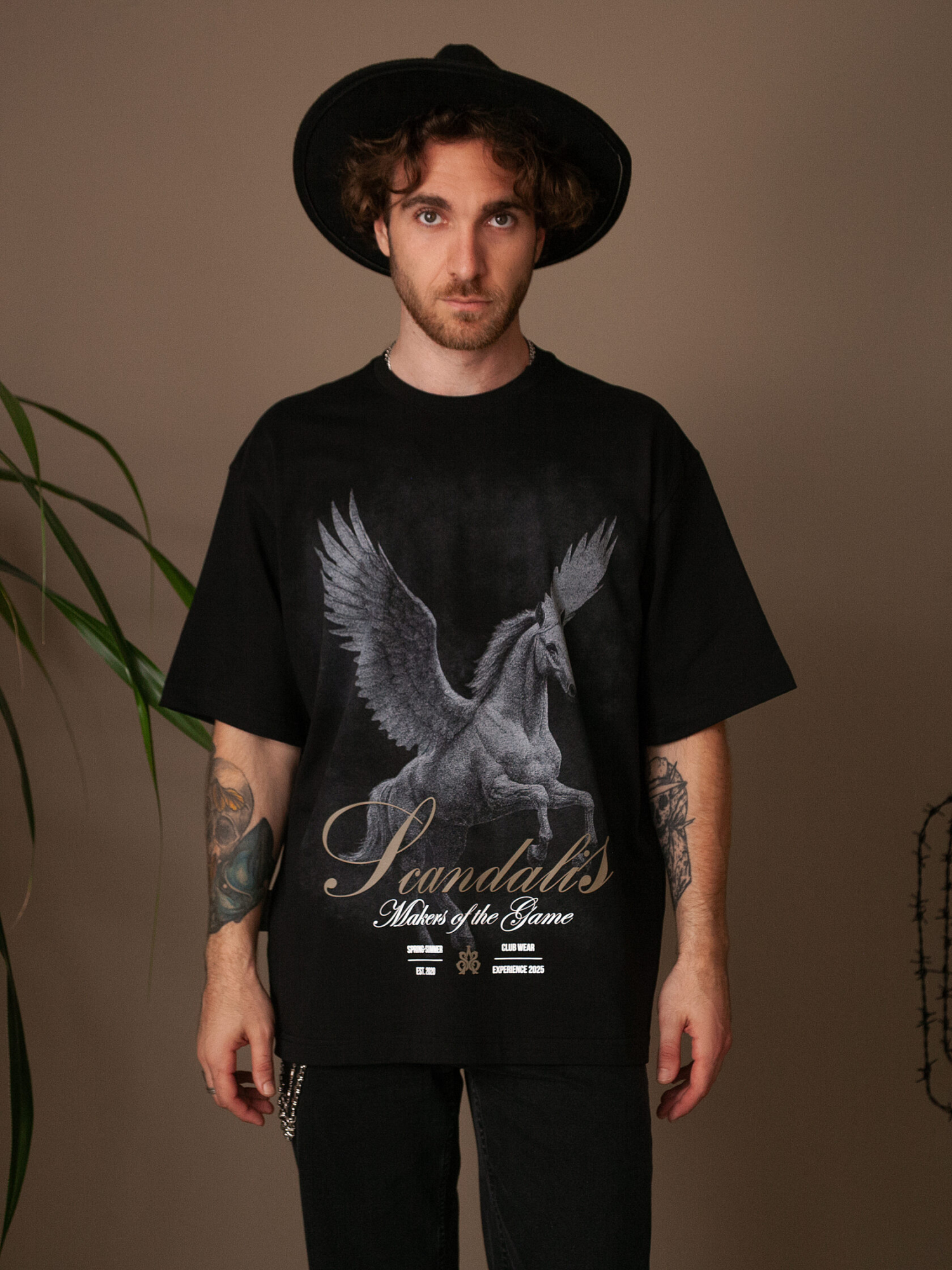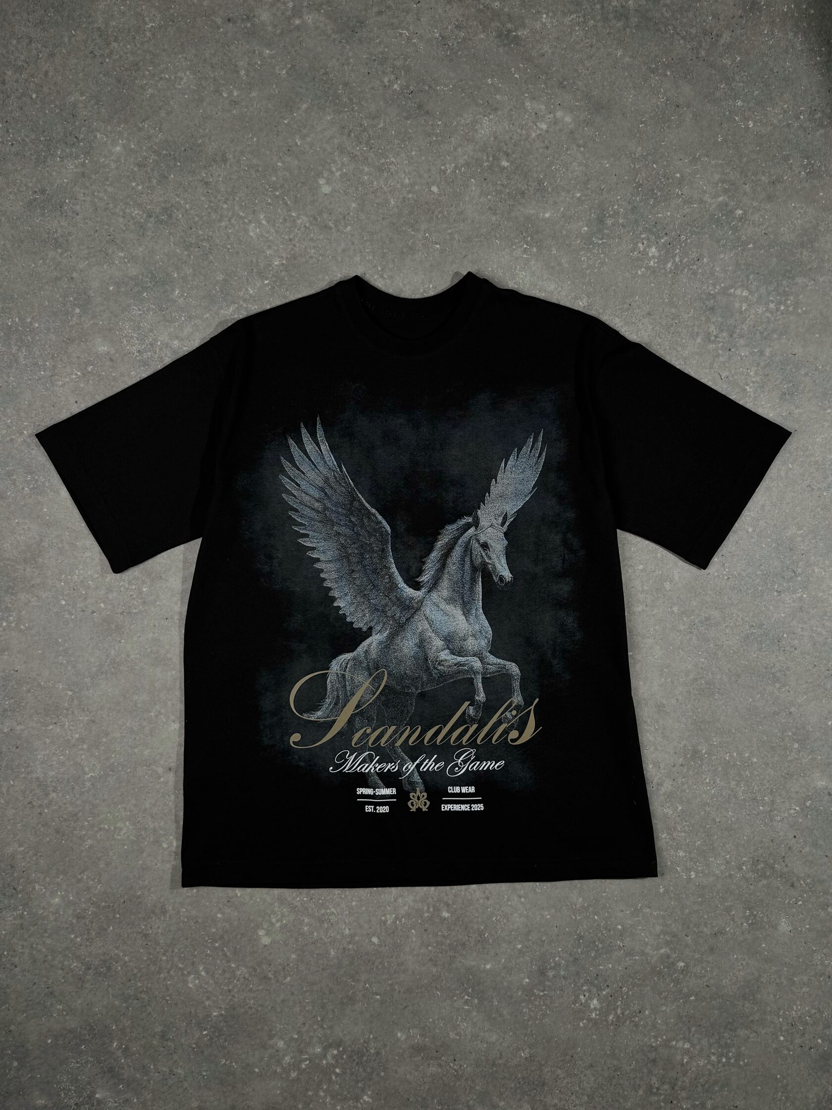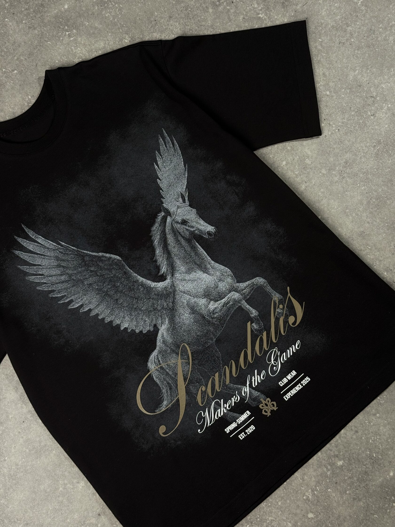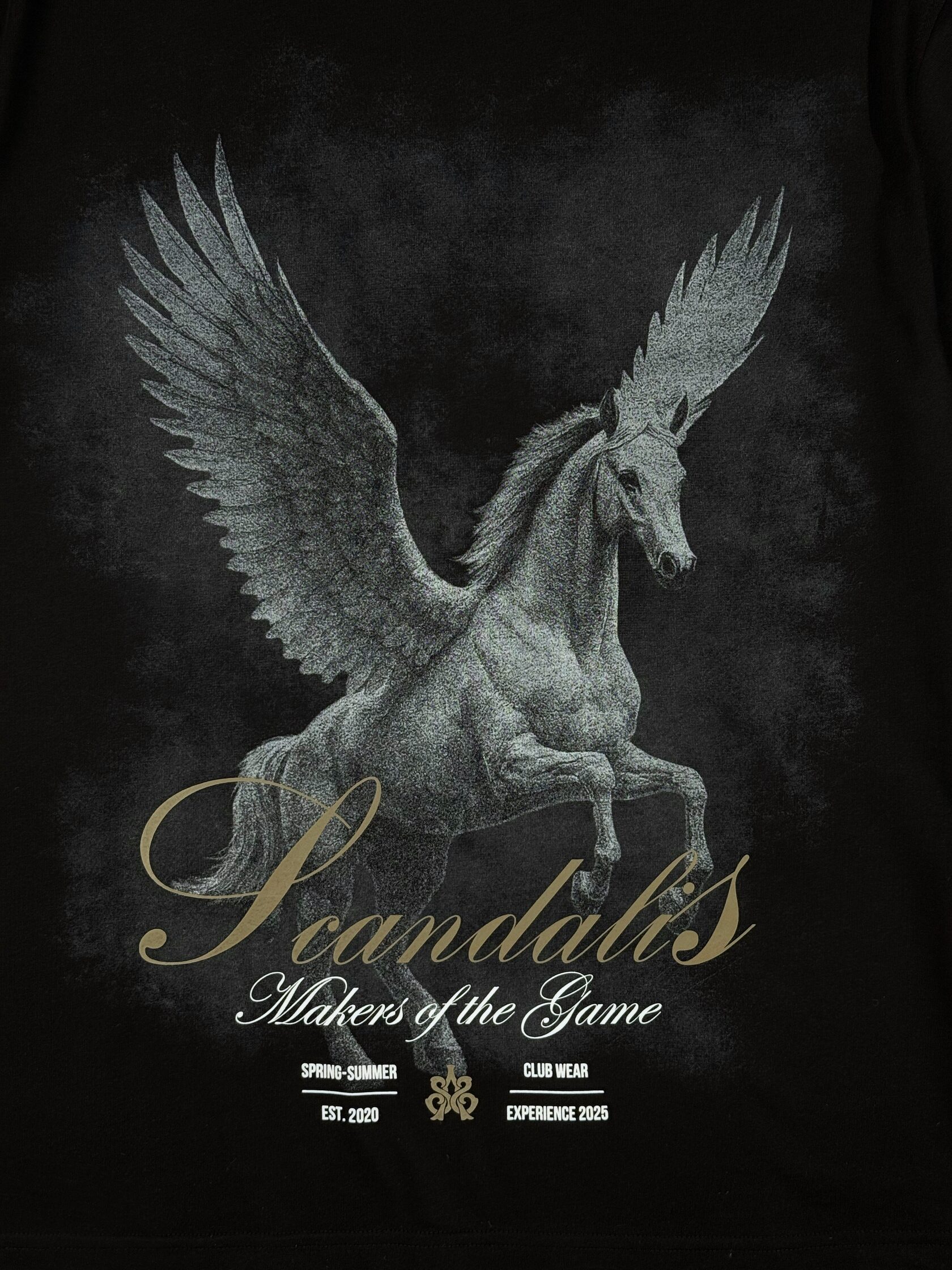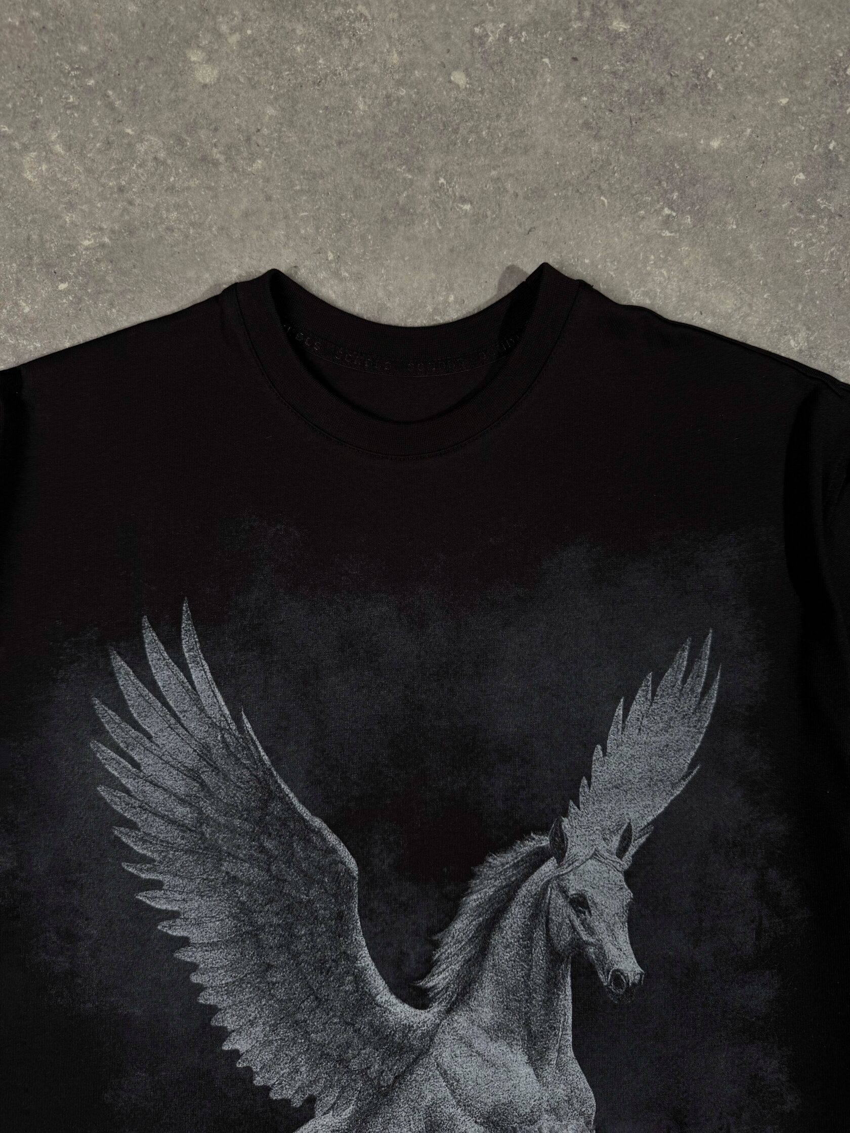 Сюжет илюстрирует мифическое создание «крылатого коня», который «вздымается на дыбы» и демонстрирует дикий и неукротимый дух. Пегас служит символом преодоления и выходом за рамки возможного. Это существо уже многие поколения вдохновляет поэтов, художников и драматургов.