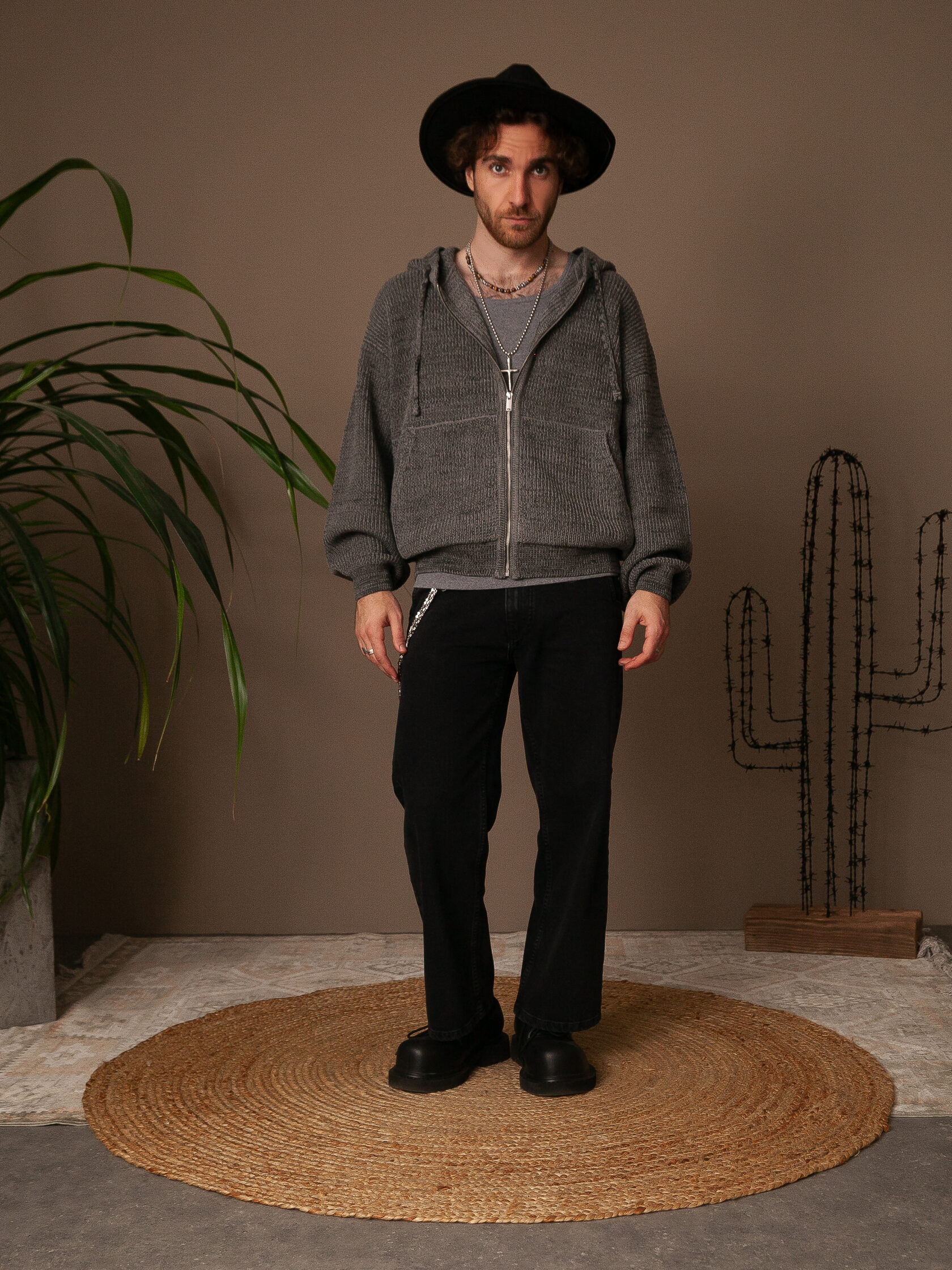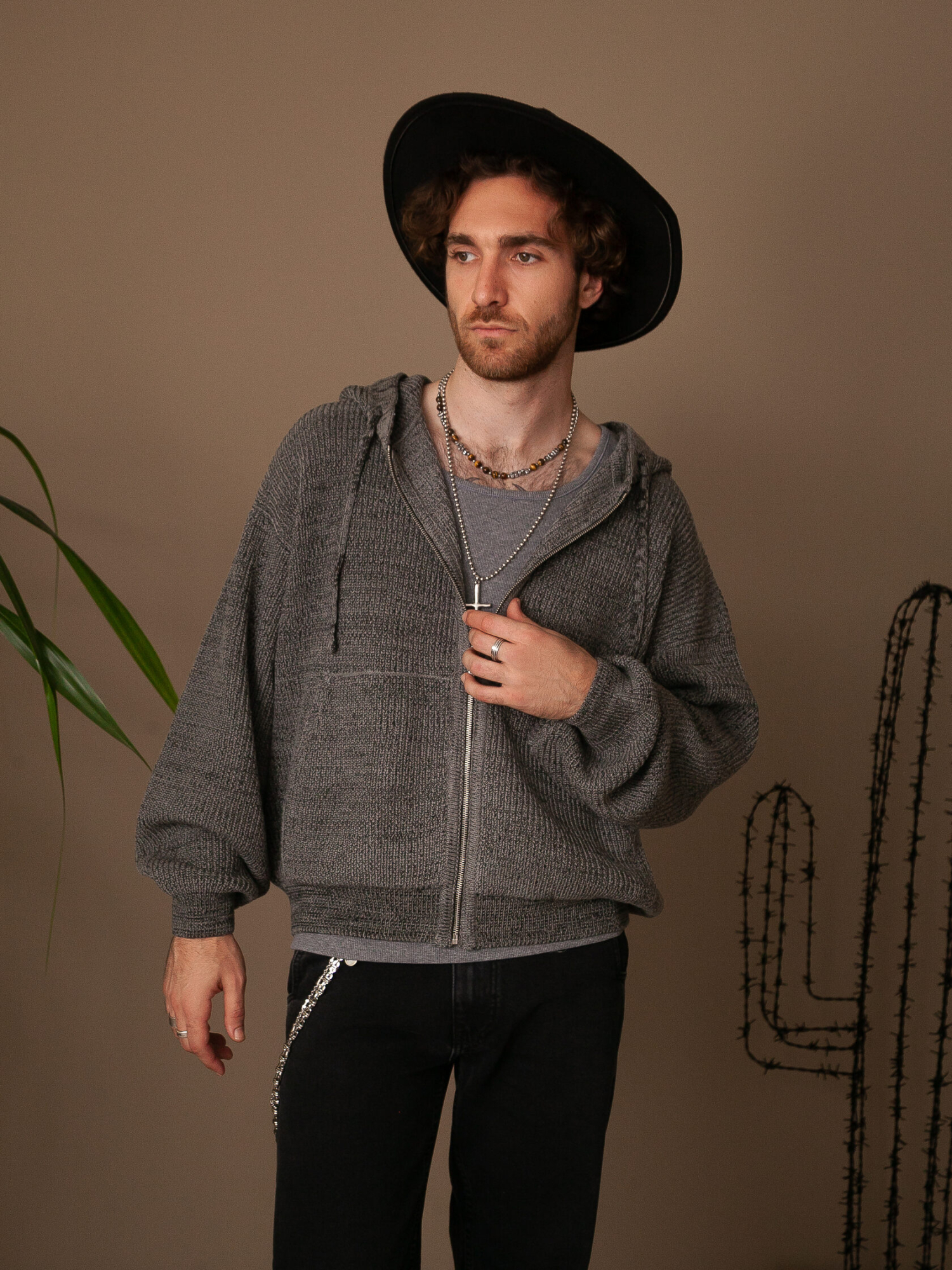 ВЯЗАНОЕ ХУДИ «ZIPHOOD» на молнии шерстяной фактуры крупной вязки