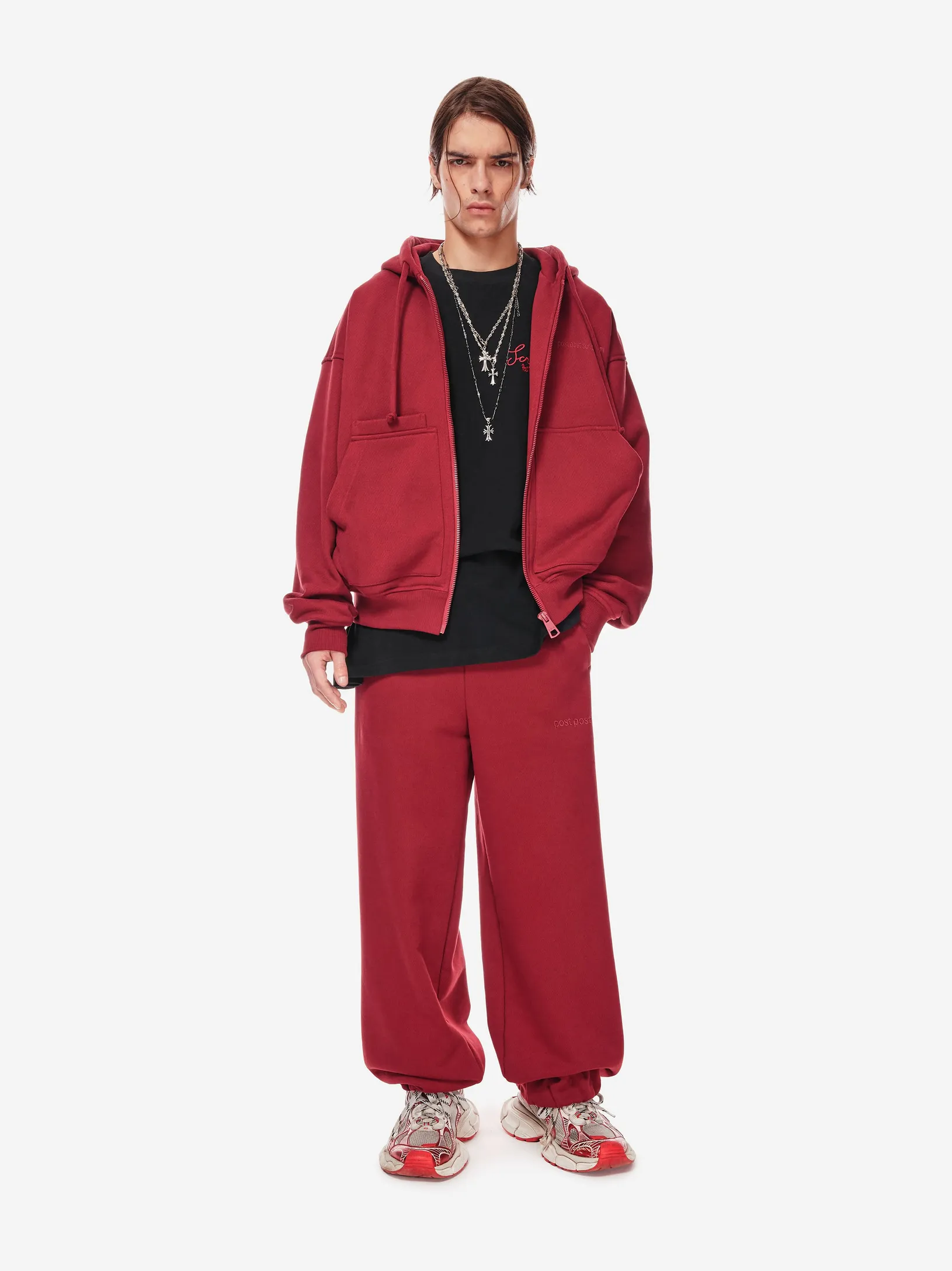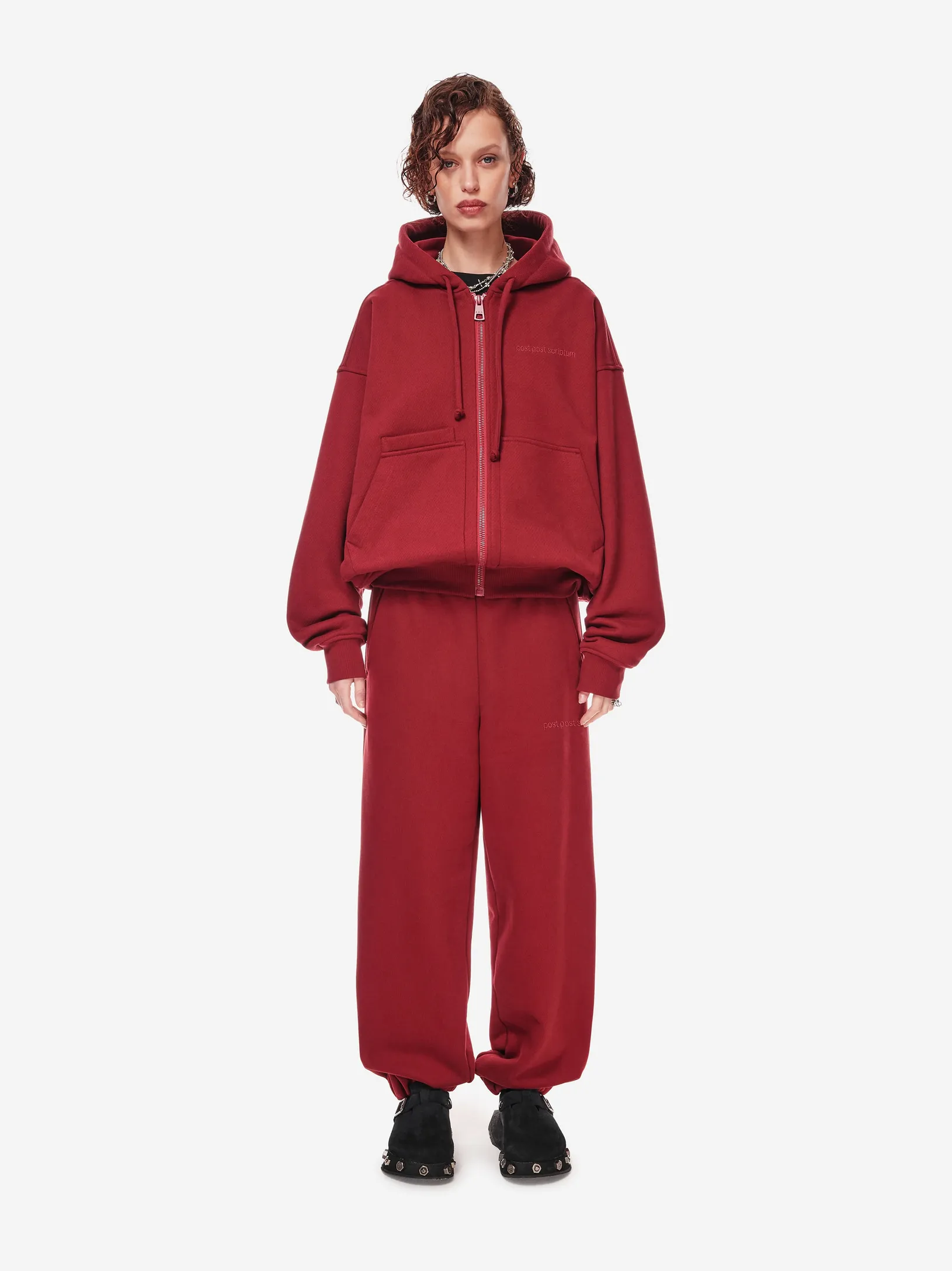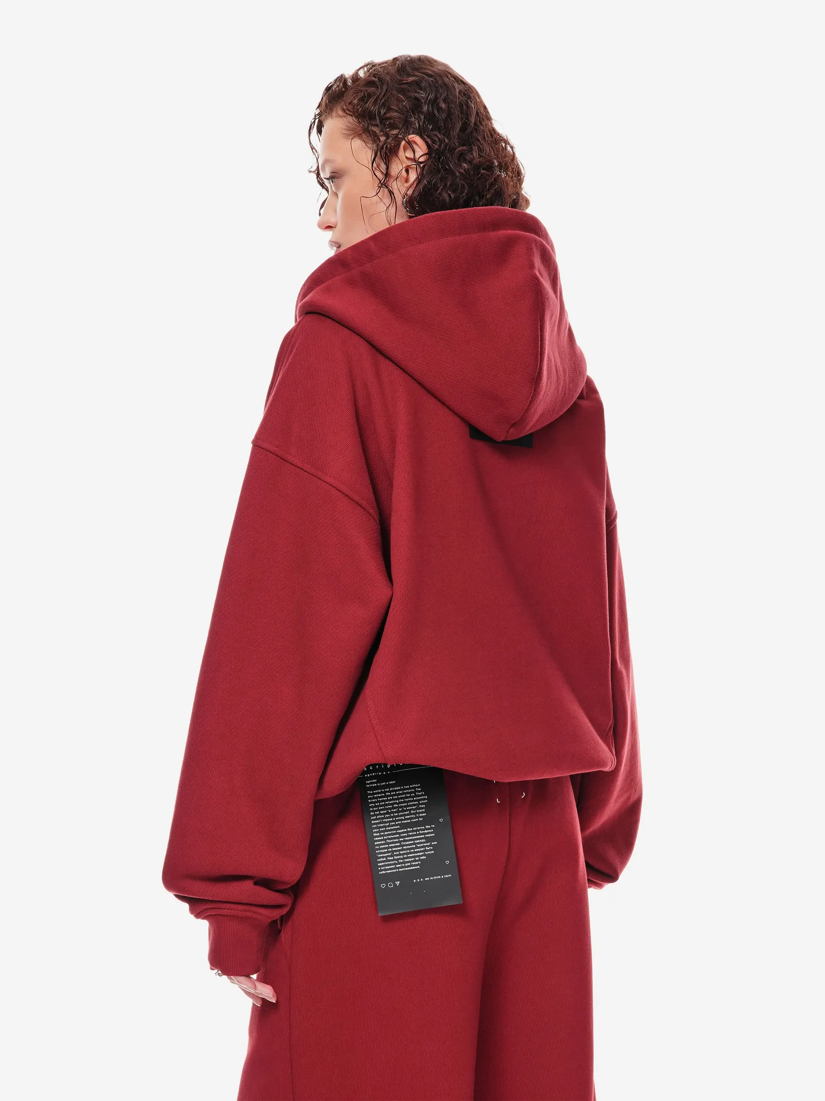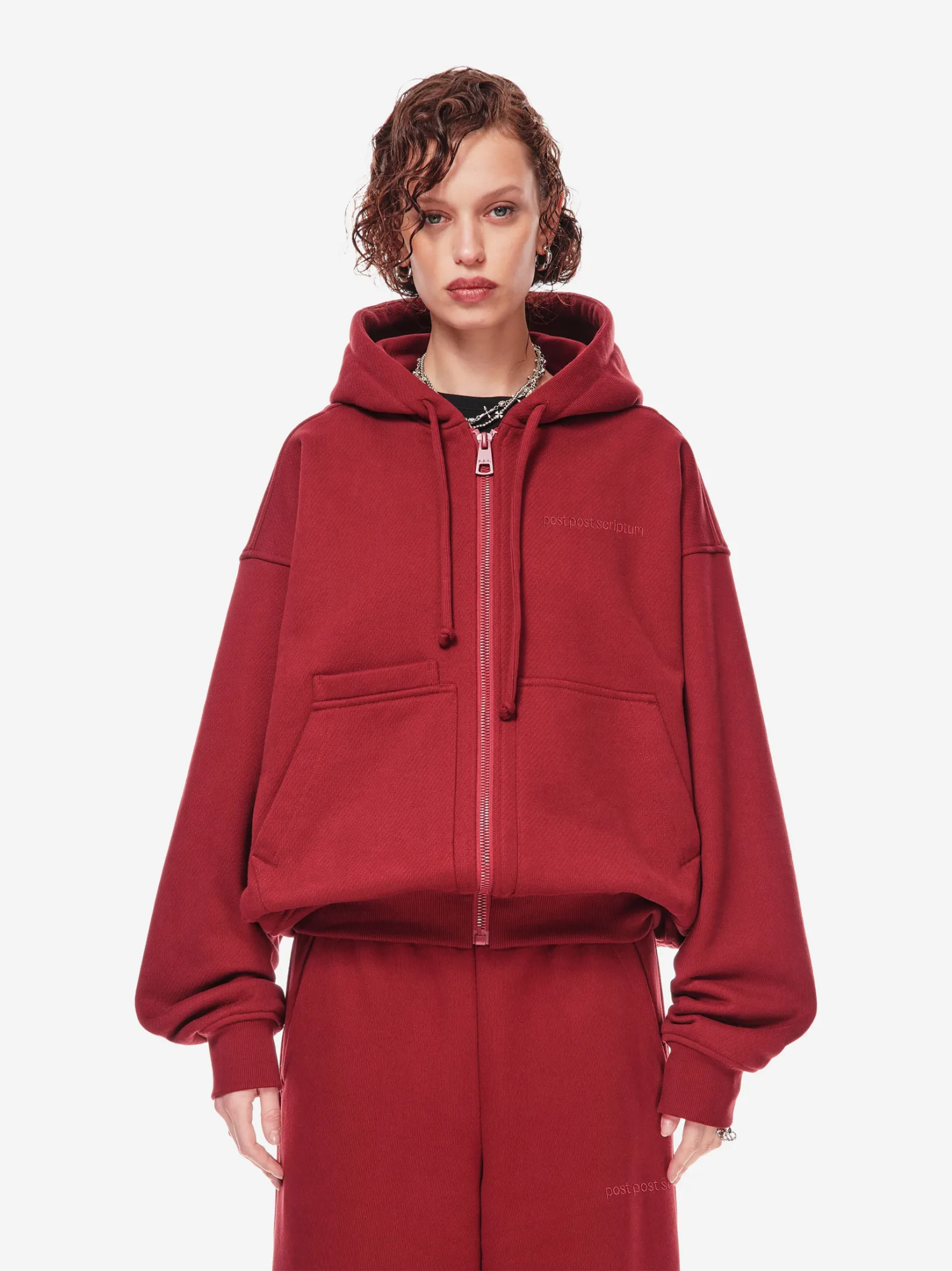 Худи на молнии из плотного хлопкового трикотажа 380 г/м². Свободный крой с пониженной линией плеч. Двусторонняя застёжка-молния, объёмный капюшон со шнурком, эластичные манжеты и низ. Спереди — два кармана и дополнительный скрытый карман с отделением для телефона. Фирменная вышивка в тон post post scriptum на груди, патч-манифест сбоку и вышитые вручную скобки на спинке подчёркивают эстетику бренда. Сочетайте с хлопковыми брюками из новой коллекции или денимом в повседневных образах