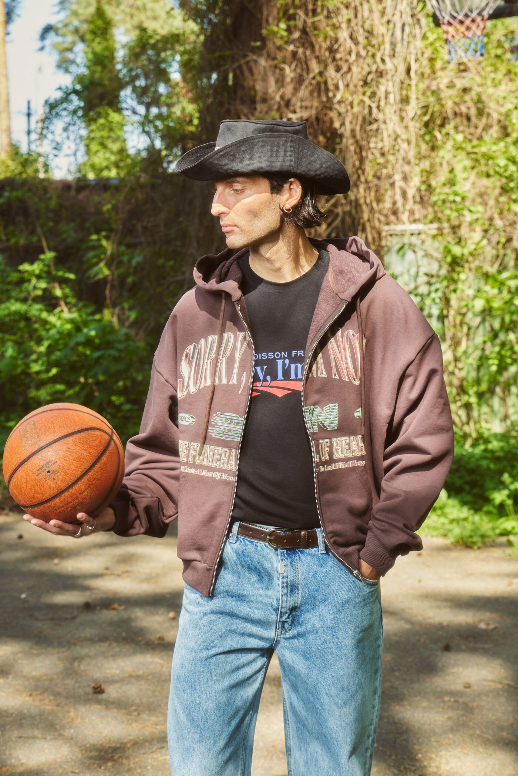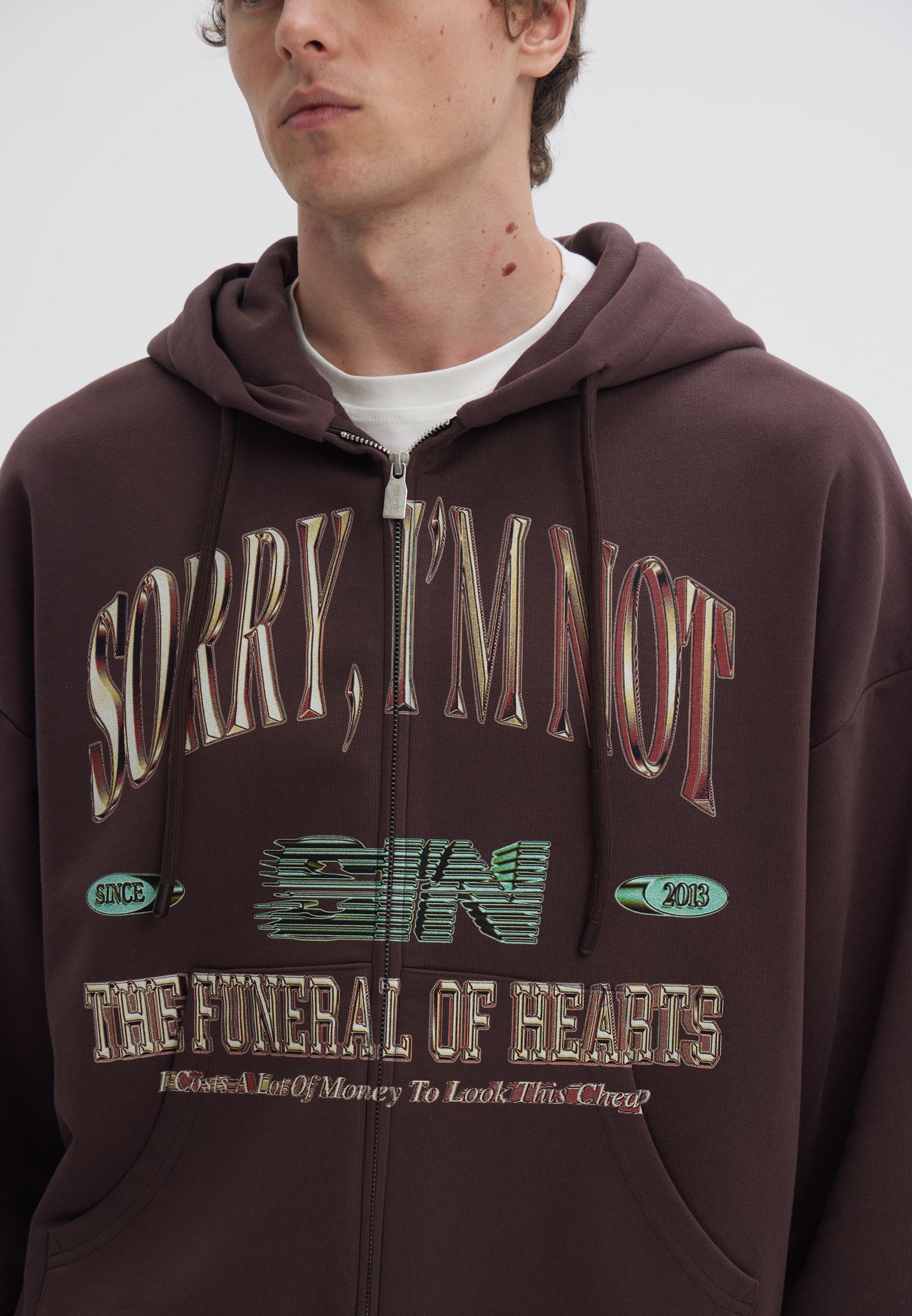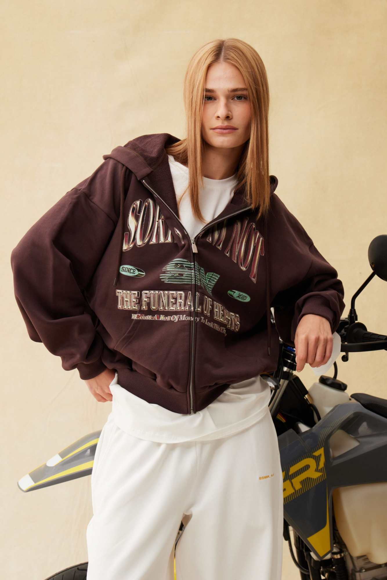 ZIP Худи в коричневом цвете с авторским принтом. Подойдет как для парней, так и для девушек.
