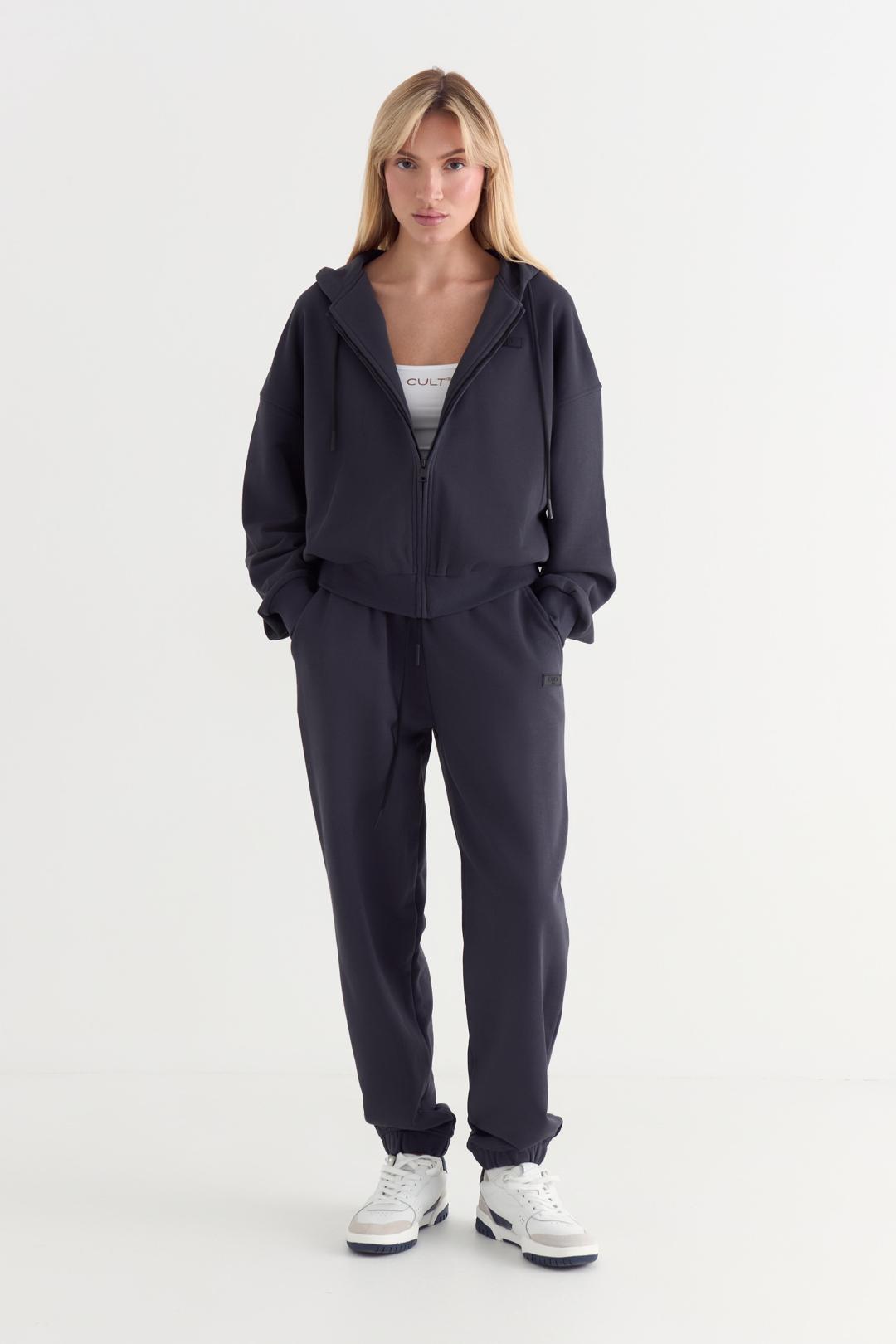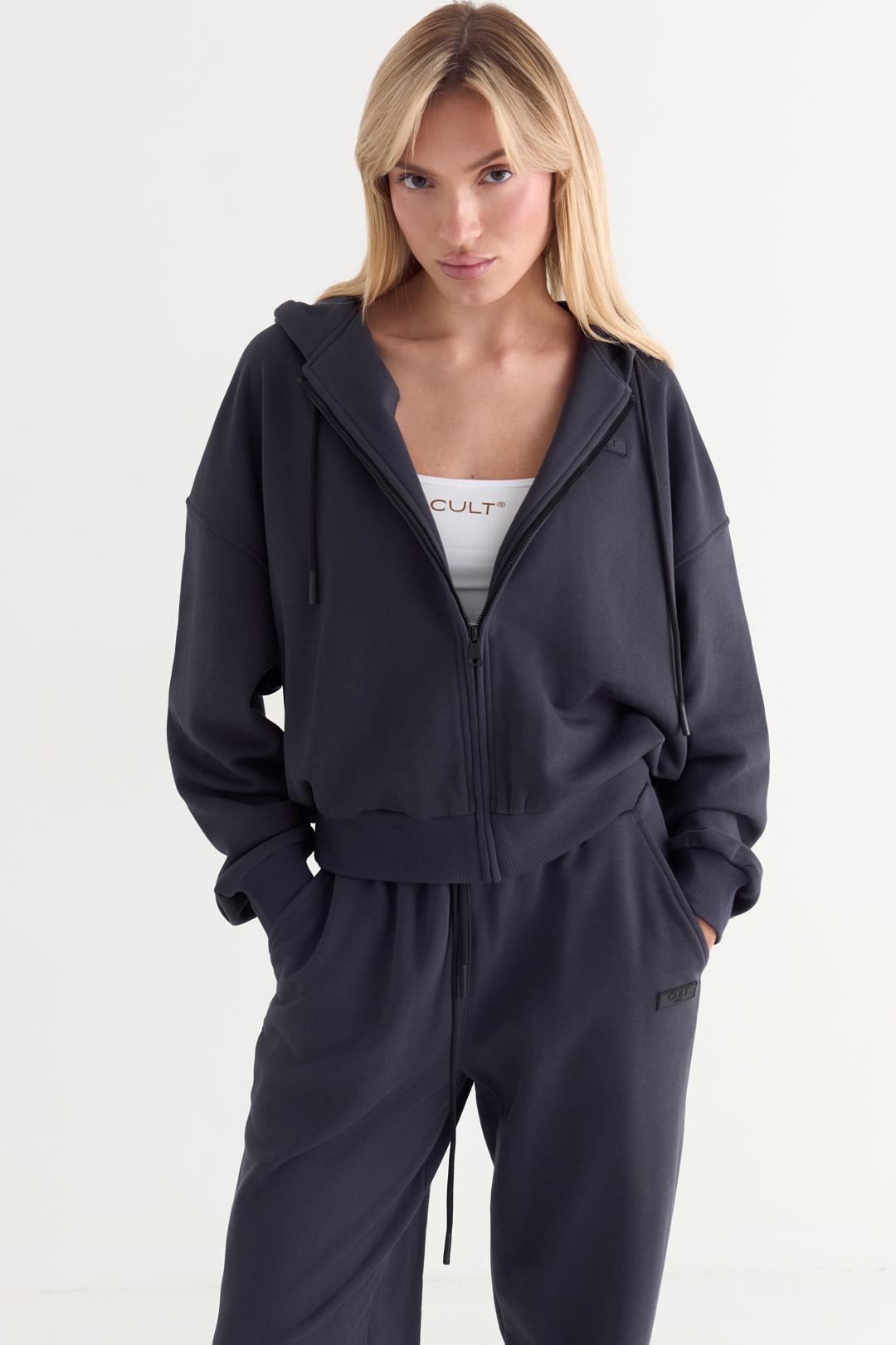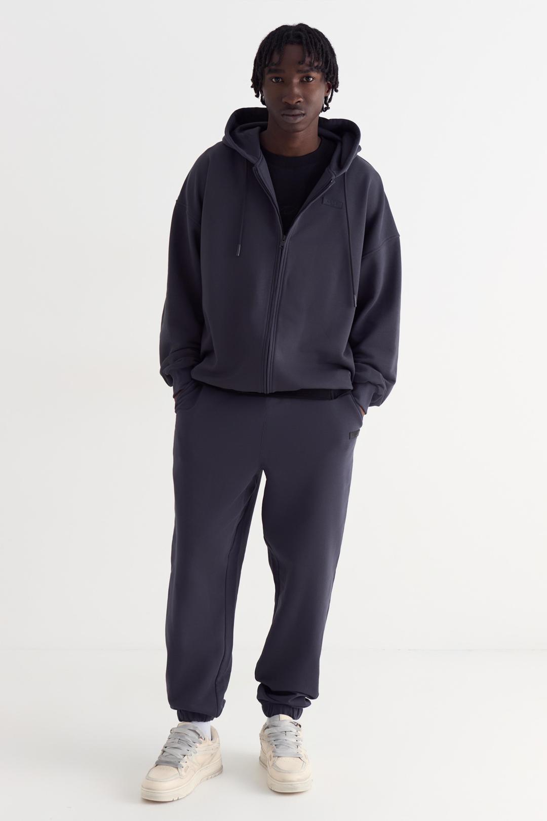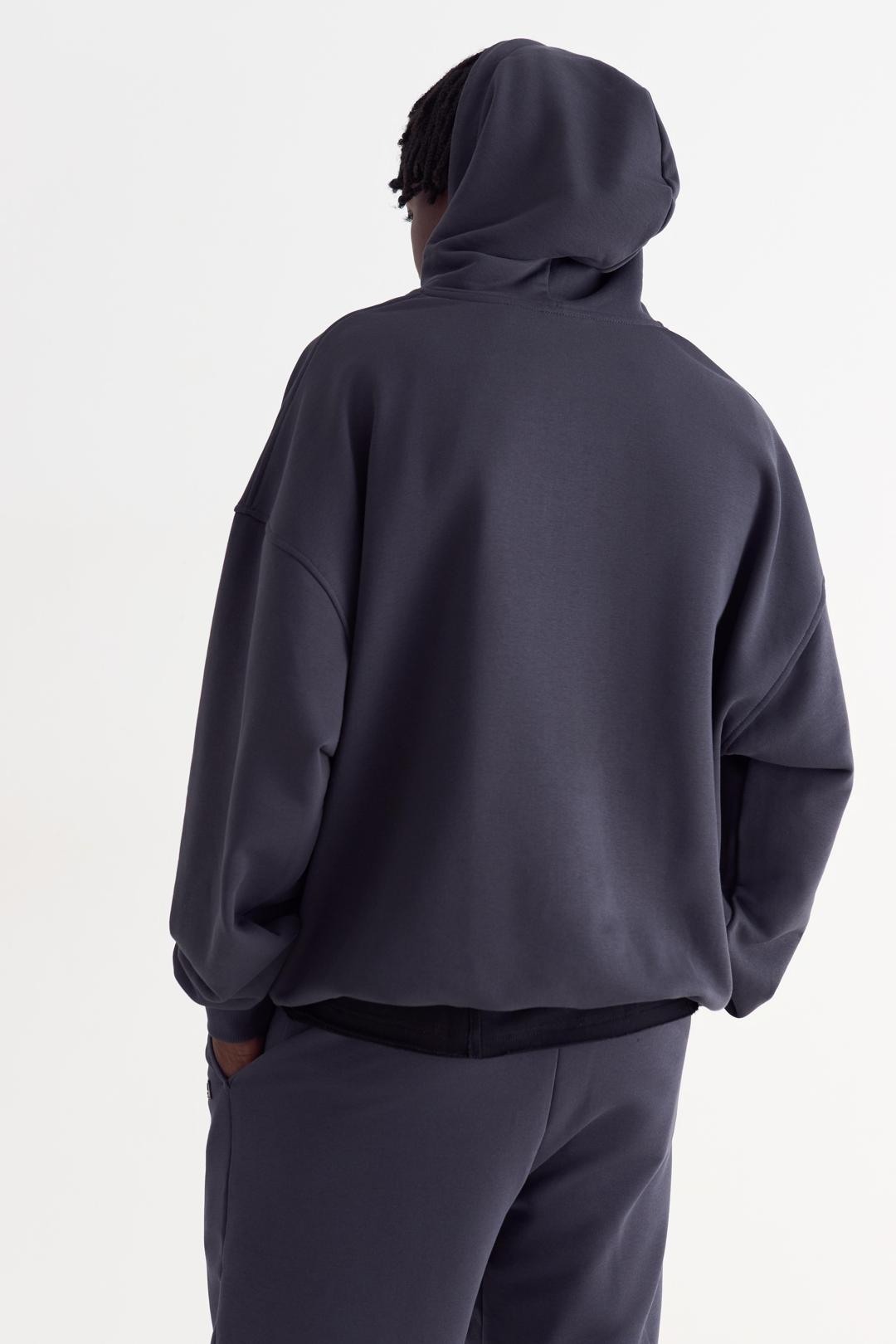 Худи на молнии оверсайз со спущенным плечом из футера трехнитки, с двойным капюшоном со шнурком. Манжеты на рукавах и по низу изделия из кашкорсе. Брендированная нашивка спереди слева.