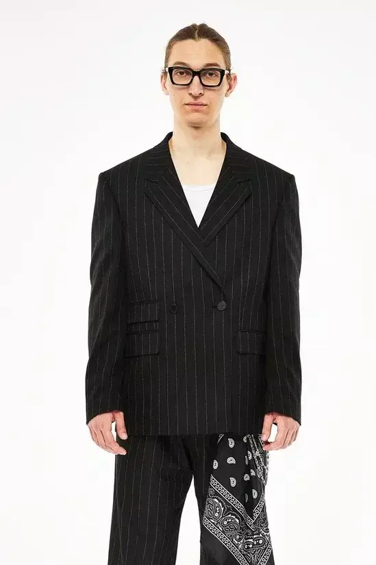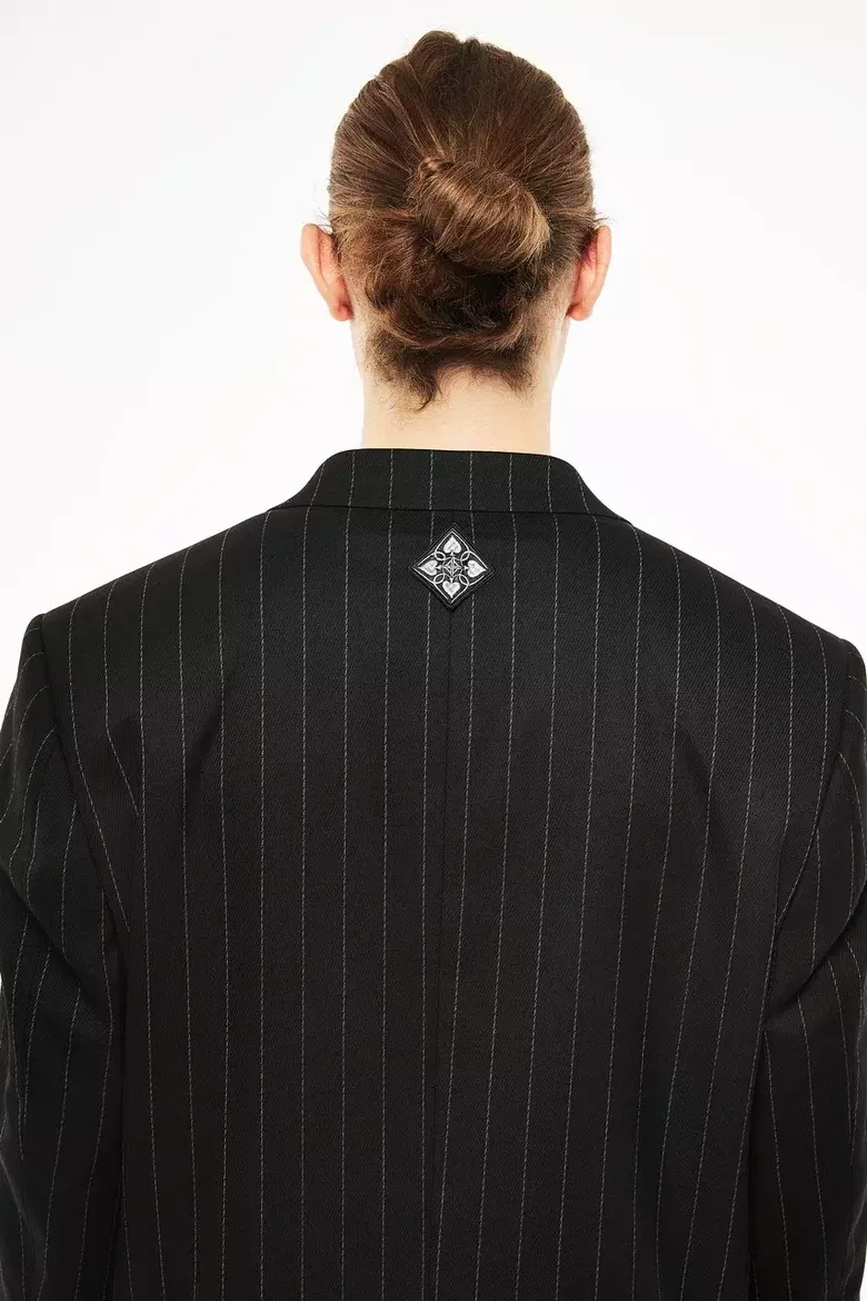Пиджак классического over кроя. Дополнен акцентным патчем с логотипом SCANDALIS на рукаве и маленьким патчем сзади в виде фирменного знака "пика"