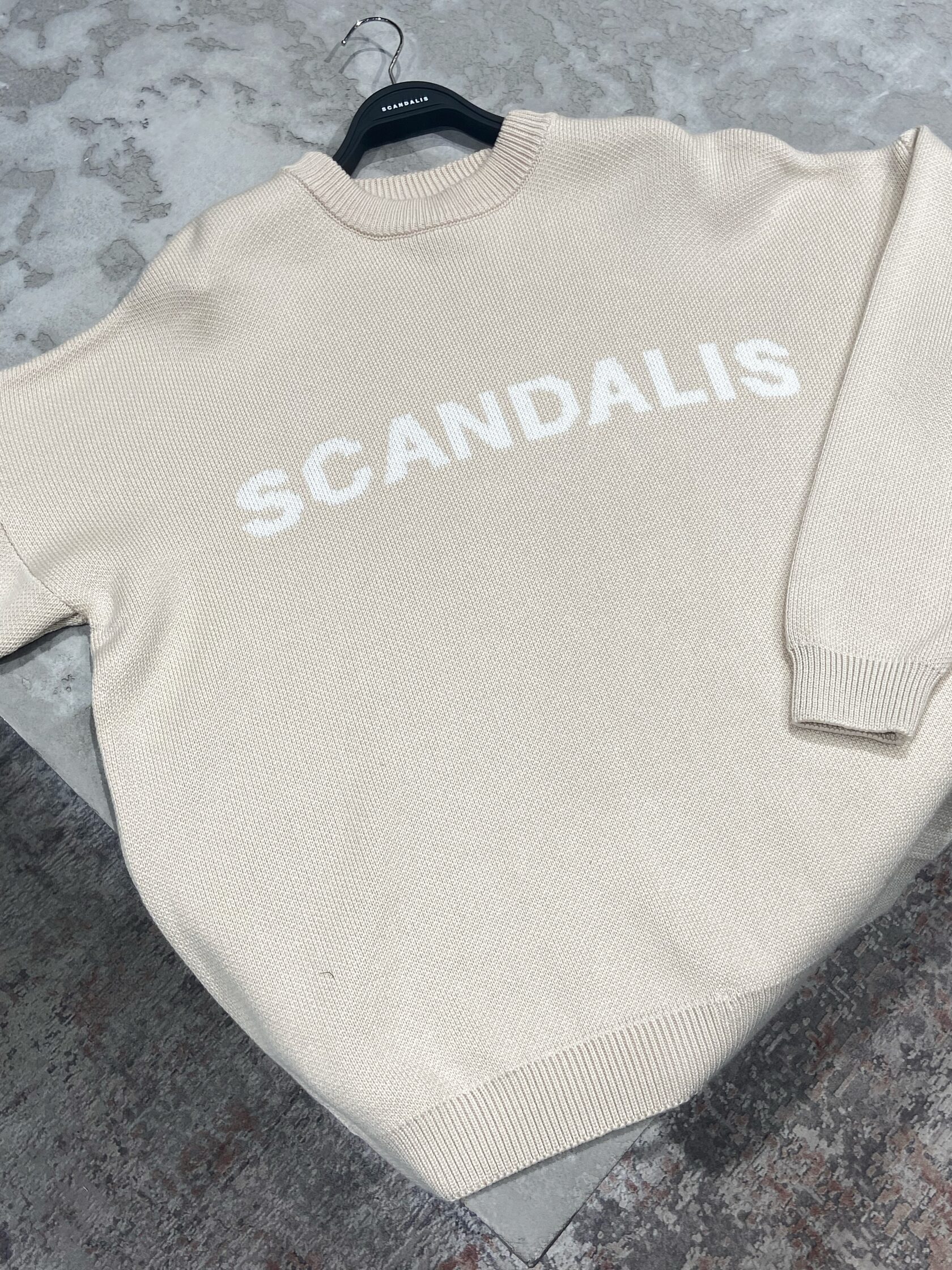 Back to office. Свитер вывязанный с объемным логотипом SCANDALIS. Модель имеет широкое горло и объемный рукав, что позволяет его использовать в многослойных образах.