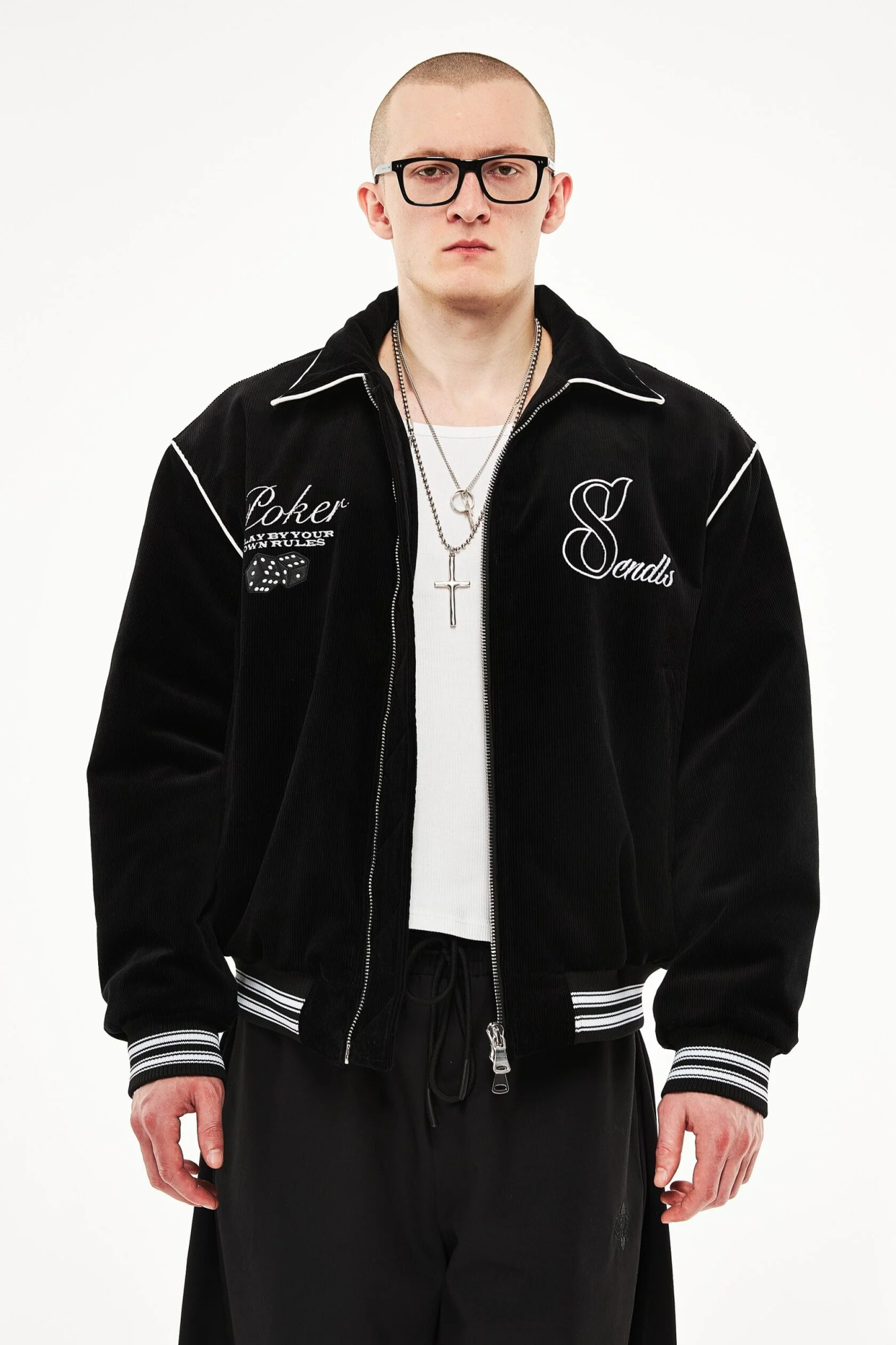 Чёрная куртка-бомбер из вельвета — стильный и практичный выбор для холодного времени года. Отлично подойдёт для создания повседневного образа. Удобная модель обеспечит комфорт и свободу движений.