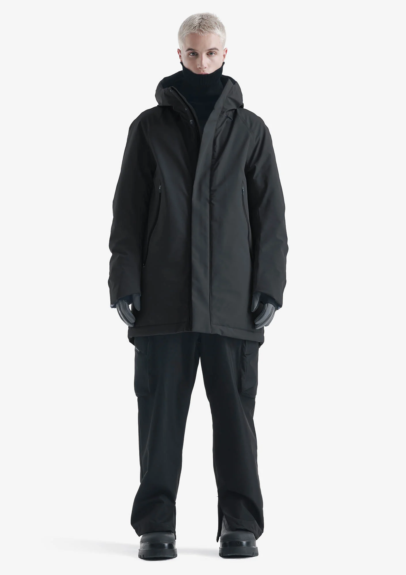 Зимняя технологичная парка DSUP из функциональной водостойкой ткани. Выполнена из полностью переработанного из пластиковых бутылок утеплителя. Оснащена подкладкой с функцией сбалансированной теплозащиты и внутренними стропами для переноски за плечами.