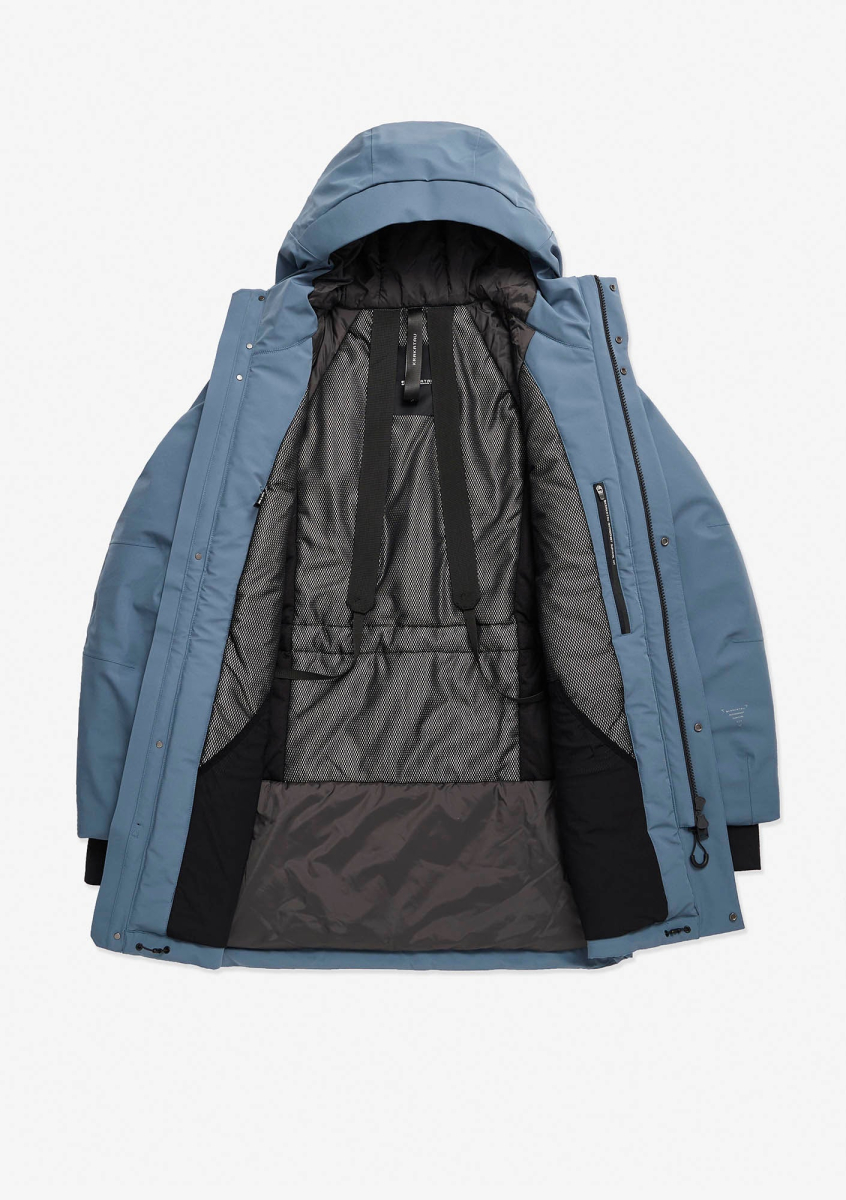 Зимняя технологичная парка DSUP из функциональной водостойкой ткани. Выполнена из полностью переработанного из пластиковых бутылок утеплителя. Оснащена подкладкой с функцией сбалансированной теплозащиты и внутренними стропами для переноски за плечами.