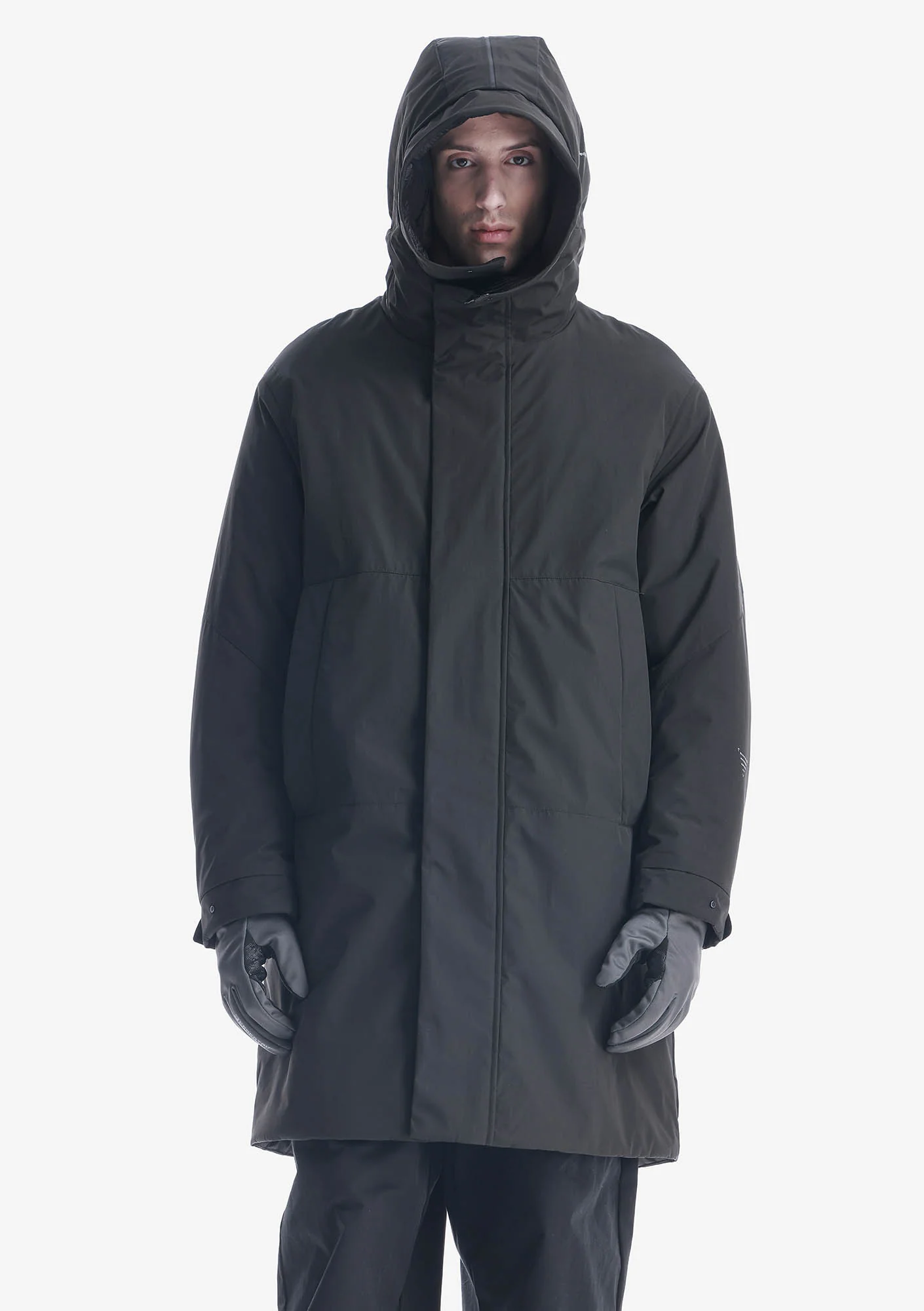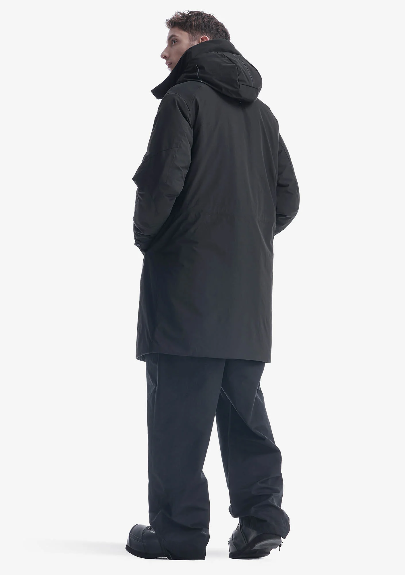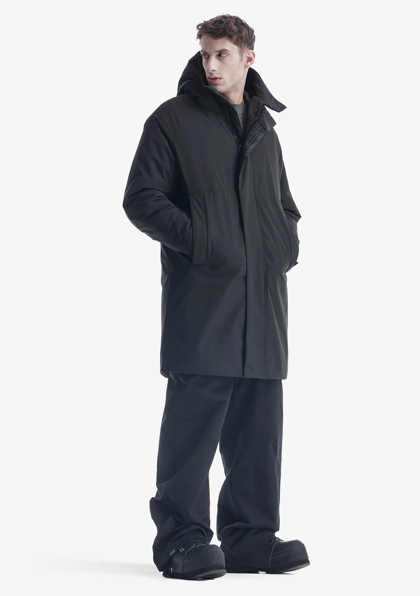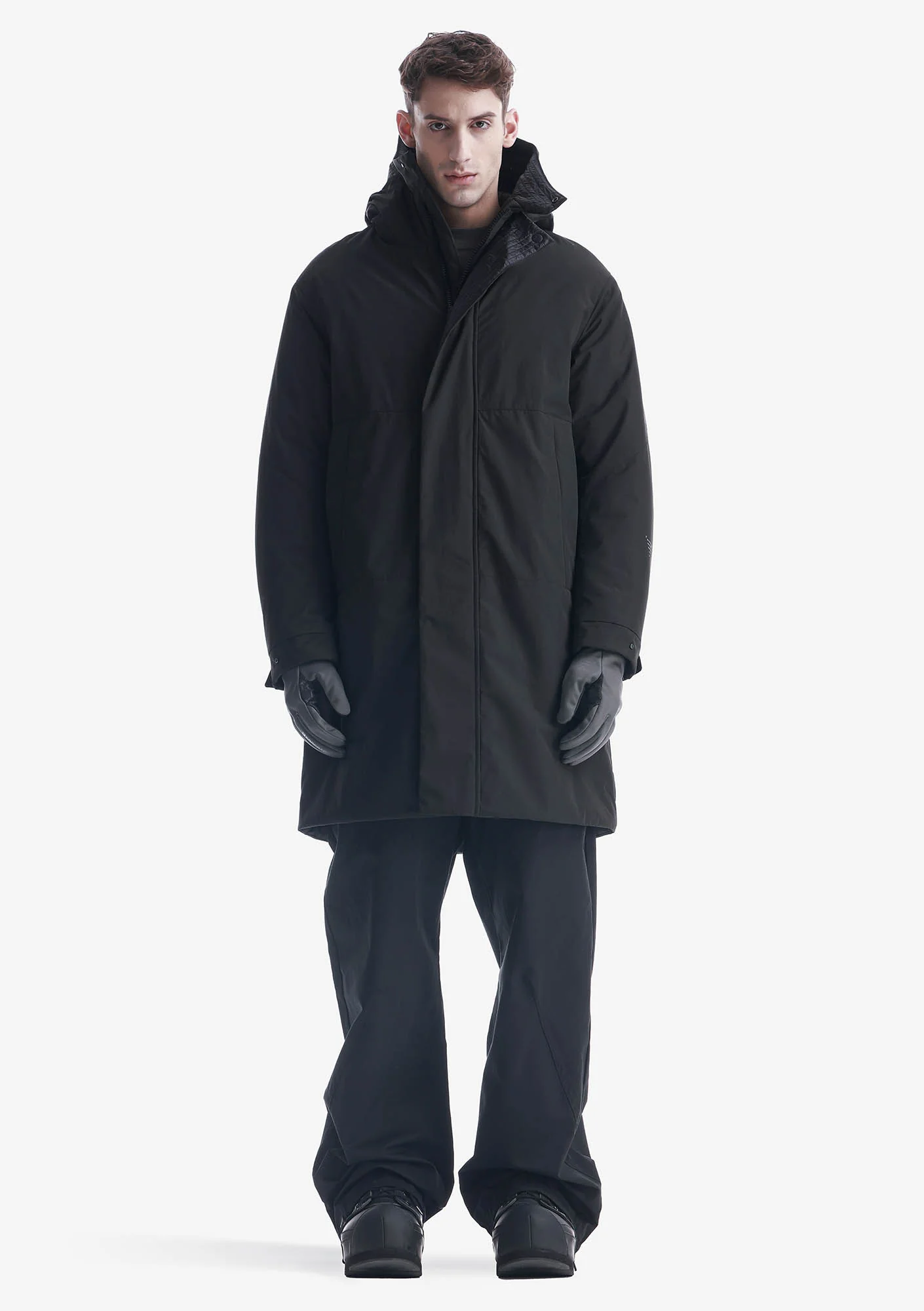 Удлинённая парка SCHORL из функциональной водостойкой ткани. Утеплитель из переработанного полиэстера сохраняет тепло без утяжеления. Капюшон с защитой лба, ветрозащитная планка на магнитах, затяжники на талии и по низу, удобные карманы и регулируемые манжеты — всё рассчитано на комфорт, тепло и точную посадку в движении.