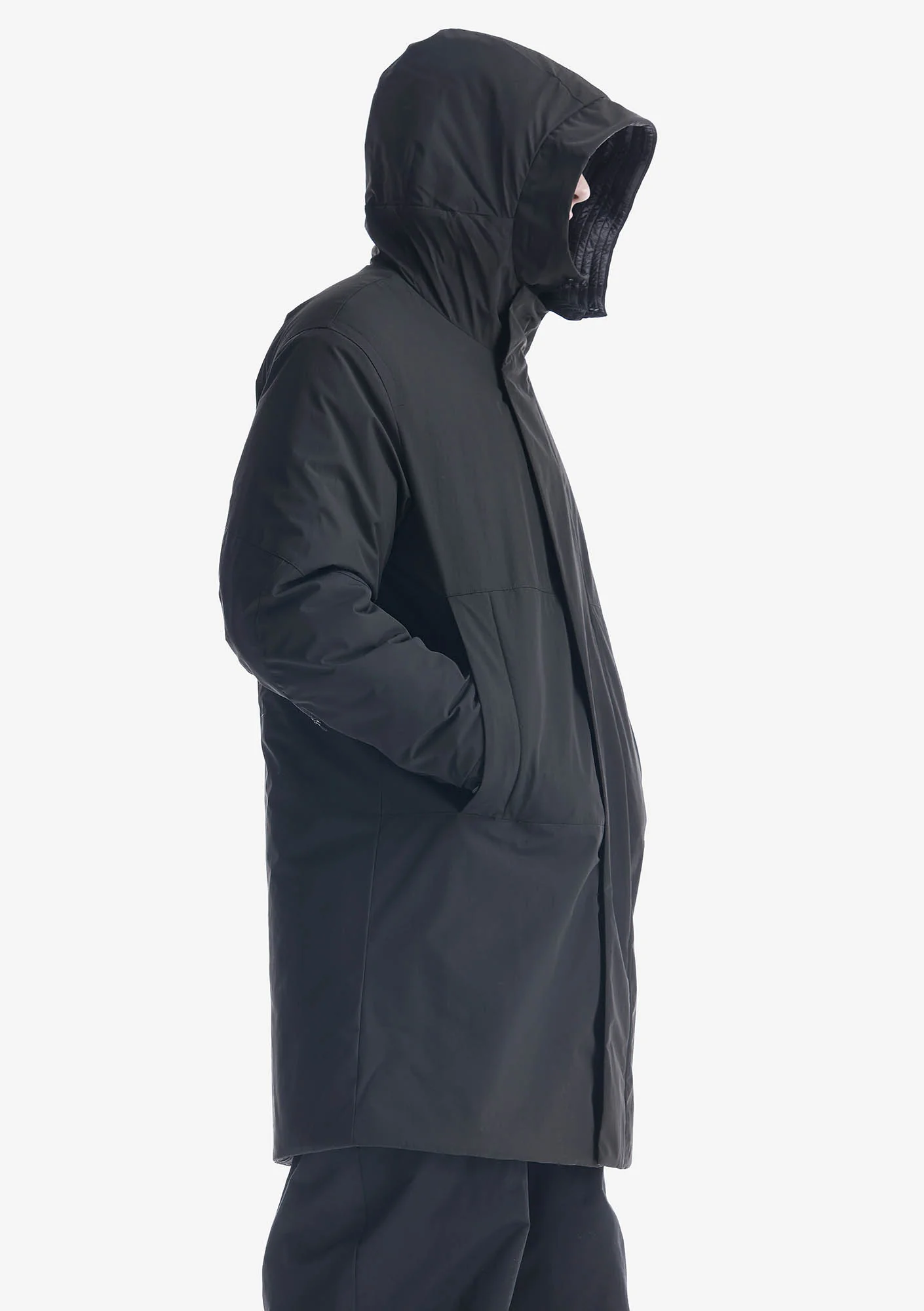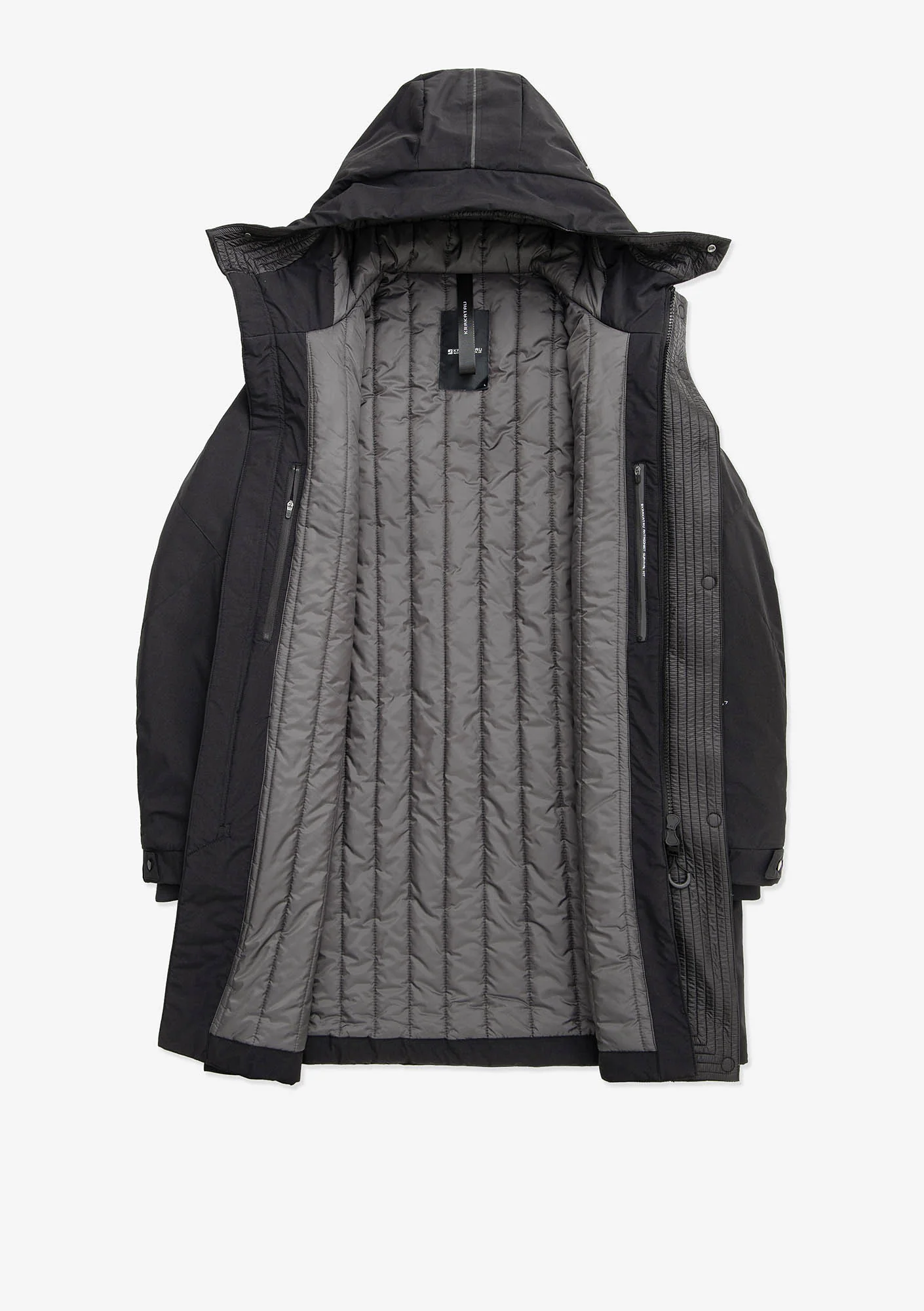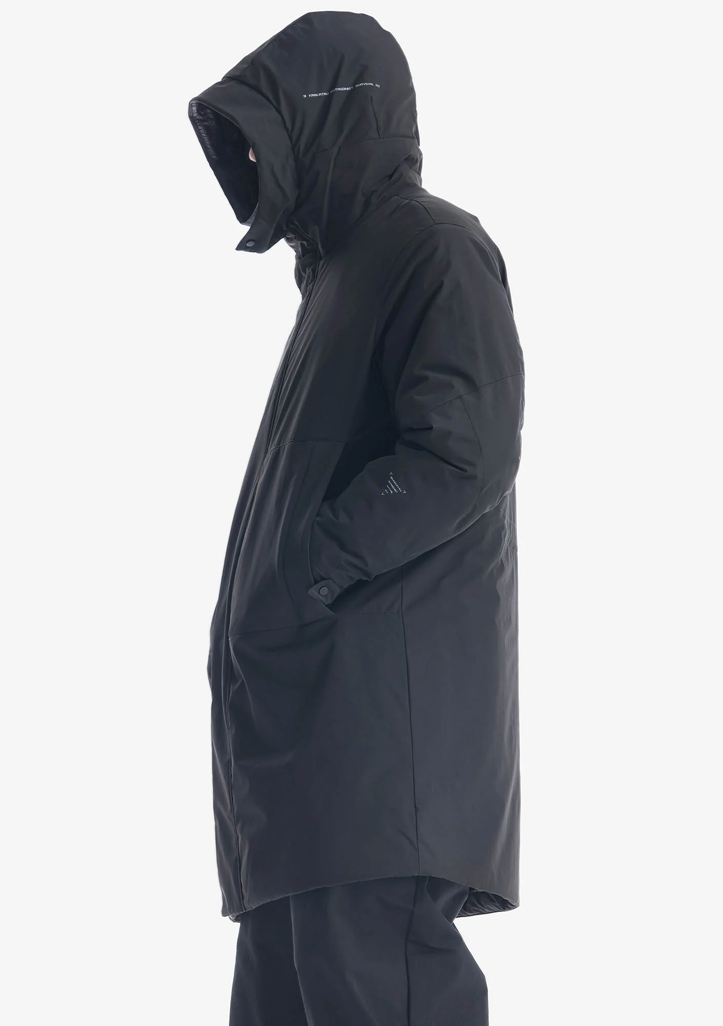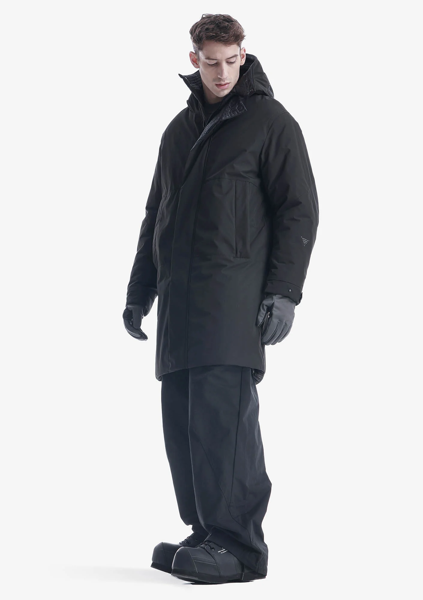 Удлинённая парка SCHORL из функциональной водостойкой ткани. Утеплитель из переработанного полиэстера сохраняет тепло без утяжеления. Капюшон с защитой лба, ветрозащитная планка на магнитах, затяжники на талии и по низу, удобные карманы и регулируемые манжеты — всё рассчитано на комфорт, тепло и точную посадку в движении.
