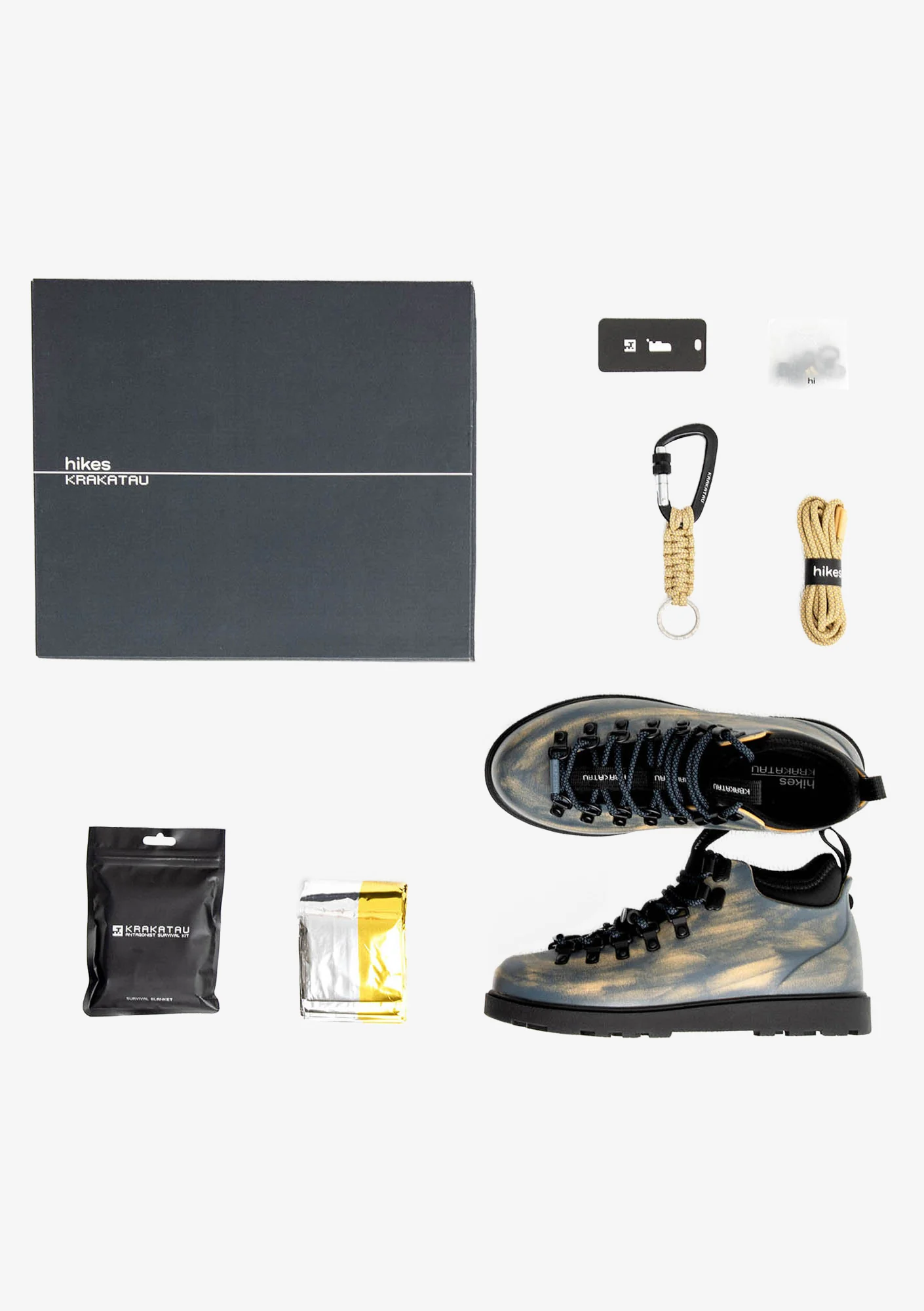 Ботинки JASPER — коллаборационная модель Hike x KRAKATAU. Сделаны из водостойкого материала с брашинг-эффектом и ручной затиркой. Каждая модель обладает уникальным визуальным рисунком с эффектом износа. В комплекте прилагаются спасательное одеяло, кубик и карабин.