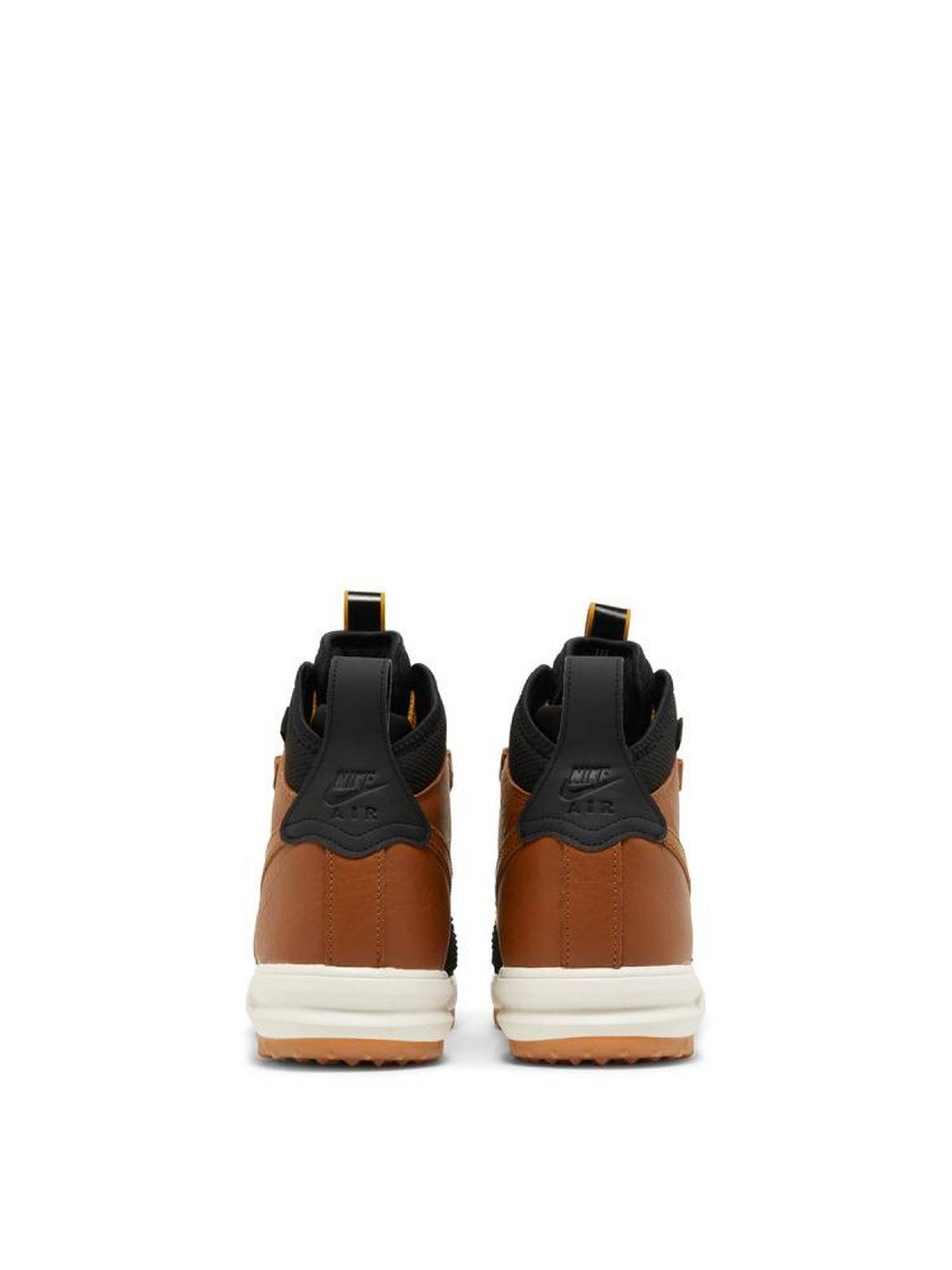 Ботинки Nike Lunar Force 1 Duckboot — новая версия оригинальных кроссовок AF1 в исполнении для холодной погоды. Когда на улице холоднее, чем на обратной стороне луны и идет дождь, ты все равно должен хорошо выглядеть. Кроссовки оснащены водоотталкивающей кожей премиум-класса и подкладкой WaterShield для борьбы с неблагоприятными условиями. Металлическая фурнитура и удлиненный язычок придают прочность этим кроссовкам в стиле горных ботинок, а дизайн носка с шипами в виде звезд придает образу остроты. Комфорт для долгих прогулок обеспечивается межподошвой Lunarlon и инкапсулированной пяткой с ситемой Air.