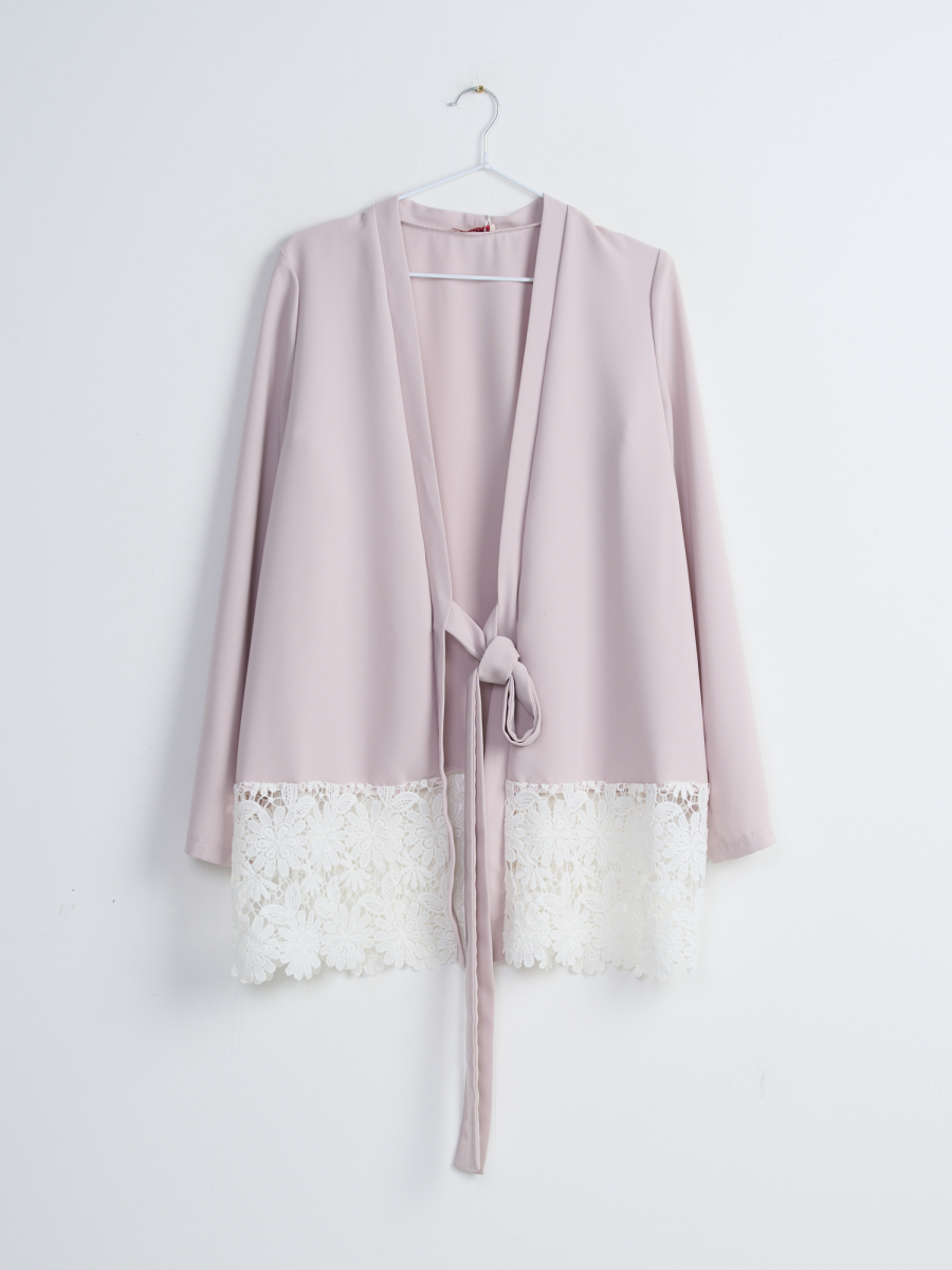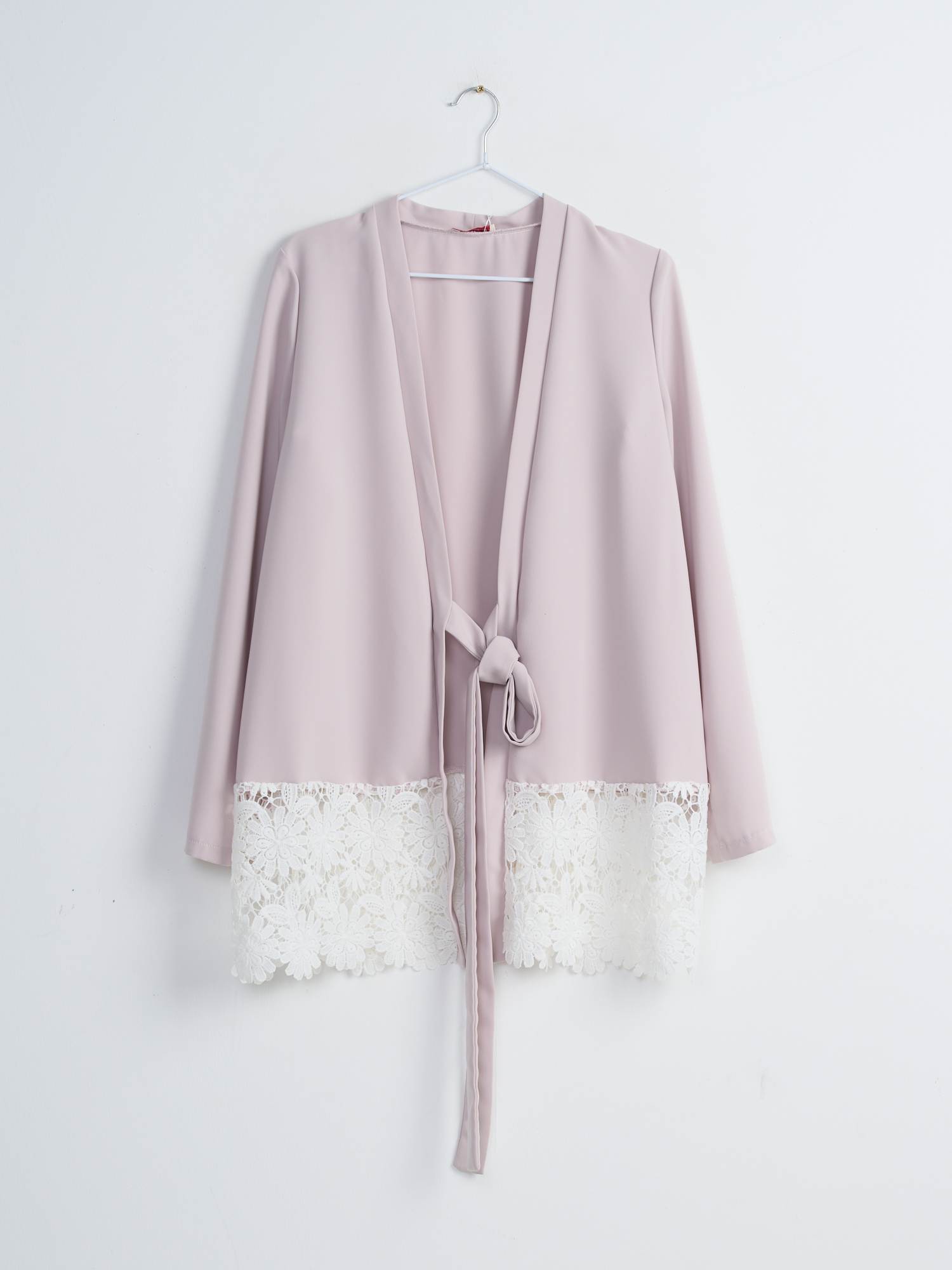 Элегантная накидка в пастельных тонах станет изысканным дополнением к вашему образу. Кружевная отделка по низу придаёт изделию утончённый и романтичный вид. Этот аксессуар идеально подойдёт для особых случаев, добавляя наряду нежность и изысканность.
