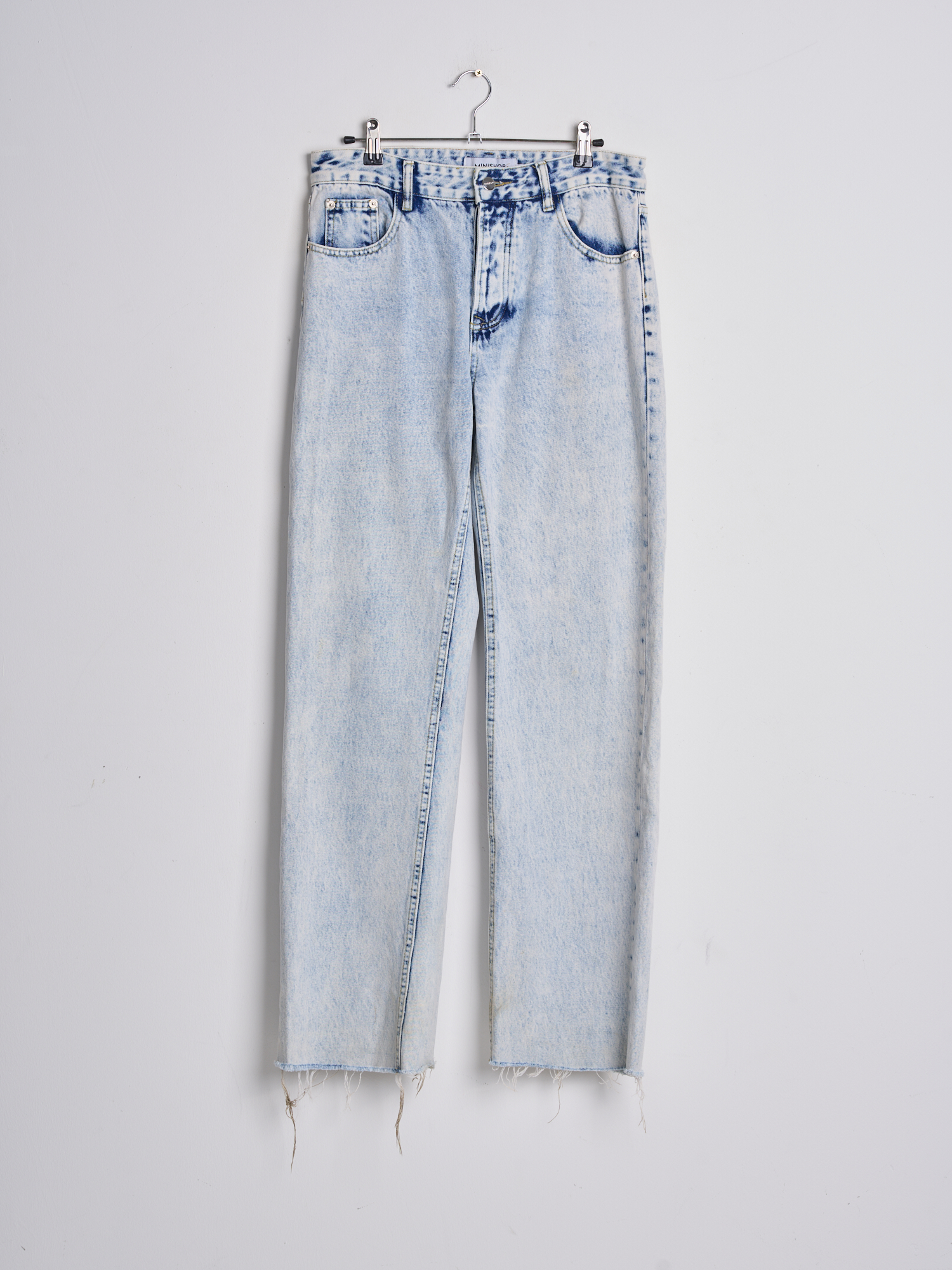 Голубые джинсы с необработанным краем — стильная и модная модель, которая станет основой для множества образов.