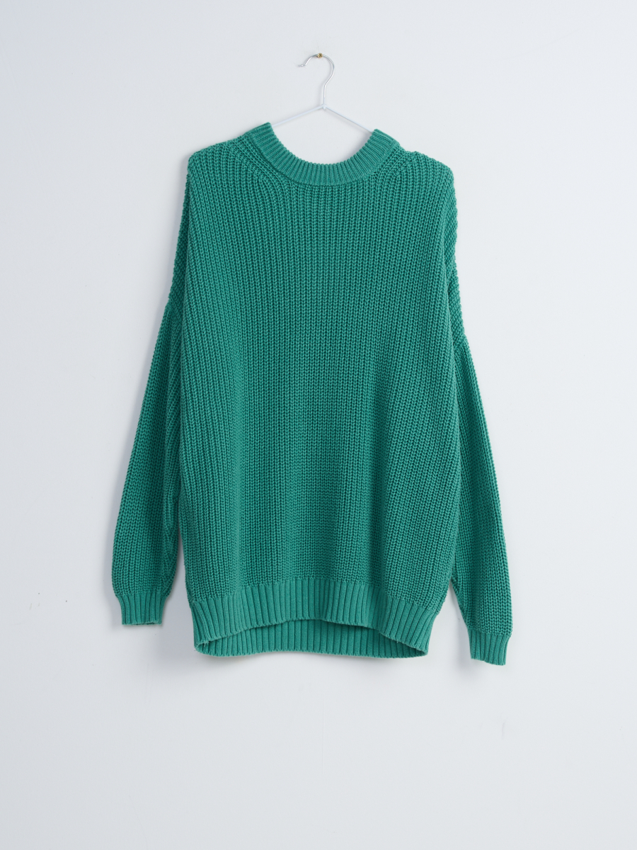 Уютный свитер крупной вязки в зелёном цвете — идеальный выбор для холодного времени года. Этот свитер обеспечит вам тепло и комфорт, а также станет стильным элементом вашего гардероба.