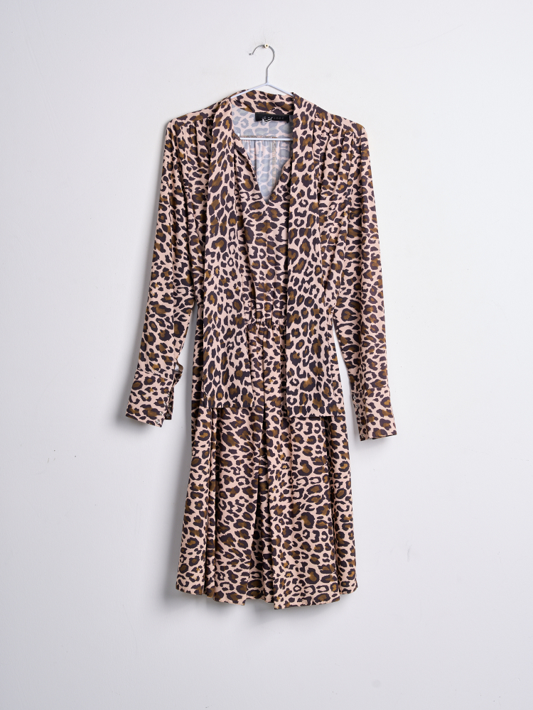 Элегантное леопардовое платье — идеальный выбор для ярких и уверенных в себе женщин. Платье выполнено из качественной ткани, которая подчёркивает фигуру и придаёт образу динамику.