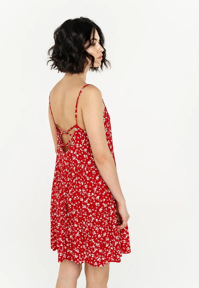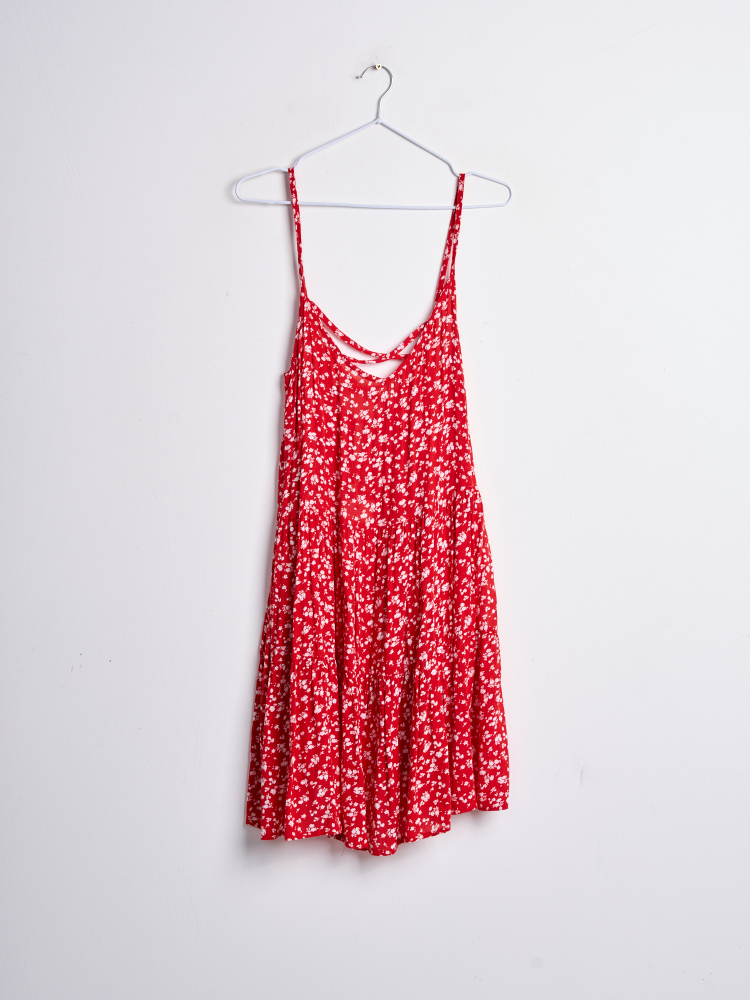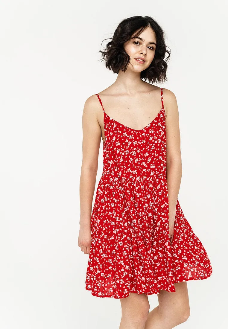 Женское платье-сарафан из легкой и дышащей ткани с цветочным принтом.