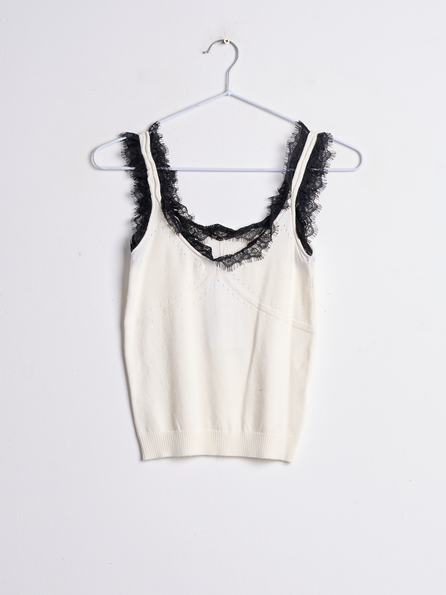Майка молочного цвета с кружевом — идеальный выбор для создания нежного и женственного образа. Кружевной декор придаёт изделию изысканность и романтичность. Майка комфортна в носке и отлично подходит для повседневной одежды.
