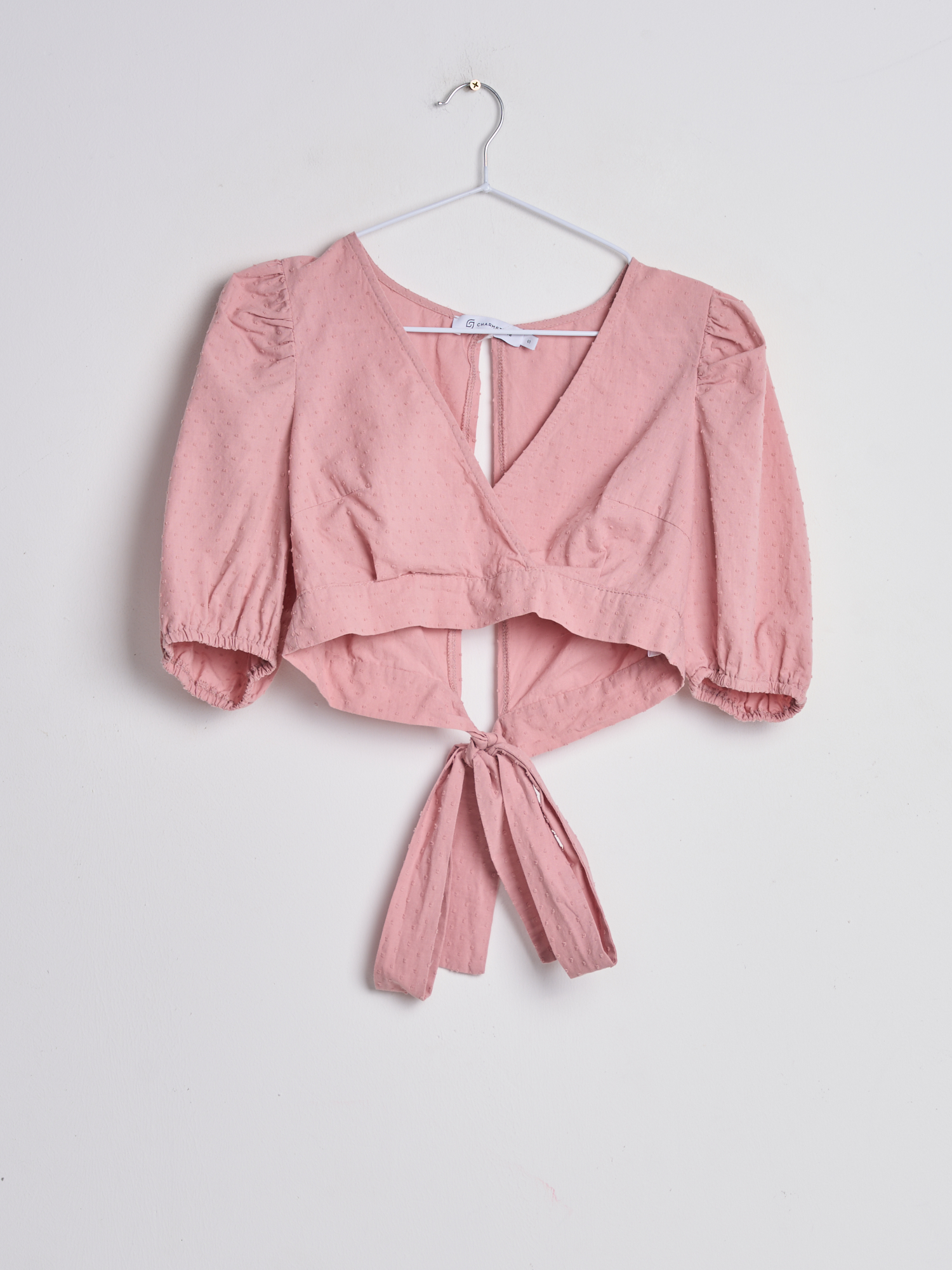Блуза в пудровом цвете — идеальный выбор для создания лёгкого и стильного образа. Укороченный крой и завязки придают модели особый шарм. Эта блуза станет отличным дополнением к вашему гардеробу и подойдёт для различных повседневных образов.