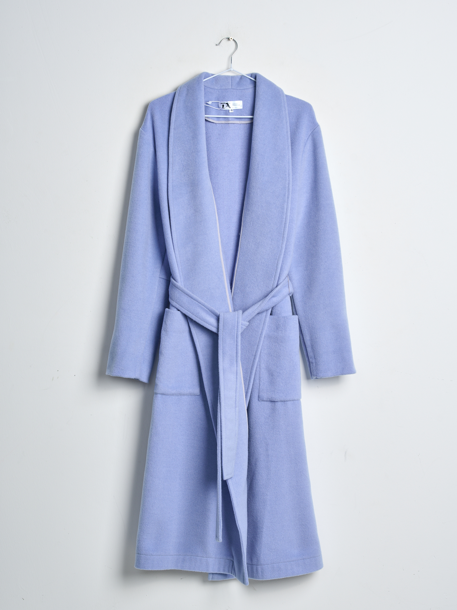 Лёгкий оттенок небесной глади, мягкий крой и утончённый силуэт создают образ, в котором чувствуешь себя одновременно уютно и элегантно. Пояс подчёркивает талию, добавляя женственности, а свободный запах — лёгкости и воздушности.