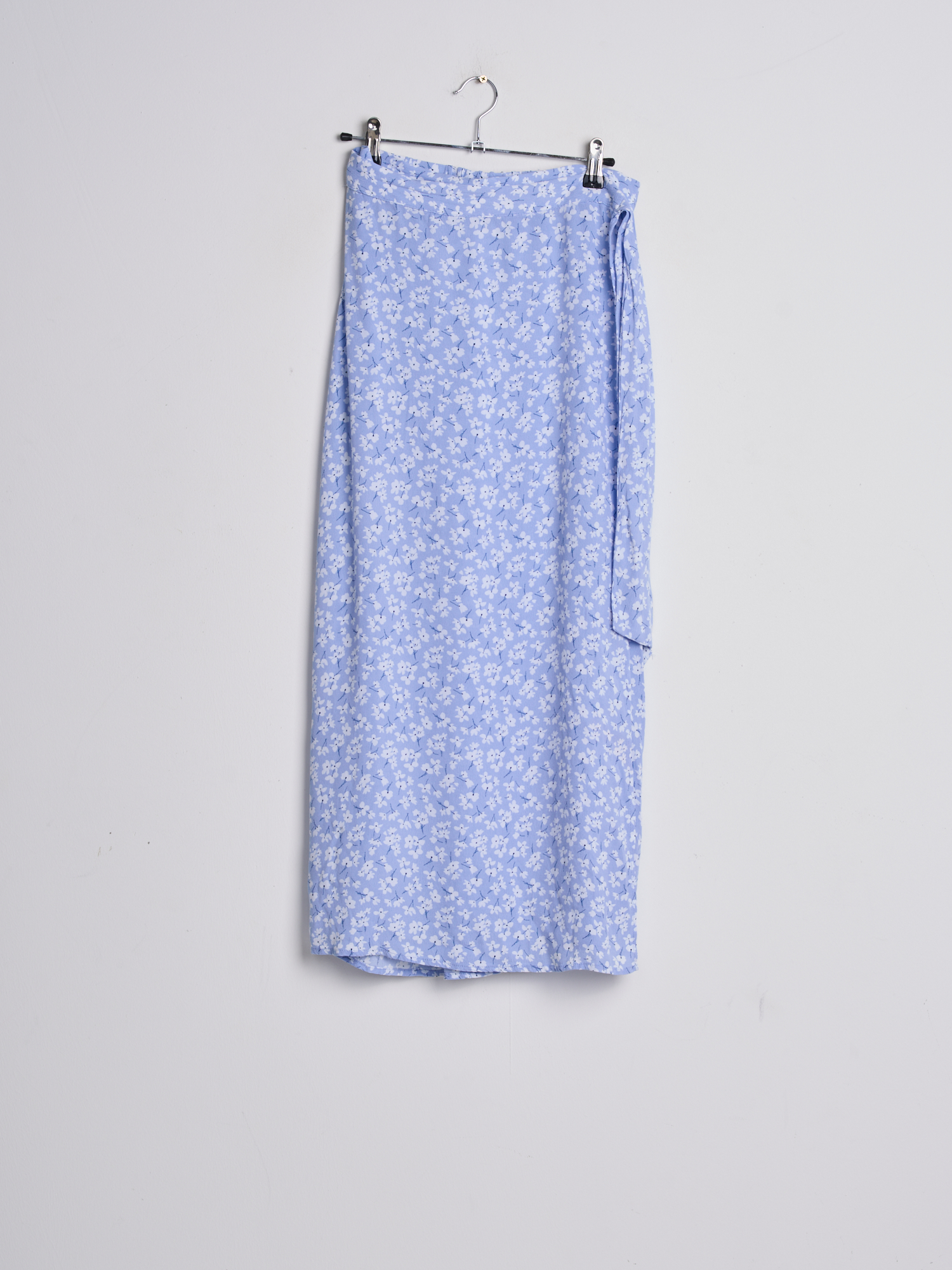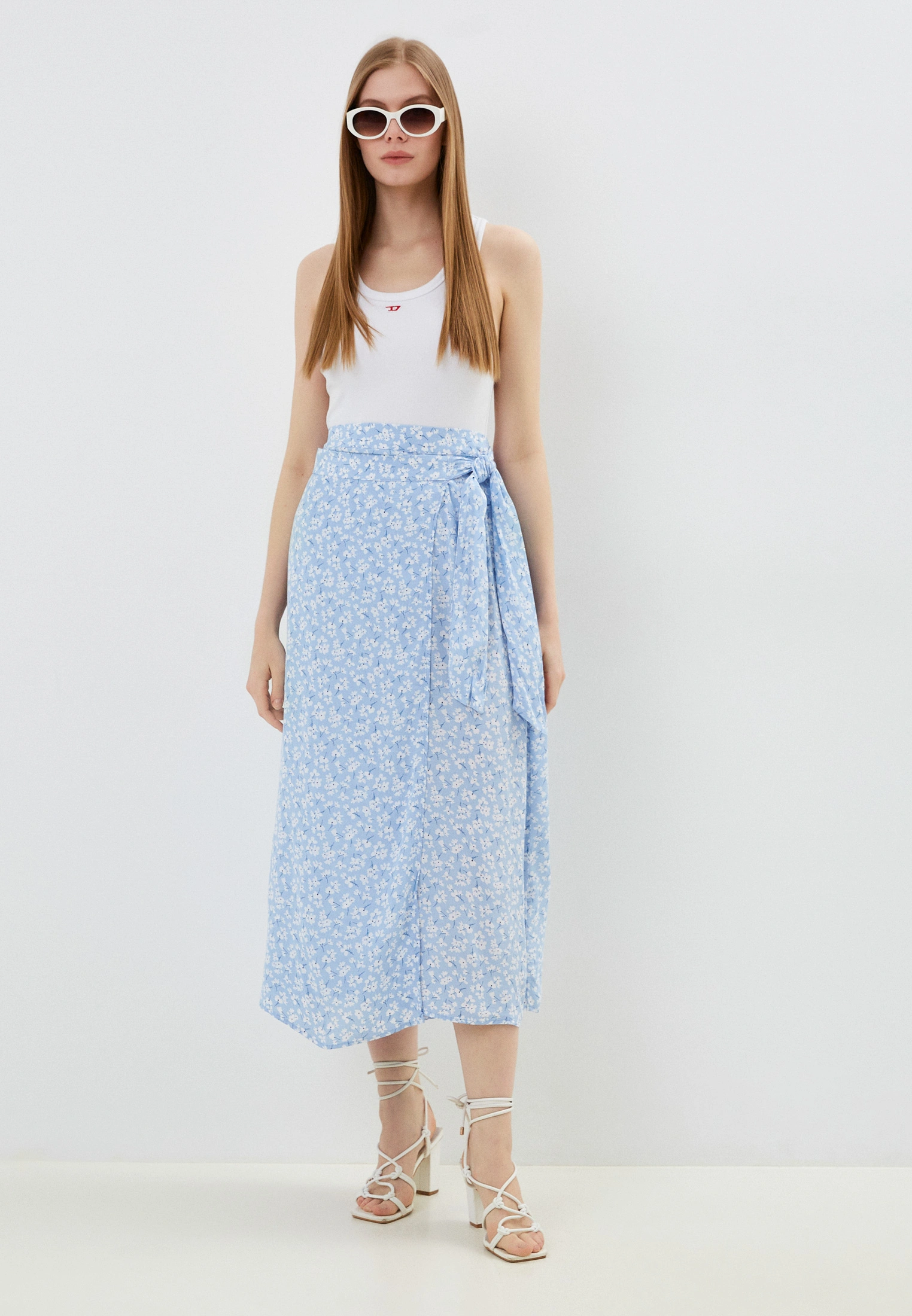 Элегантная юбка с цветочным принтом в нежных голубых тонах. Модель идеально подойдёт для создания лёгких и воздушных образов на каждый день или для особых случаев.