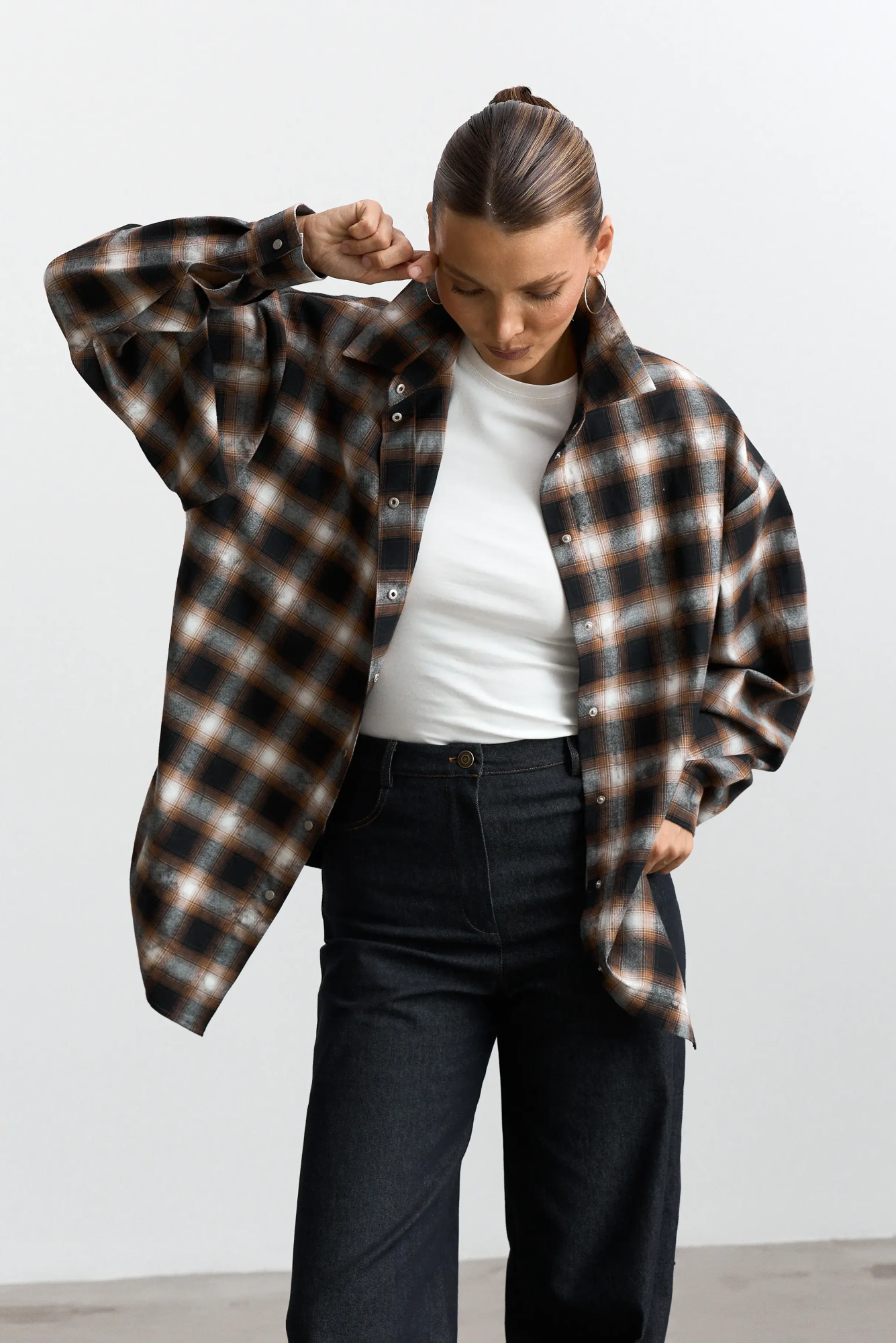 Рубашка в клетку оверсайз, 100% хлопок. Стильная и удобная рубашка свободного кроя. Натуральная ткань — дышит, мягкая и приятная к телу. Универсальный вариант для повседневных образов: можно носить как верхний слой, с джинсами, шортами или платьем. Подходит на разные размеры