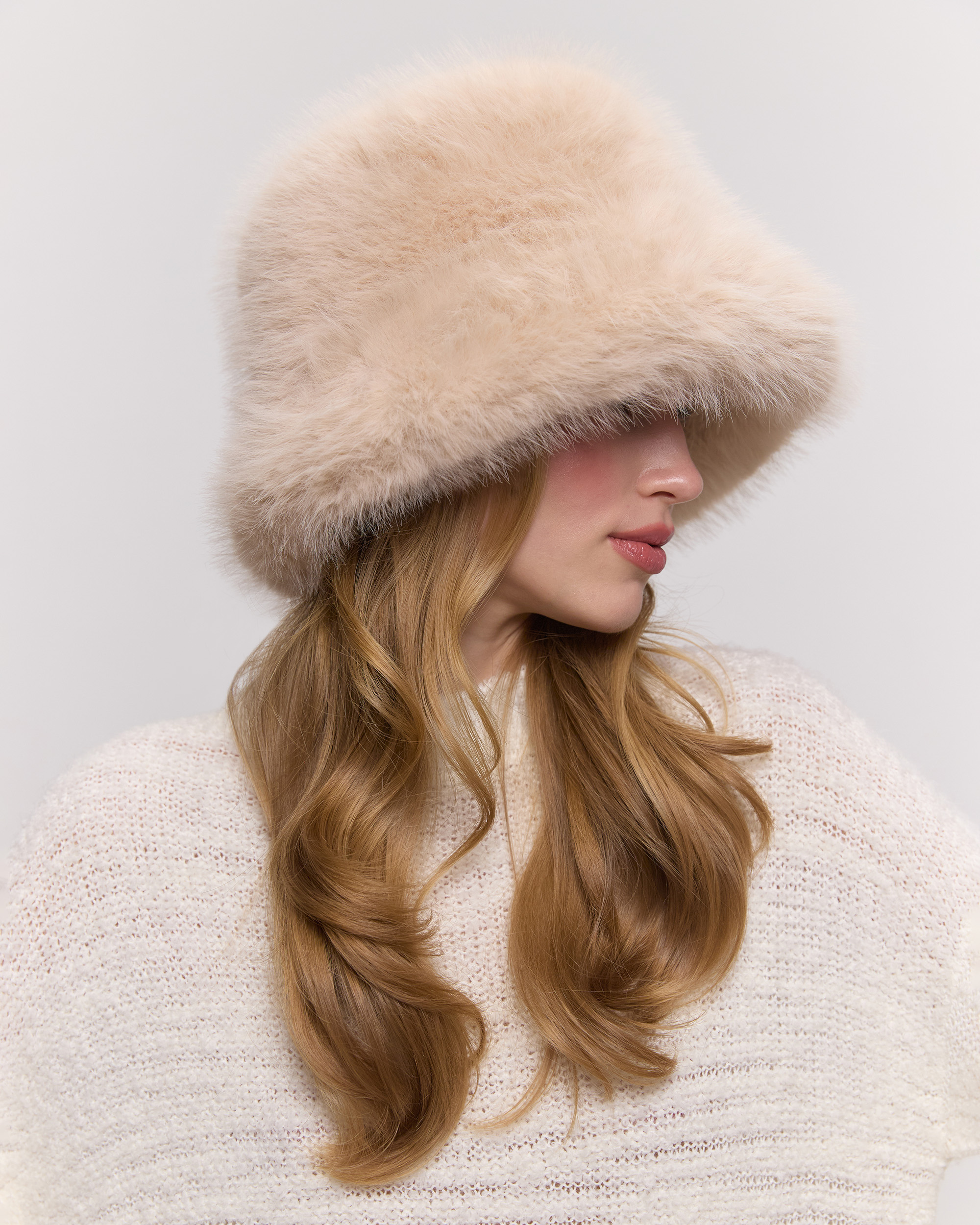 Пушистая панама из экомеха идеальна для акцентных образов: носите как в комплекте с аналогичной шубой, так и с одеждой из других фактур. Теплый и уютный аксессуар полностью закрывает голову, поэтому точно не даст замерзнуть зимой.