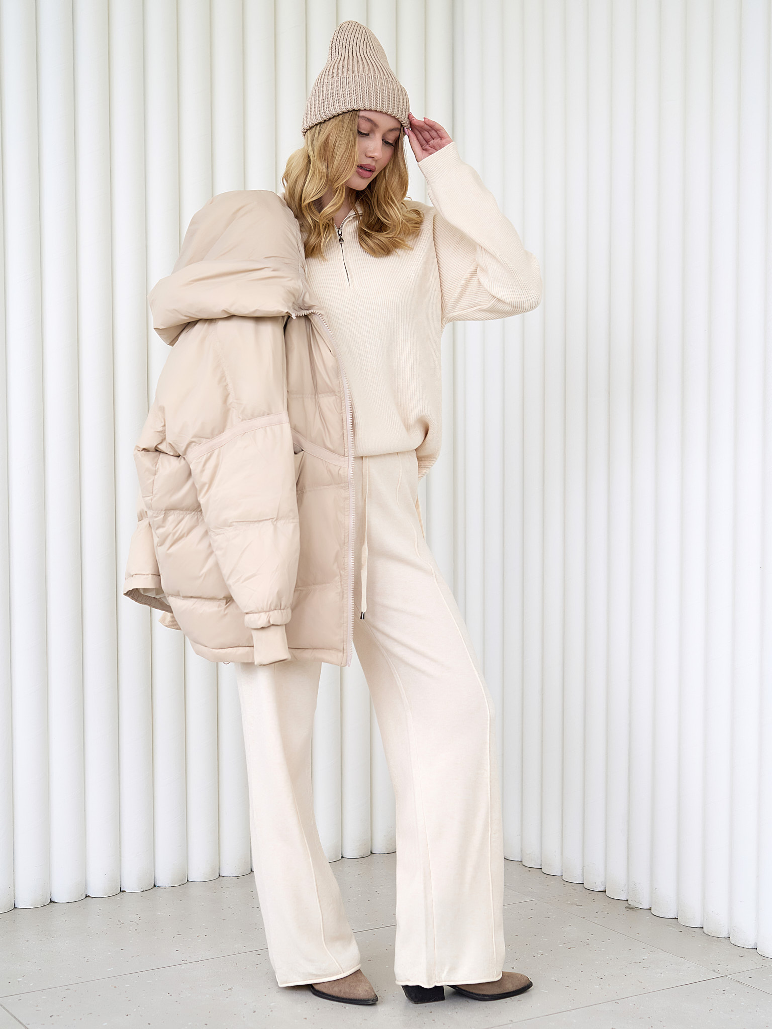 Тёплая шапка крупной вязки с отворотом — идеальный выбор для холодной погоды. Она обеспечит комфорт и защиту от ветра. Универсальный дизайн позволяет сочетать шапку с разными стилями одежды.