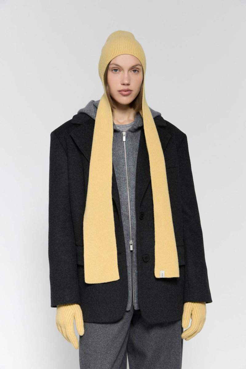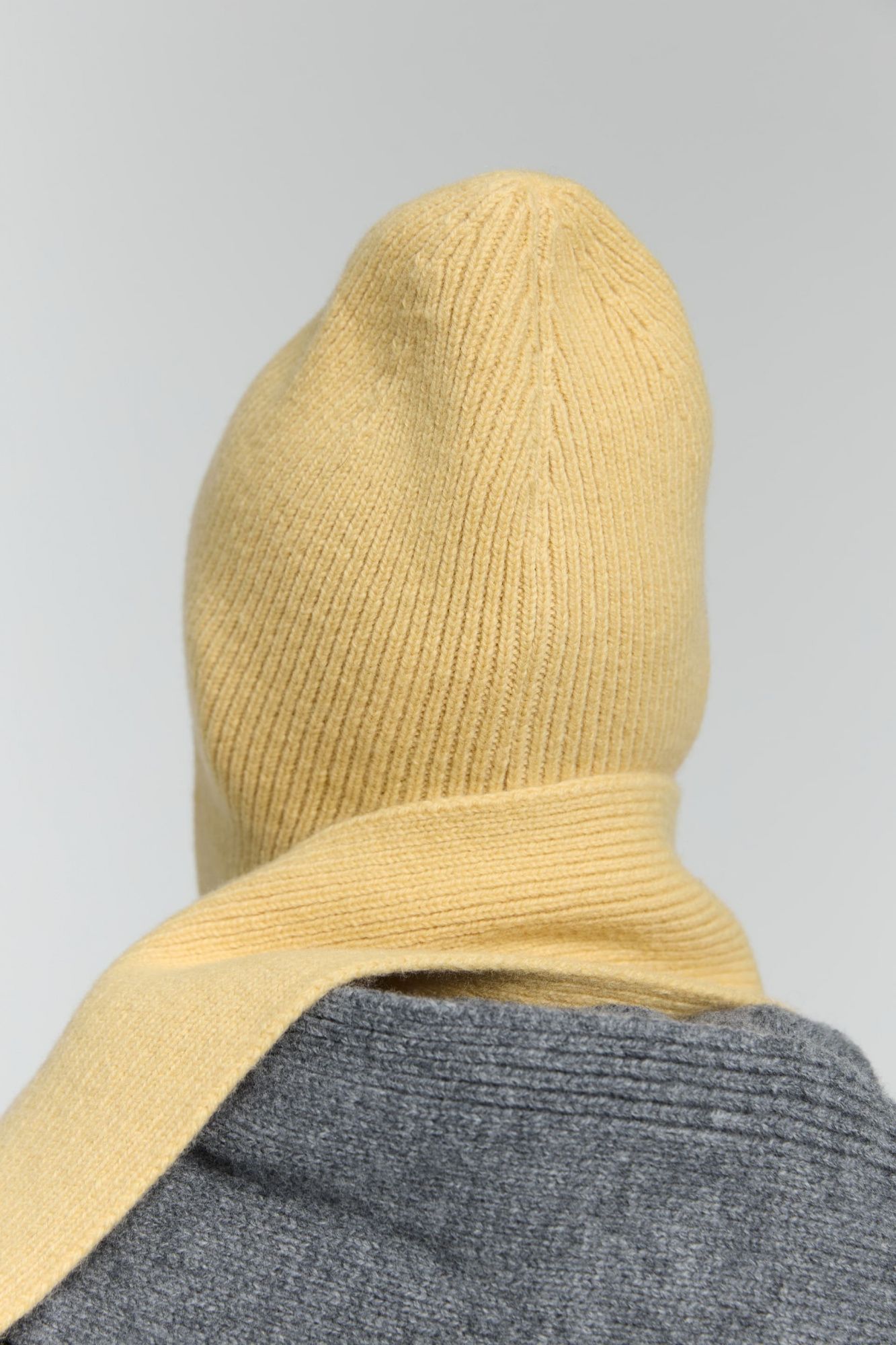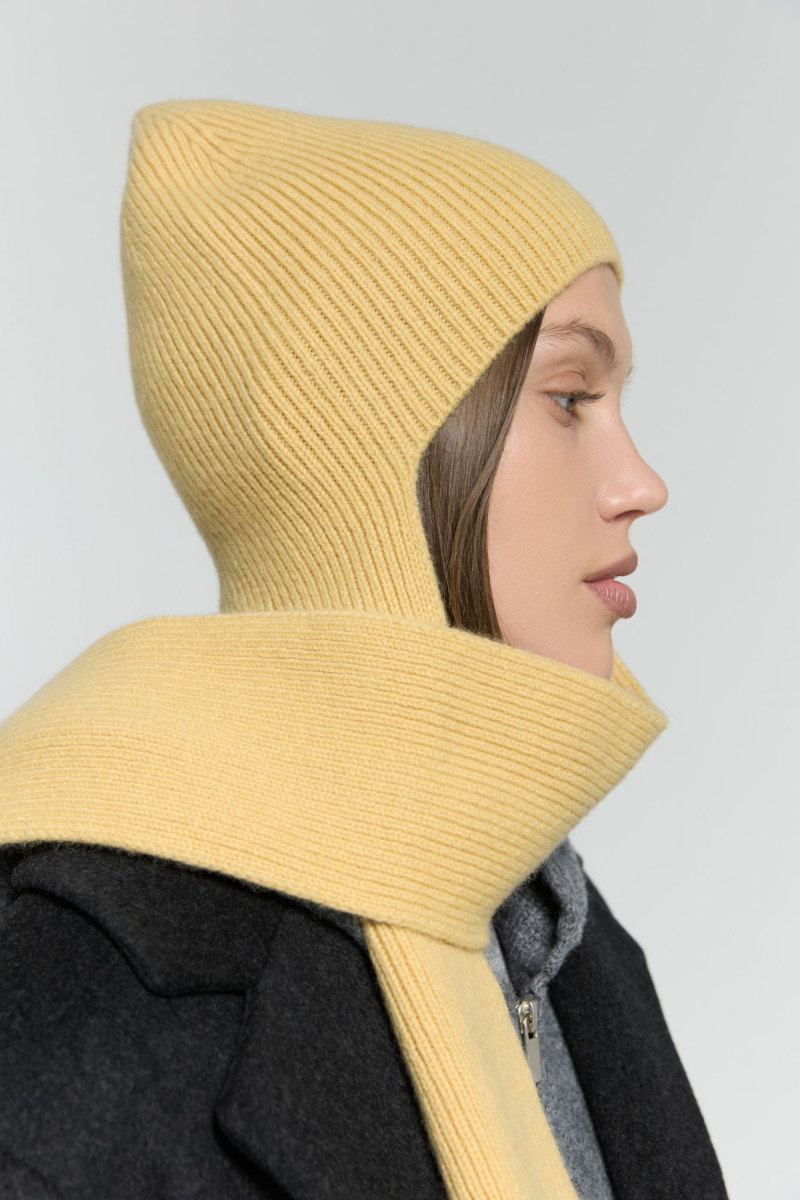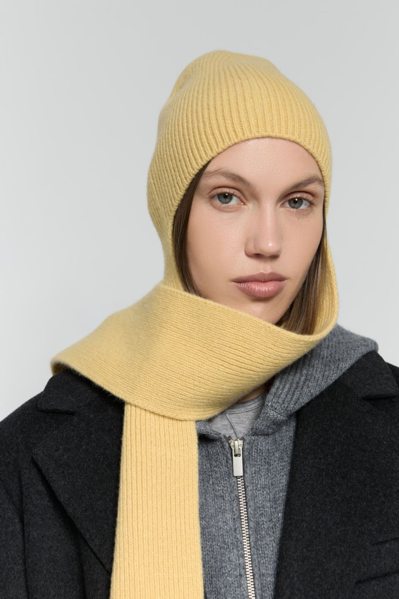 Шапка-шарф связана из 100% шерсти мериноса, сделанной в Италии.