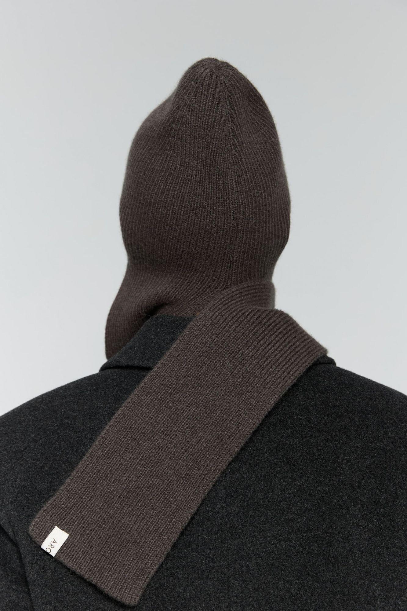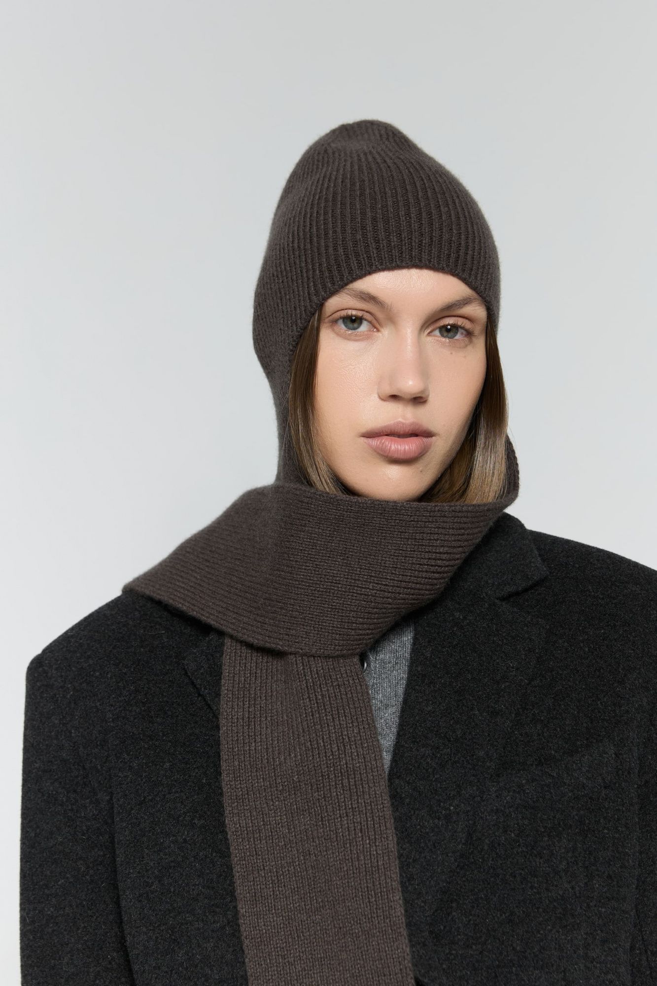 Шапка-шарф связана из 100% шерсти мериноса, сделанной в Италии.