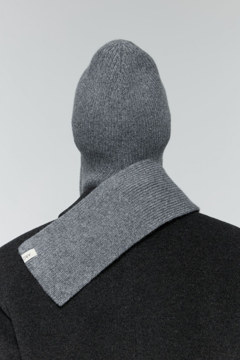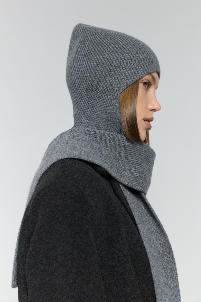 Шапка-шарф связана из 100% шерсти мериноса, сделанной в Италии.