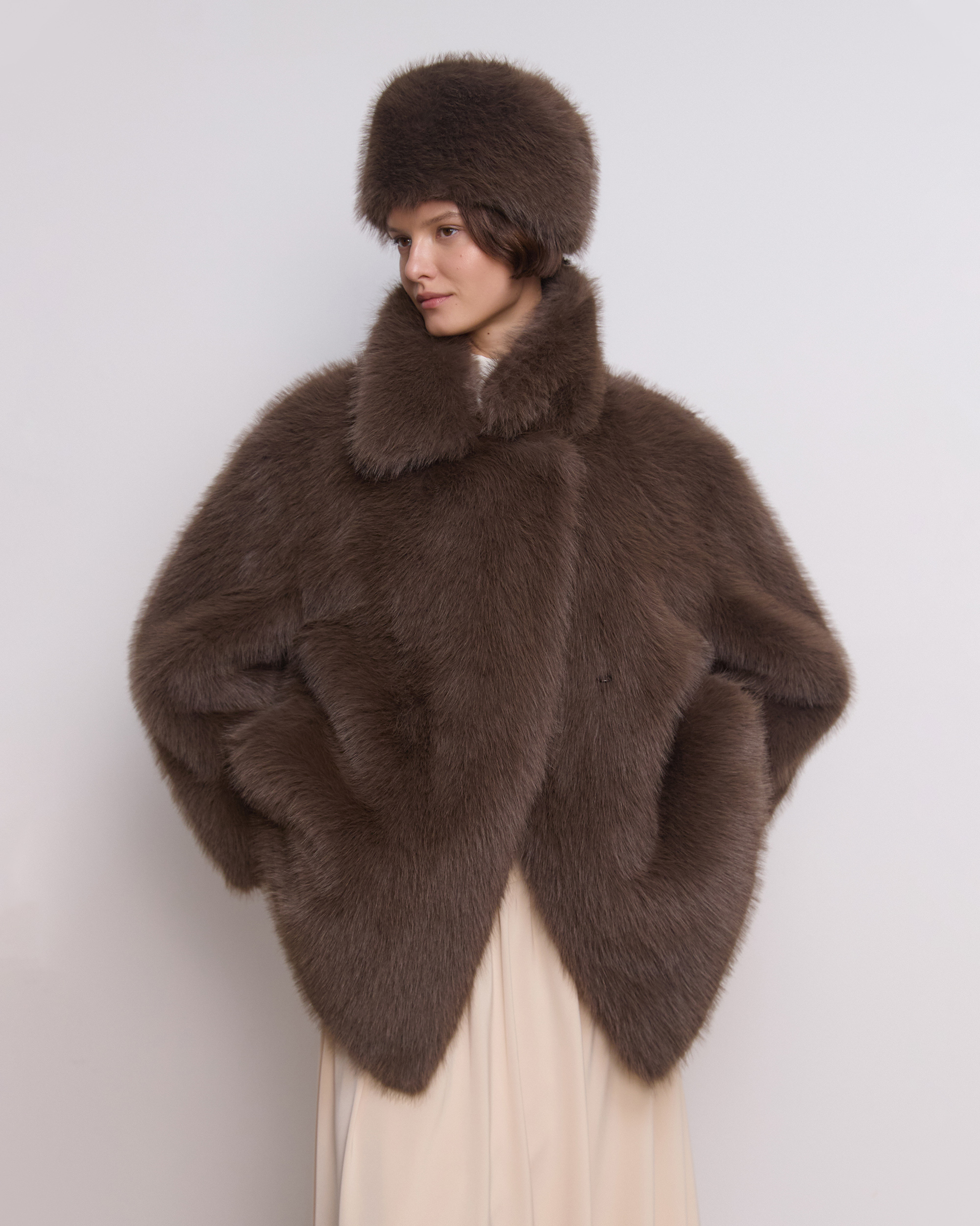 Головной убор известный с давних времен в современном прочтении. Строгие и выверенные пропорции гармонично сочетаются с пушистой фактурой экомеха. Аксессуар хорошо смотрится с графичными пальто и экошубами из такого же экомеха и добавляют харизматичности образам.
