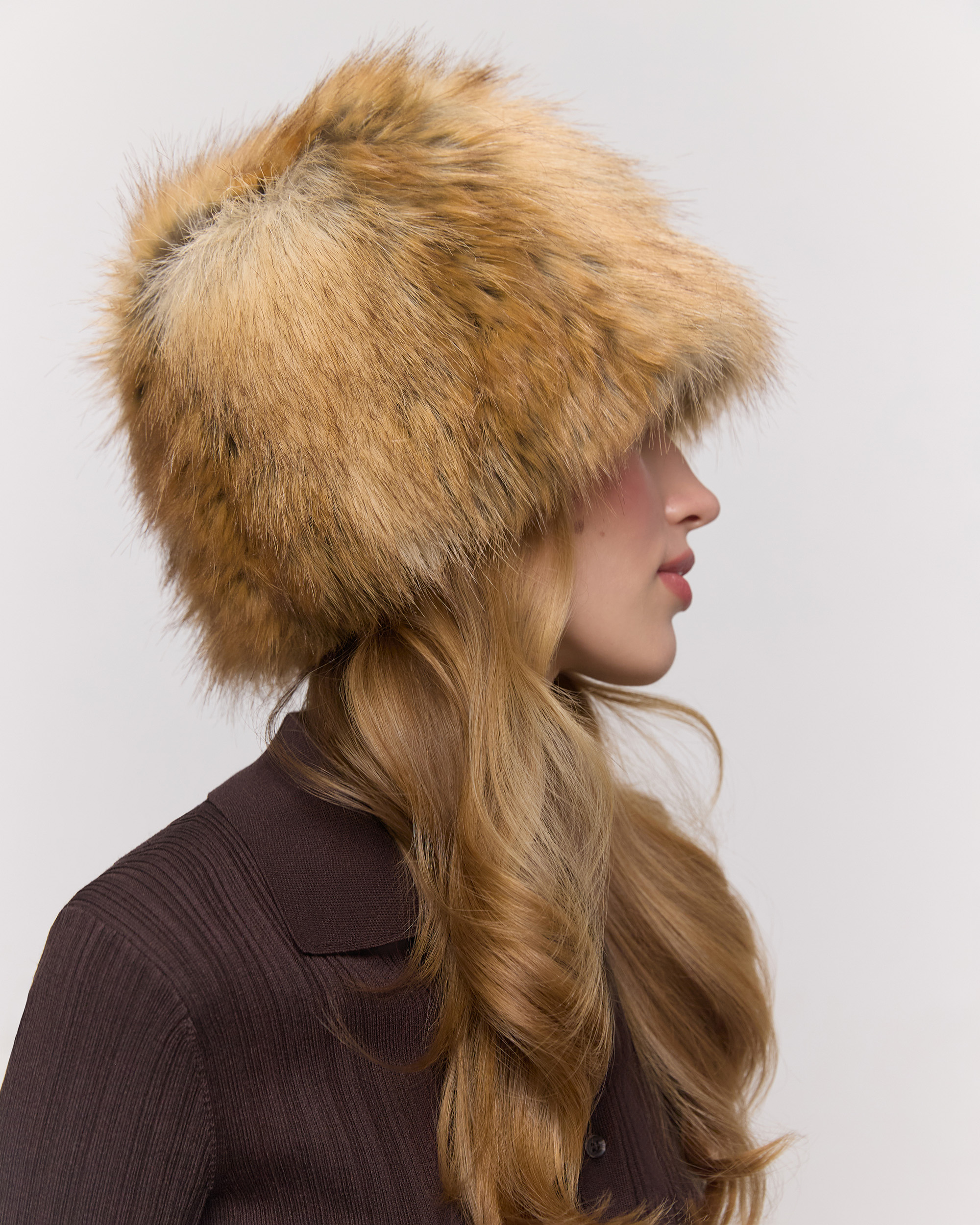 Шапка из экомеха под лису