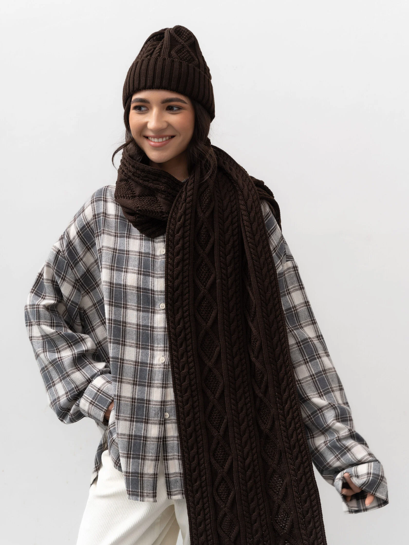 Уютная коричневая шапка с шерстью в составе – мягкая, теплая и идеально подходящая для зимы. Лаконичный фасон и объемная фактура легко вписываются как в минималистичные, так и в более романтичные образы. Универсальный аксессуар, который завершает зимний наряд и придает ему уют.