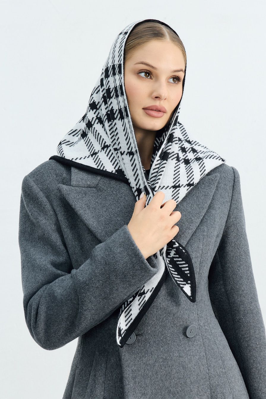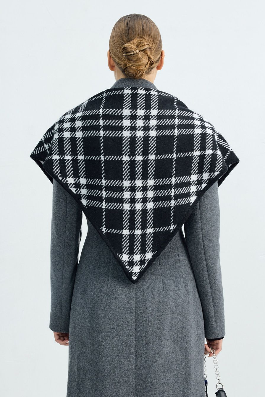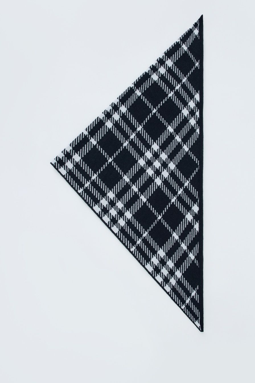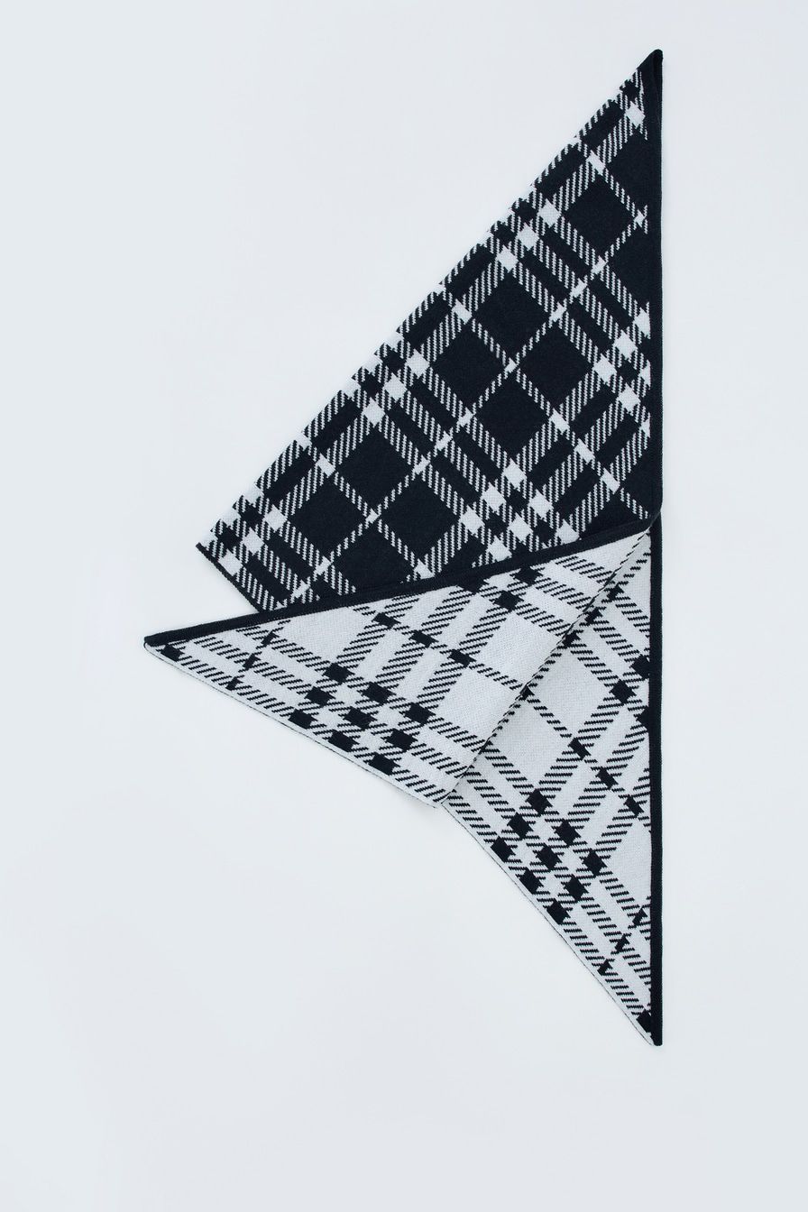 Вязаная косынка из смесовой шерсти мериноса – модель в черно-белой гамме с клетчатым принтом.