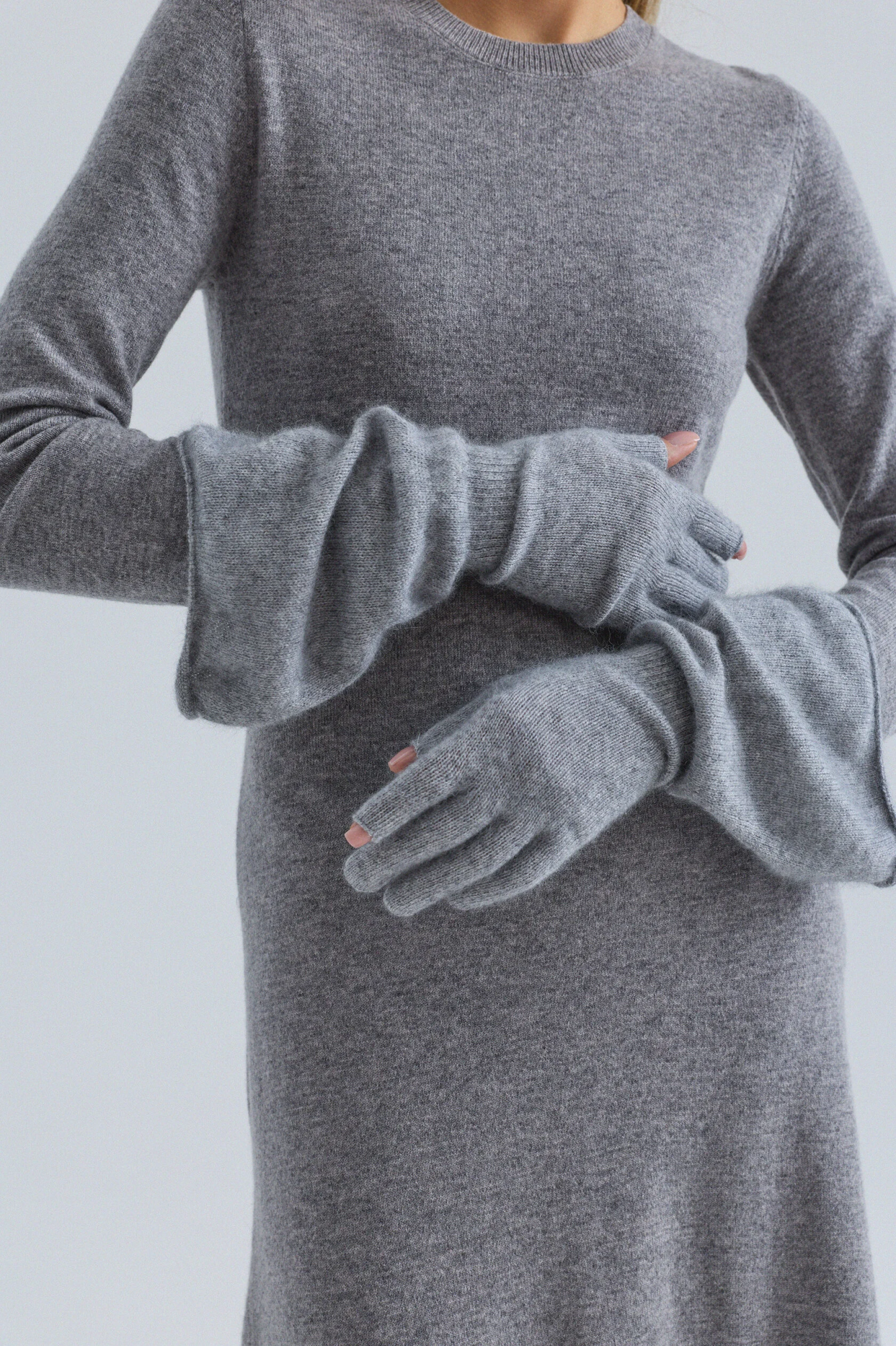 Новая версия длинных перчаток Mankova из теплой шерсти енота. На указательных и больших пальцах — нет кончика, чтобы было удобно пользоваться телефоном на улице. Модель закрывает руку почти до локтя. Перчатки можно носить в расправленном виде поверх верхней одежды. Для сложных стилизаций завязывайте на запястье узел, длина изделия позволяет.