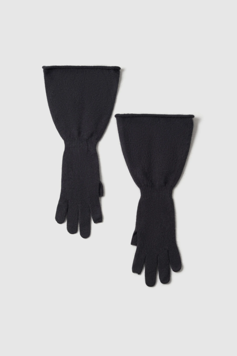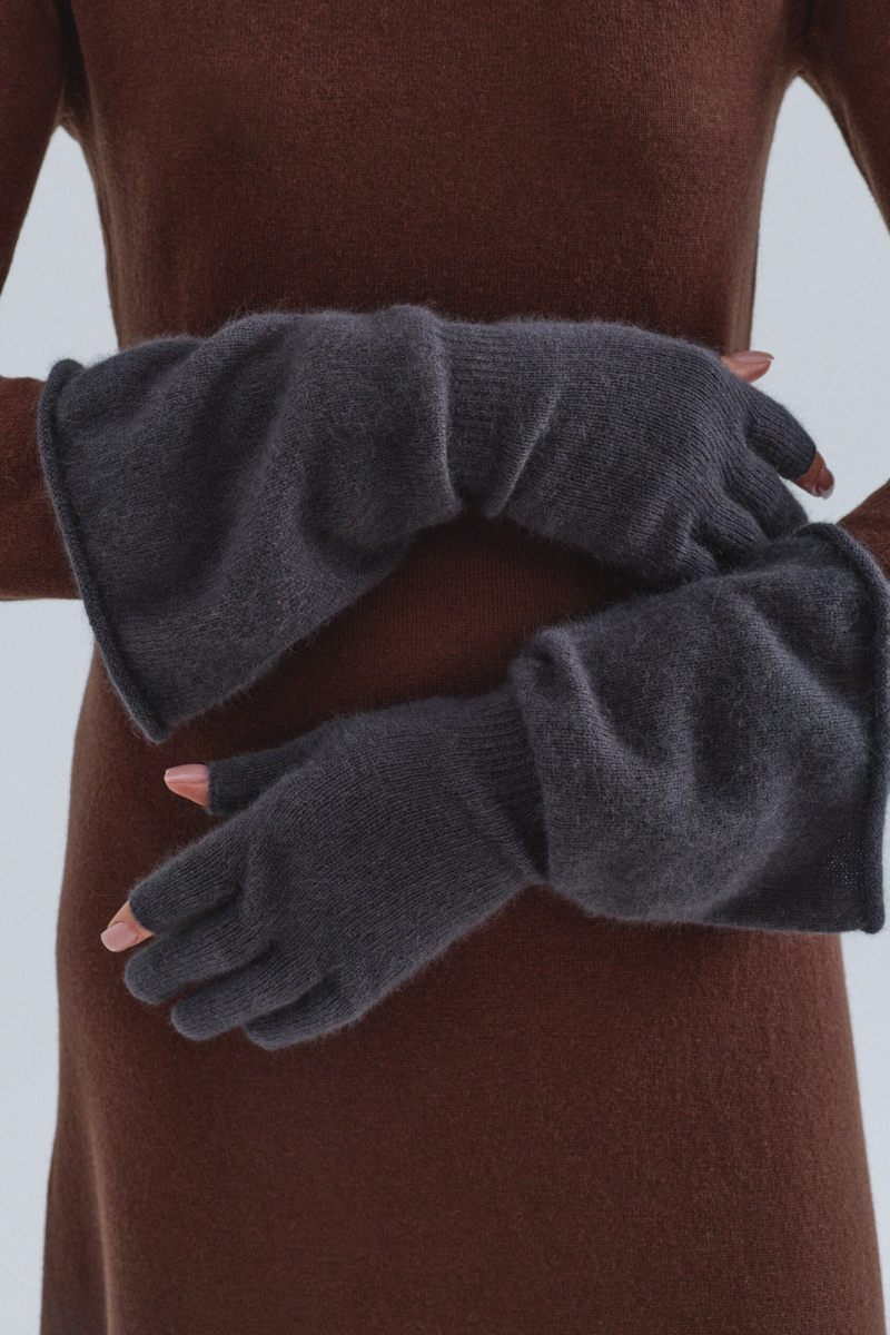 Новая версия длинных перчаток Mankova из теплой шерсти енота. На указательных и больших пальцах — нет кончика, чтобы было удобно пользоваться телефоном на улице. Модель закрывает руку почти до локтя. Перчатки можно носить в расправленном виде поверх верхней одежды. Для сложных стилизаций завязывайте на запястье узел, длина изделия позволяет.