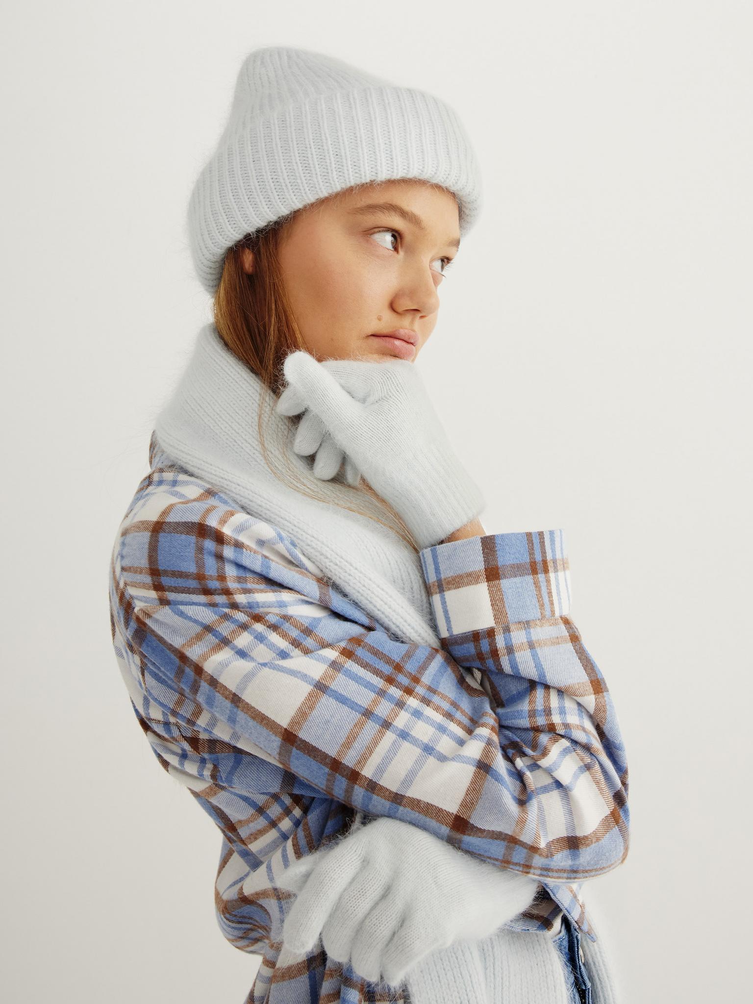 Перчатки из ангоры светло-голубого цвета — это уютный и стильный аксессуар, который согреет ваши руки в прохладную погоду. Мягкий и пушистый материал обеспечивает комфорт при носке, а нежный оттенок добавит образу лёгкости и свежести.