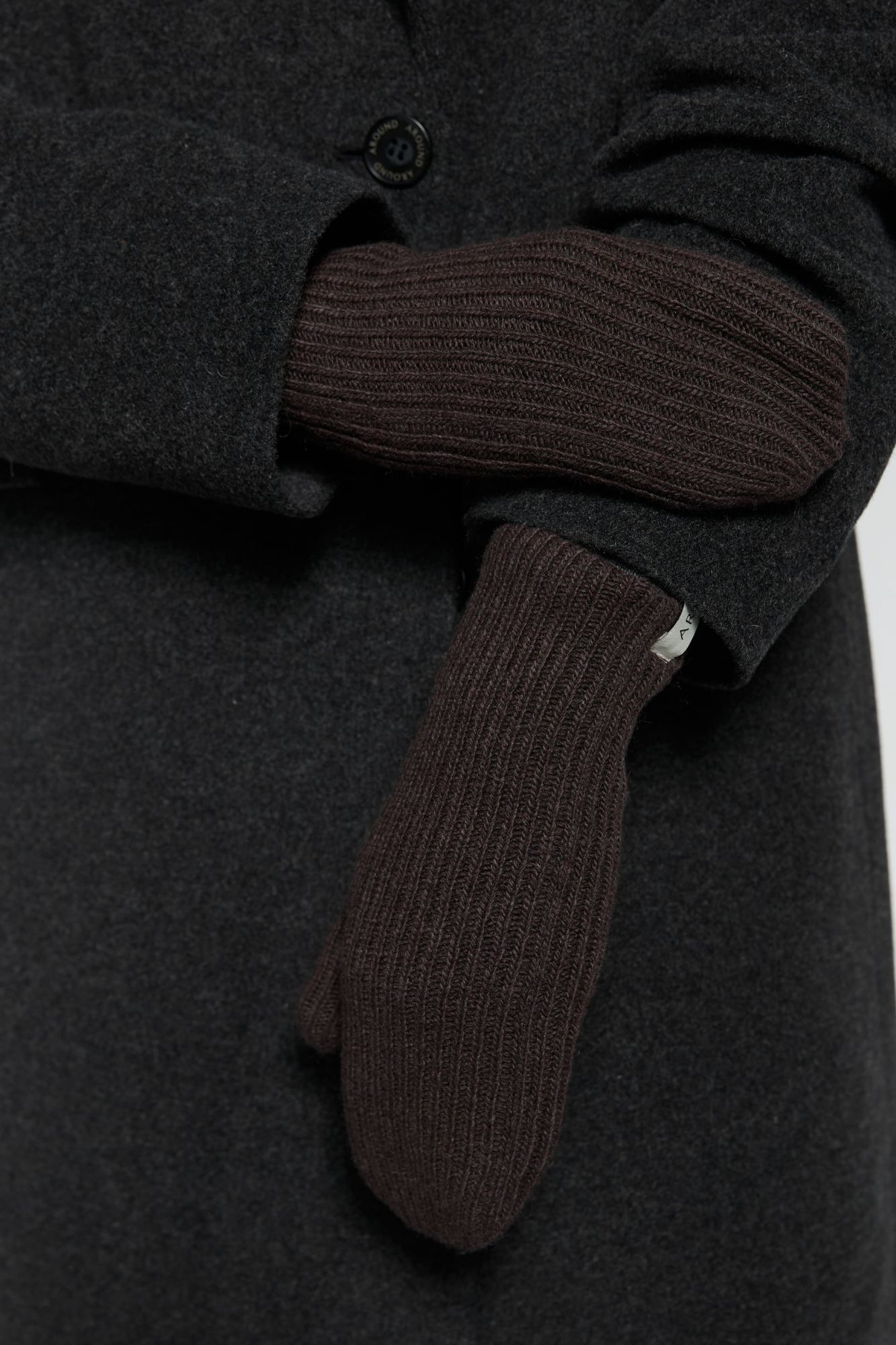 Двухслойные варежки в мелкий рубчик связаны из микса кашемира, шерсти мериноса и вискозы; нежной и комфортной к коже пряжи, сделанной в Италии.