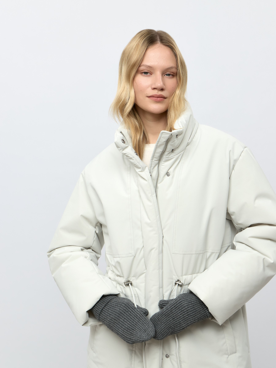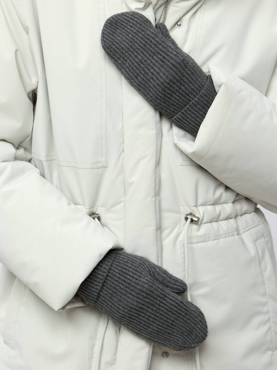 Минималистичные варежки из мягкой и прочной пряжи с добавлением шерсти. Выполнены гладким однослойным плетением в среднем объеме и анатомическом крое для свободы движений. Двойные удлиненные манжеты связаны резинкой и закрывают запястья, что удобно, если у куртки укорочены рукава.