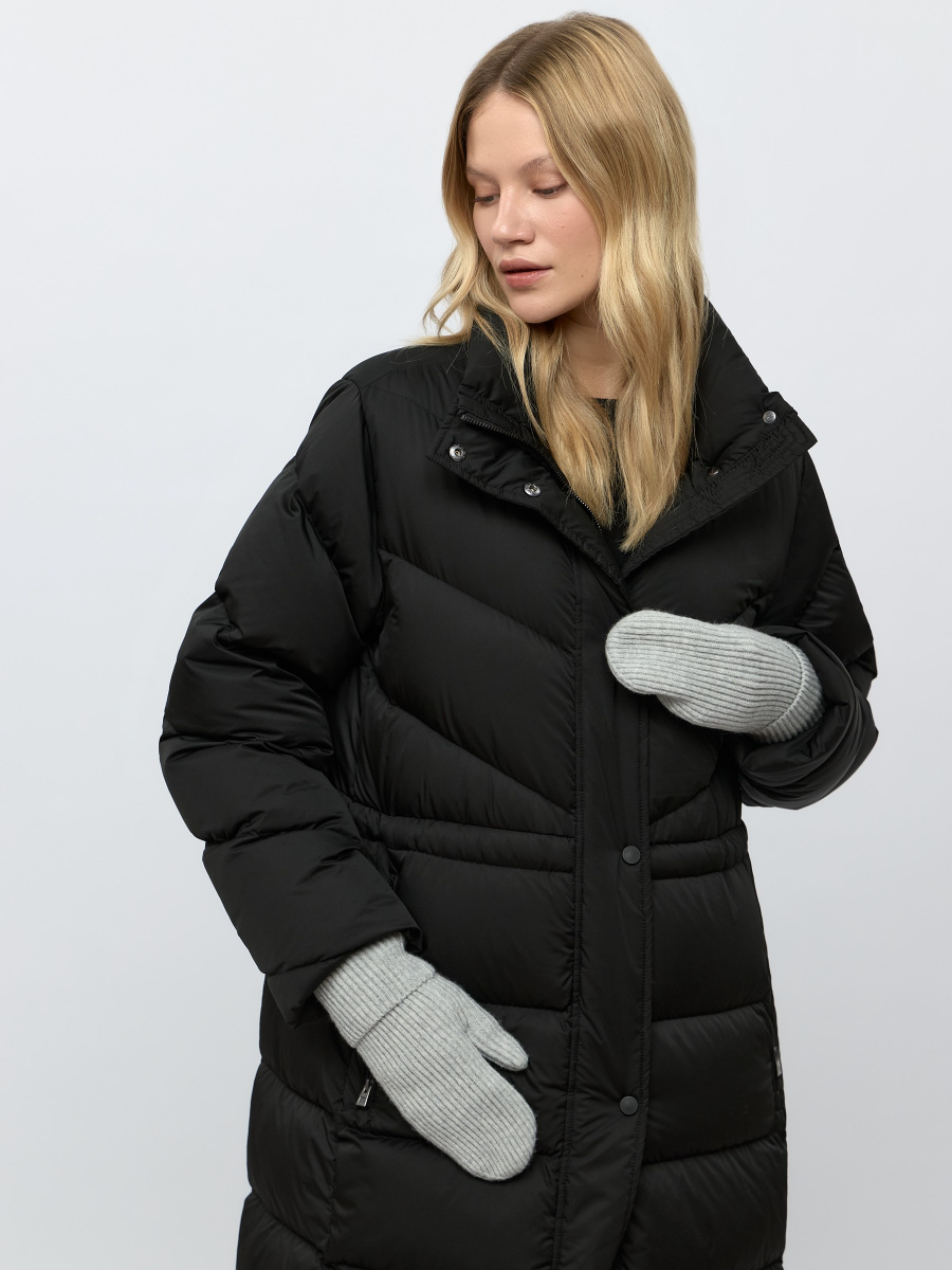 Минималистичные варежки из мягкой и прочной пряжи с добавлением шерсти. Выполнены гладким однослойным плетением в среднем объеме и анатомическом крое для свободы движений. Двойные удлиненные манжеты связаны резинкой и закрывают запястья, что удобно, если у куртки укорочены рукава.