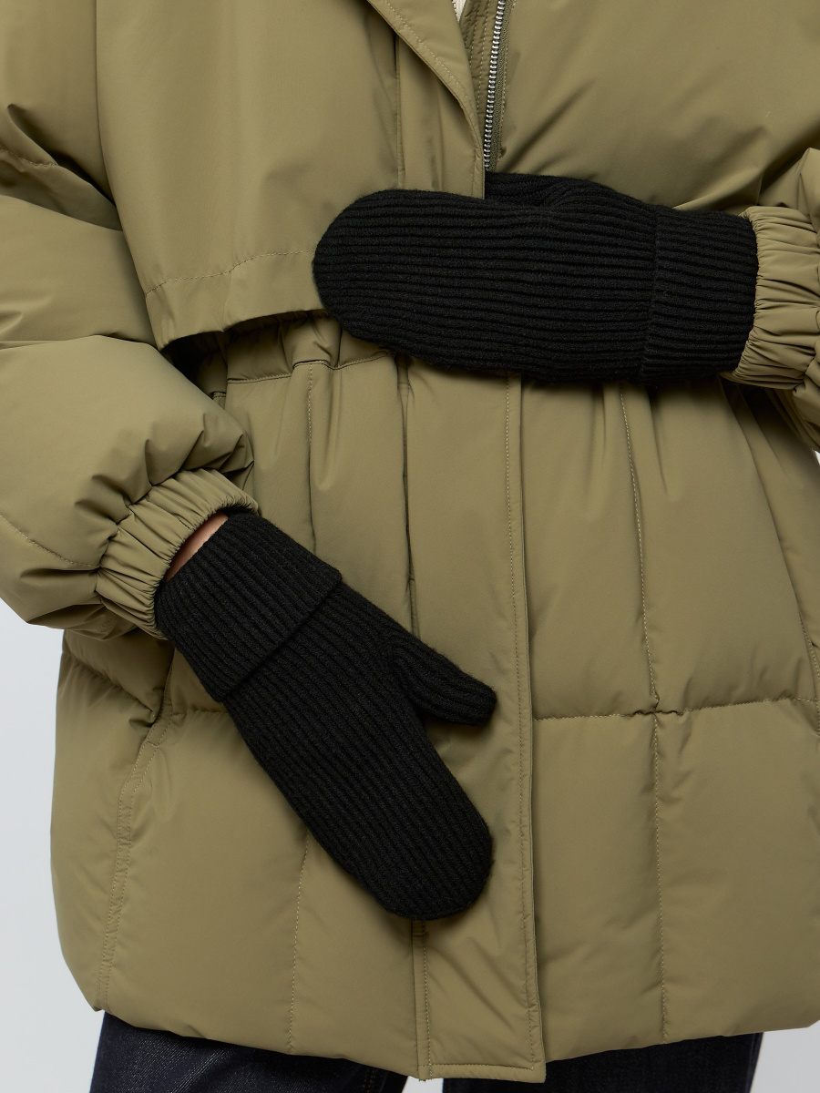 Минималистичные варежки из мягкой и прочной пряжи с добавлением шерсти. Выполнены гладким однослойным плетением в среднем объеме и анатомическом крое для свободы движений. Двойные удлиненные манжеты связаны резинкой и закрывают запястья, что удобно, если у куртки укорочены рукава.